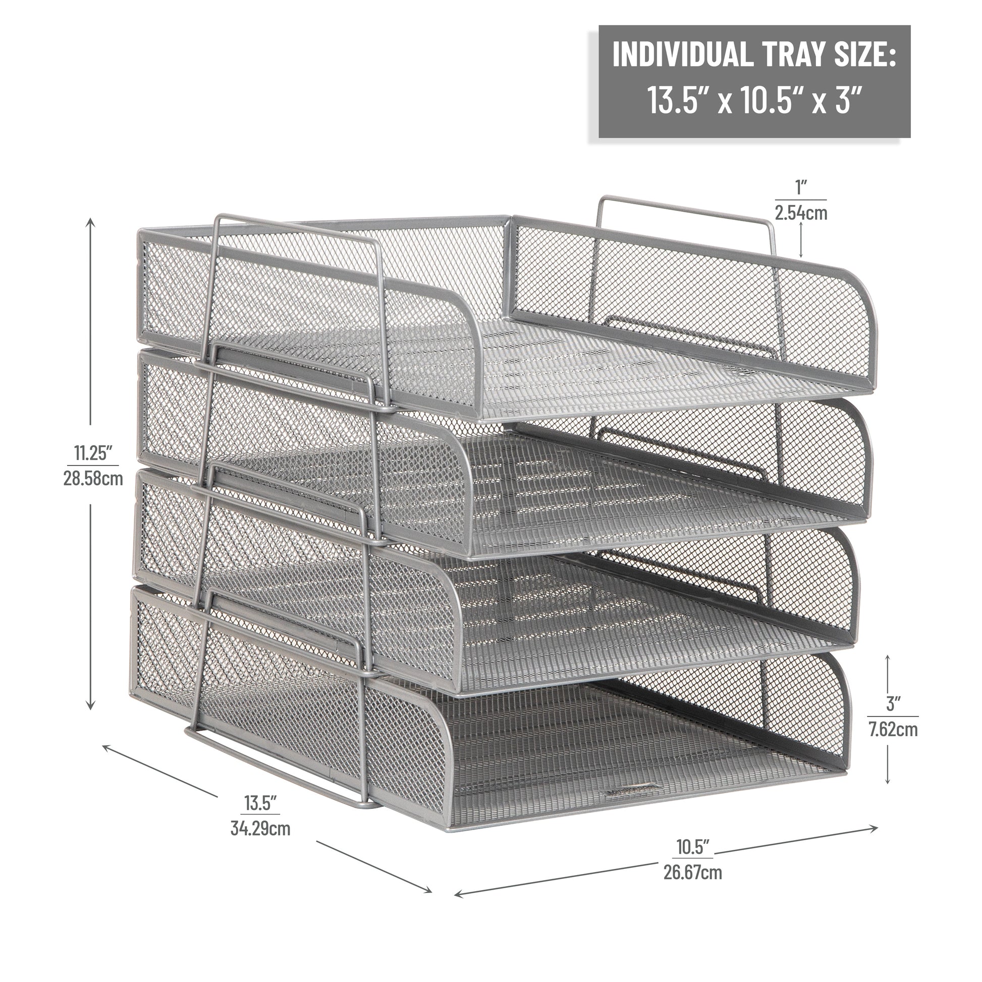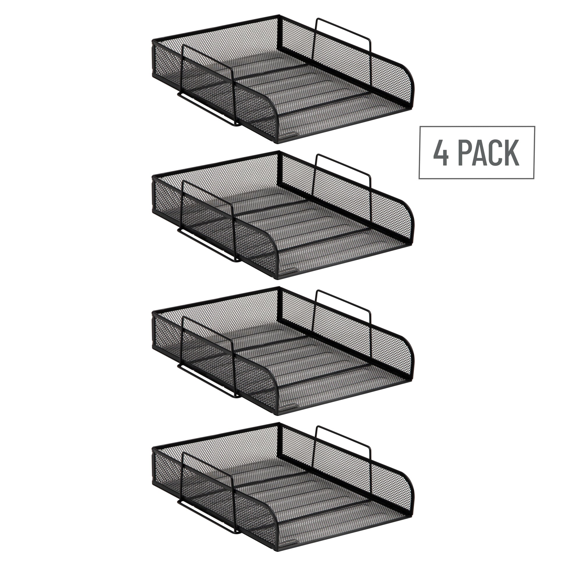 Mind Reader Stackable Paper Tray, Desktop Organizer, File Storage, Office, Metal Mesh, 10.5"L x13.5"W x11.25"H, 4 Pcs., Black