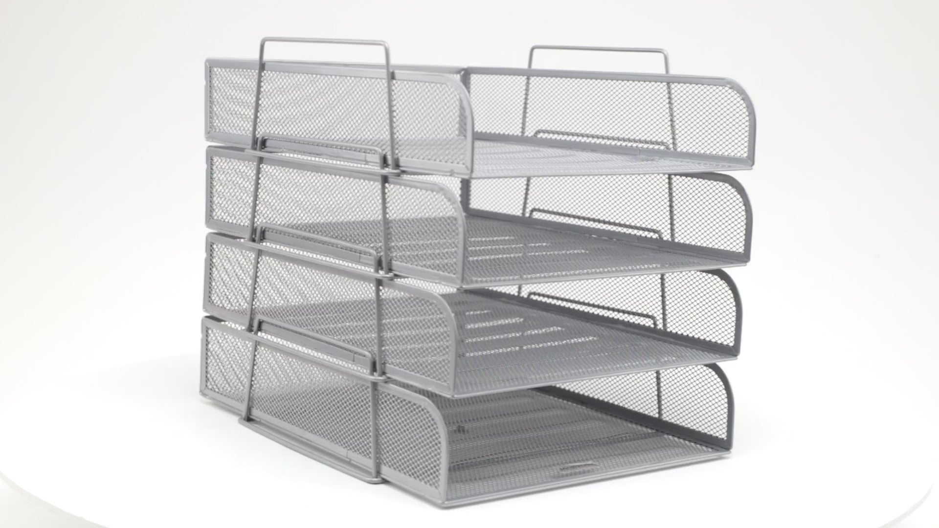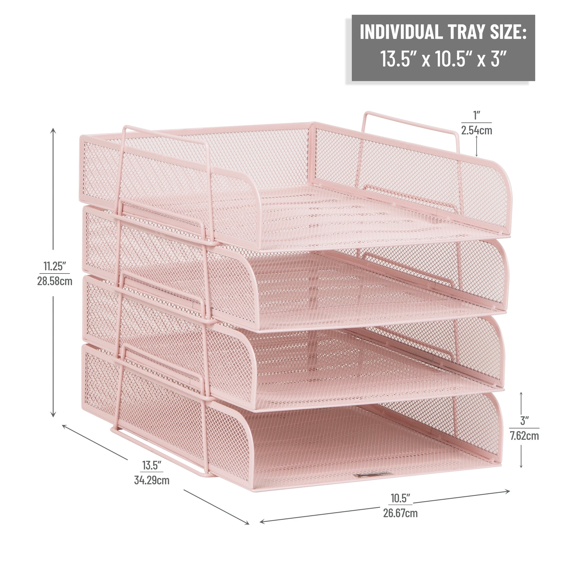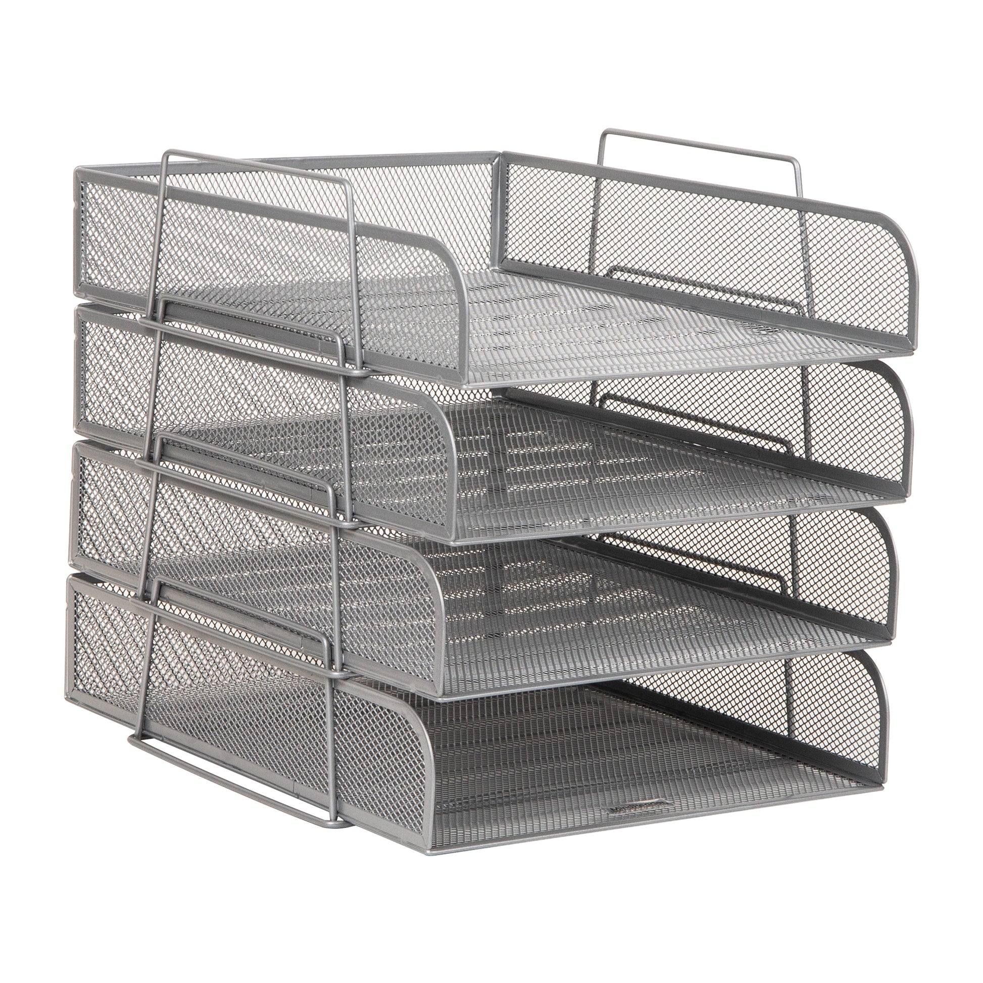 The sturdy mesh metal design is built to withstand daily use, and its neutral color blends effortlessly with any decor. For a coordinated look, pair it with other pieces from the Network Collection. This four-tier organizer makes a fantastic gift for colleagues, graduates, new homeowners, or anyone seeking a stylish and practical solution to declutter their workspace.