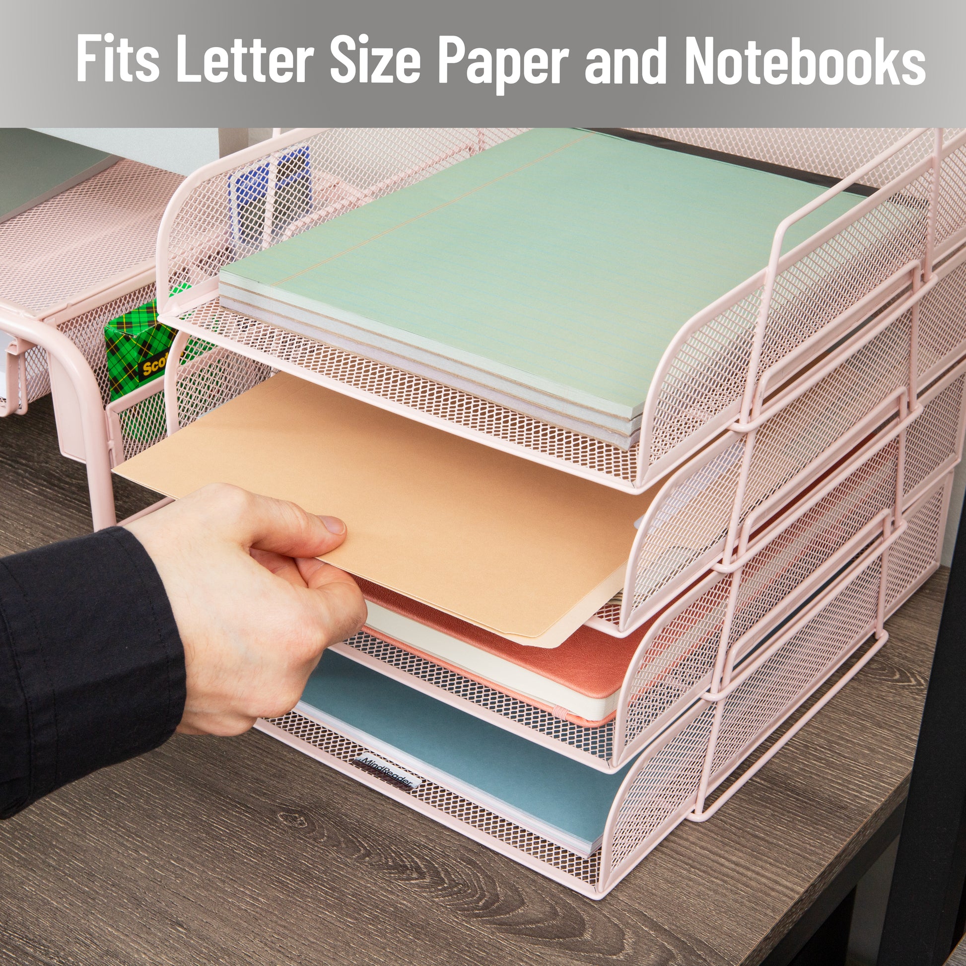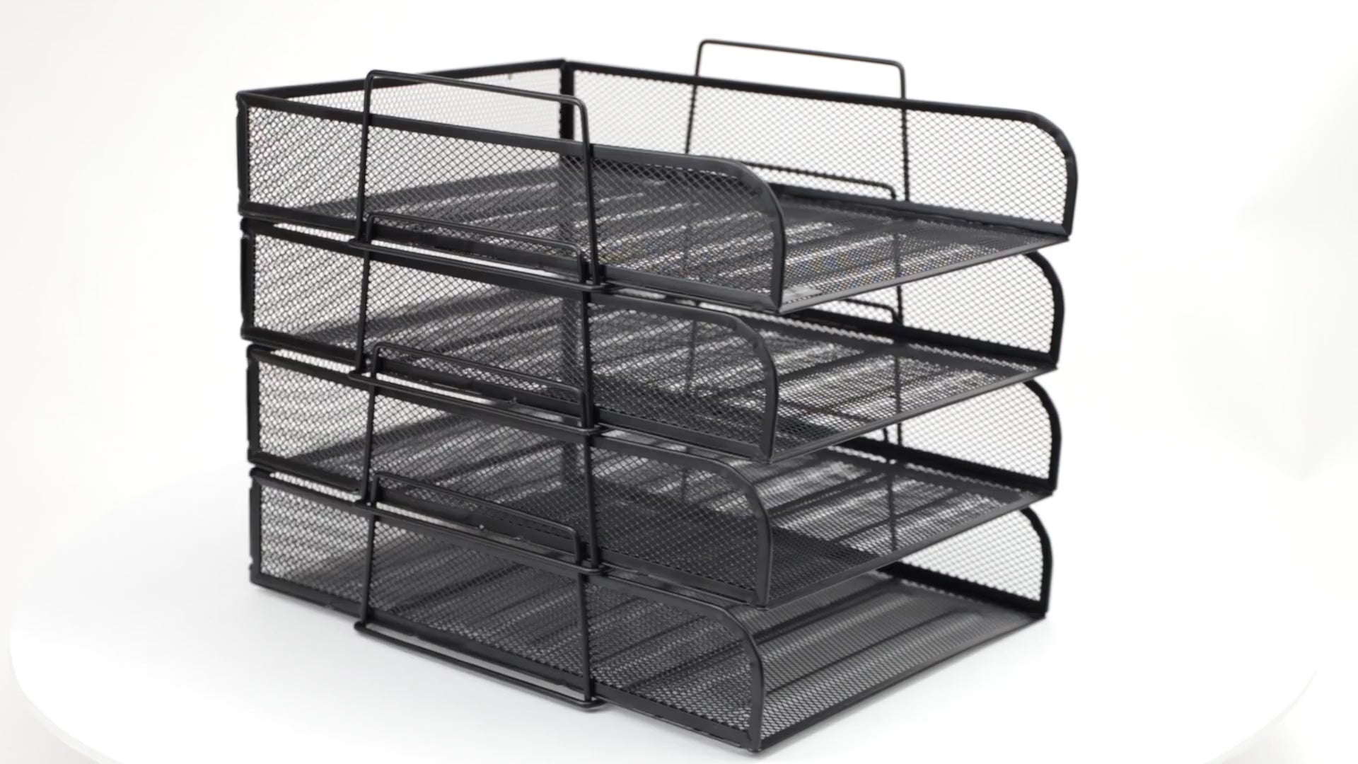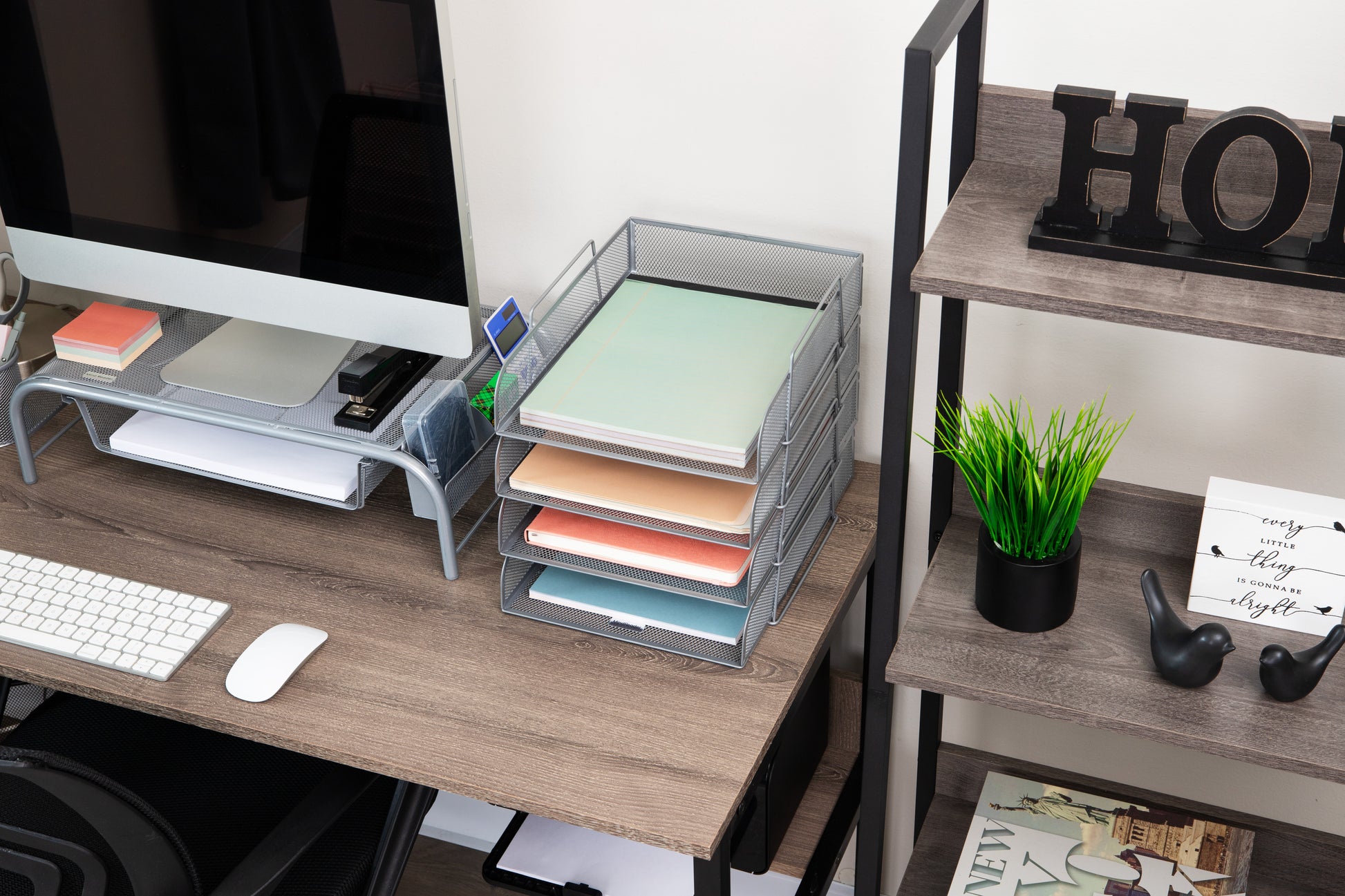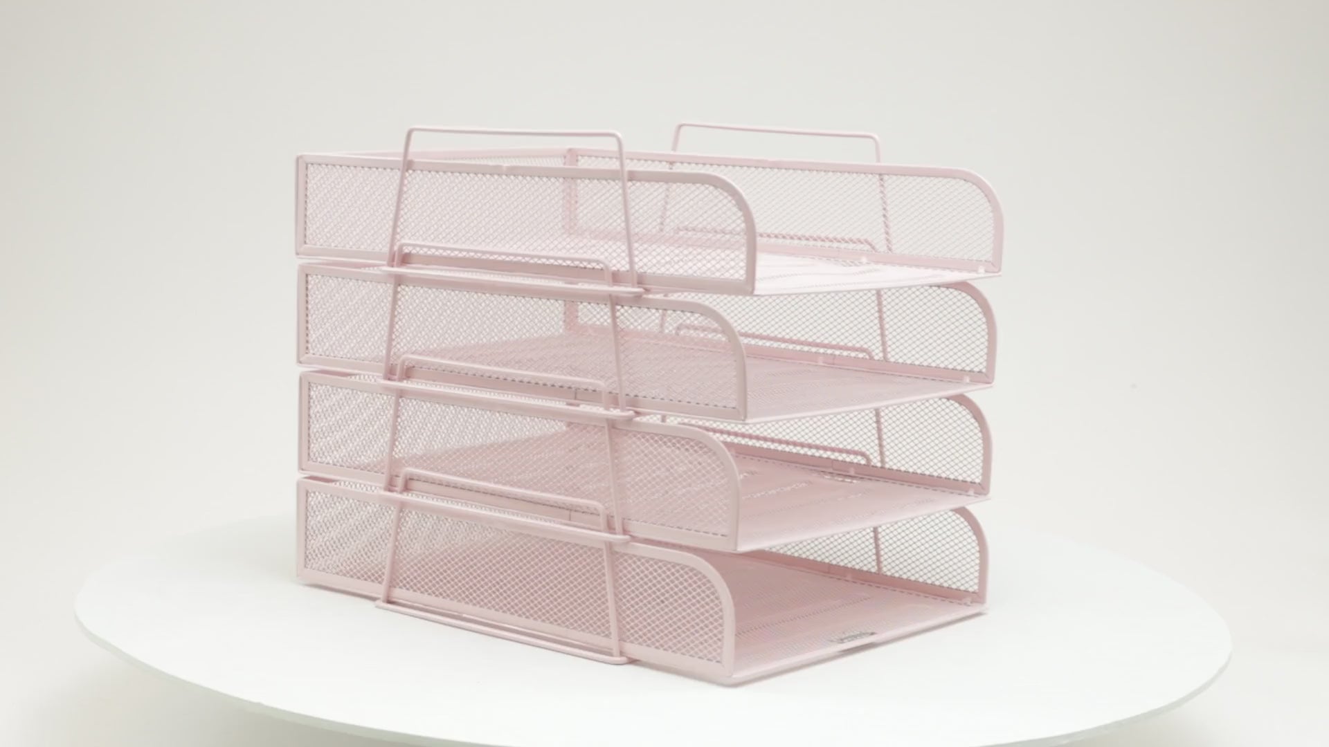 The sturdy mesh metal design is built to withstand daily use, and its neutral color blends effortlessly with any decor. For a coordinated look, pair it with other pieces from the Network Collection. This four-tier organizer makes a fantastic gift for colleagues, graduates, new homeowners, or anyone seeking a stylish and practical solution to declutter their workspace.