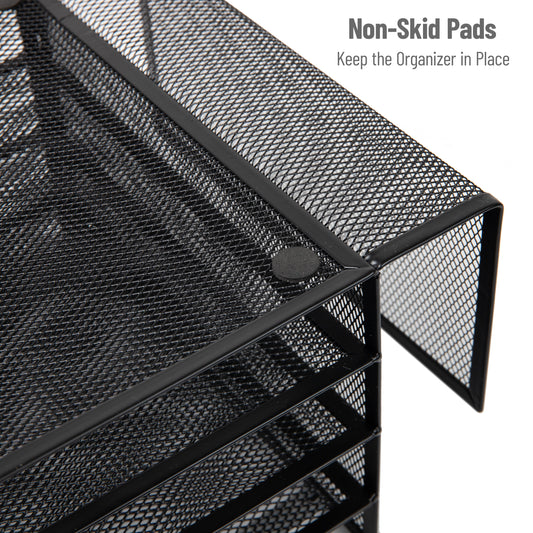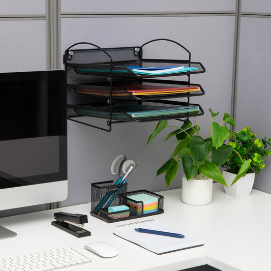 Mind Reader 3 or 4-Tier Paper Tray, Desktop Organizer, Wall Mountable, Office, Metal Mesh, Black