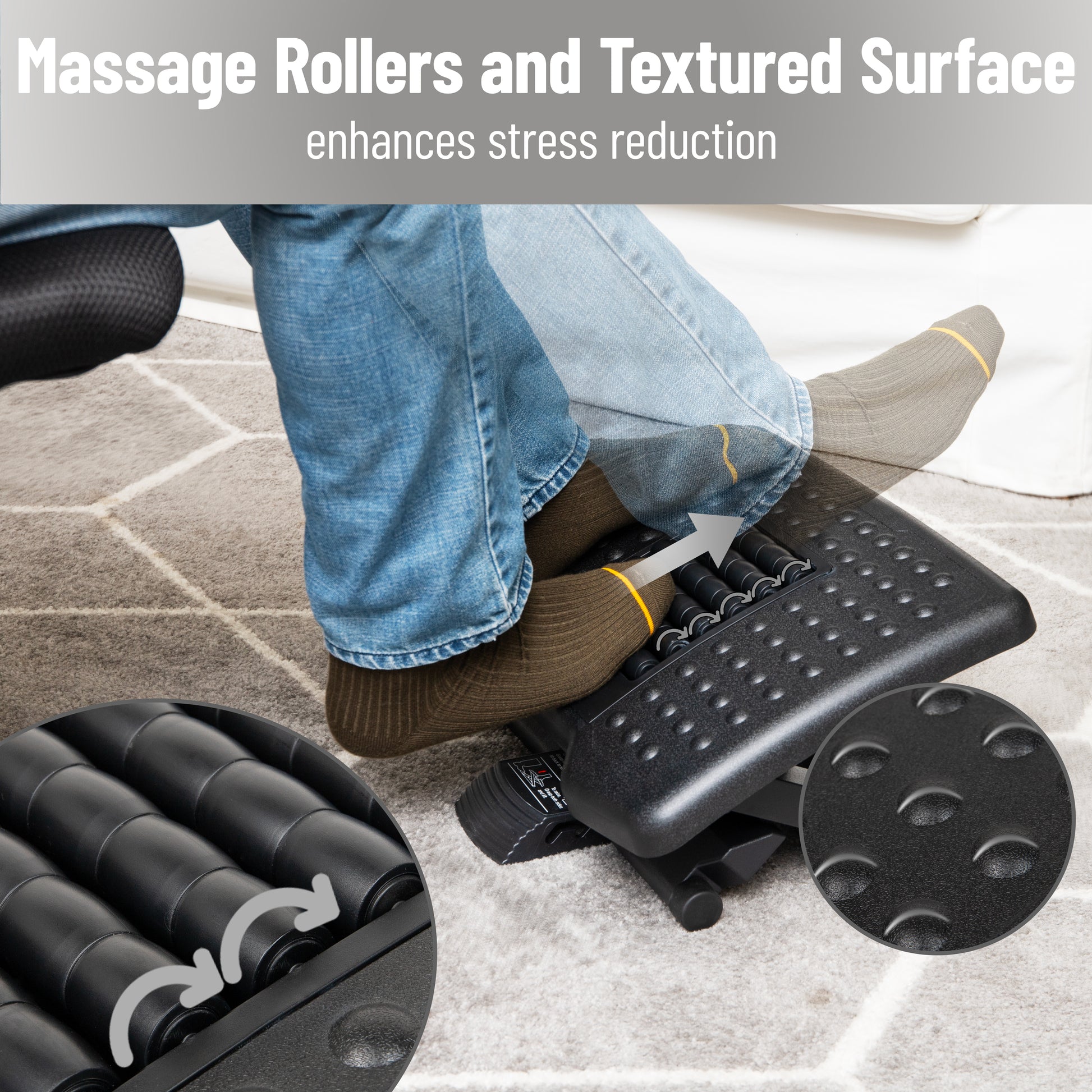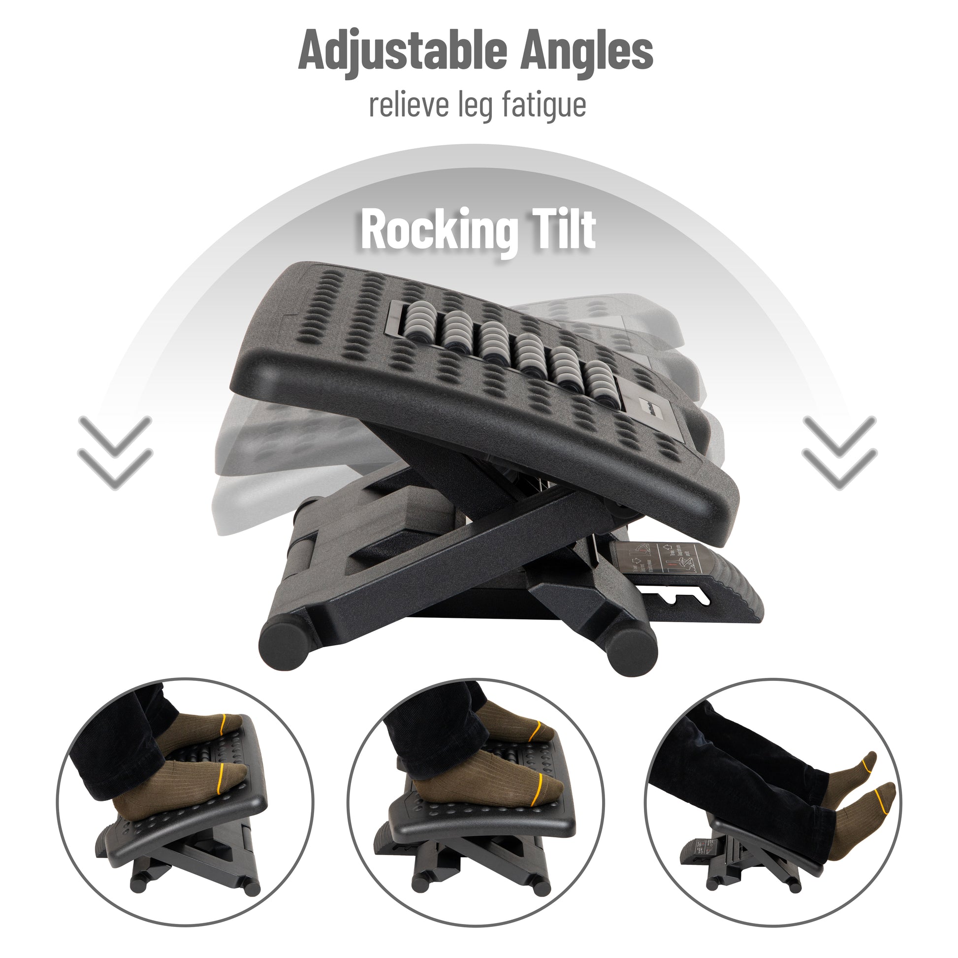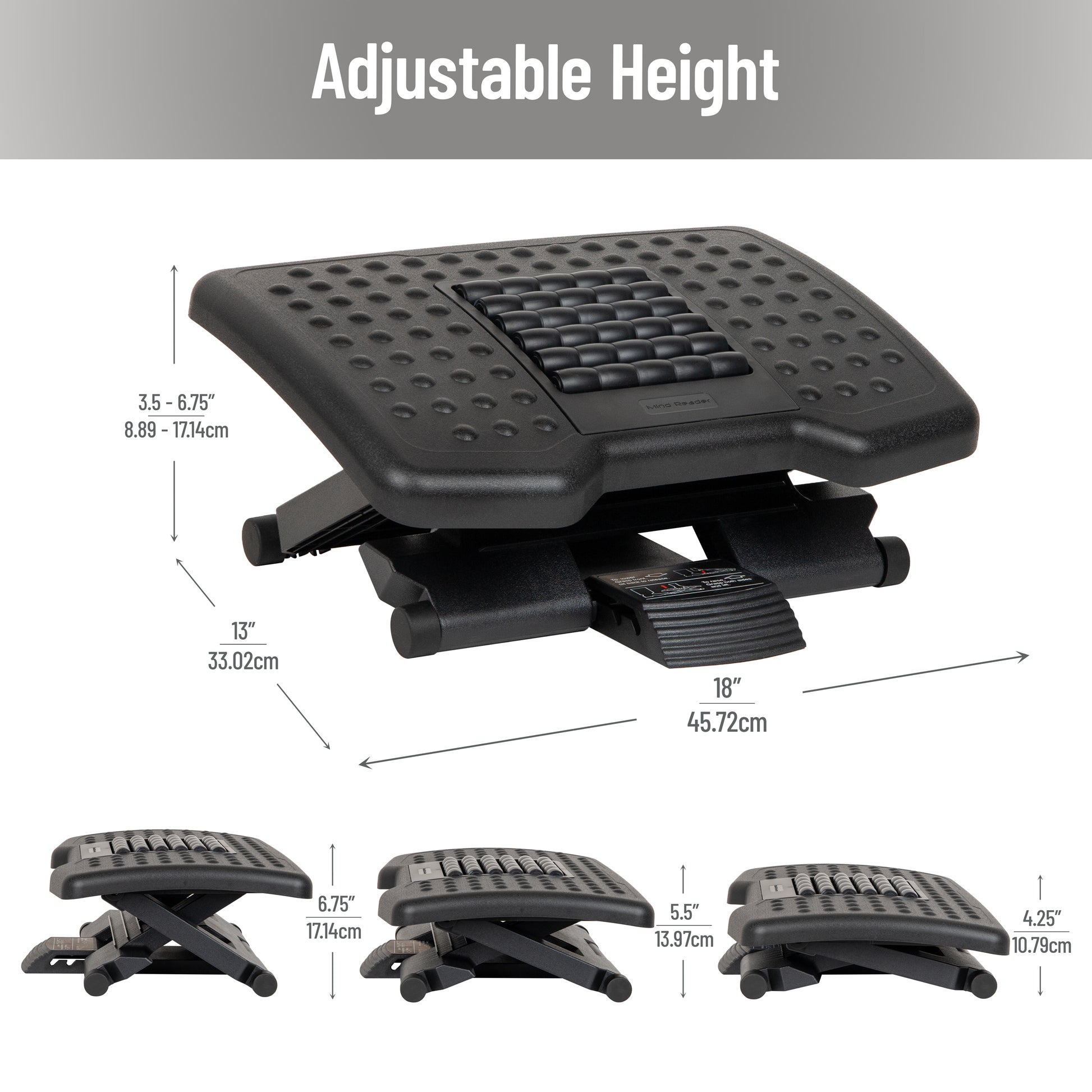 Mind Reader Foot Rest, Under Desk at Work, Ergonomic, Height Adjustable, Office, Plastic, 18"L x 13"W x 6.75"H, Black