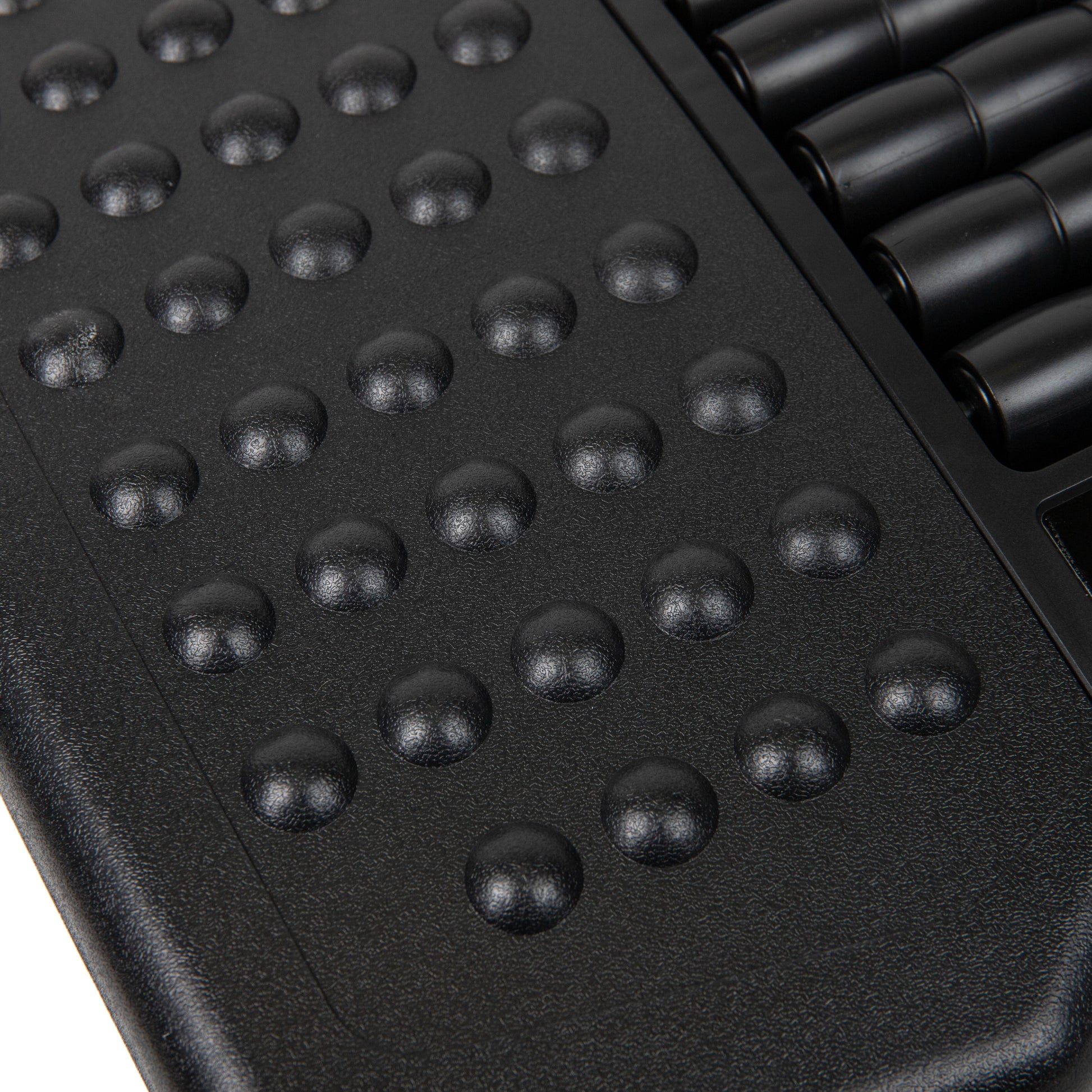 Designed for premium comfort, you will enjoy the center massage rollers tailored to give the soles of your feet a relaxing massage while seated. The outer sides feature a textured material which prevents feet from slipping, while the platform allows you to tilt the surface to keep leg and foot muscles active.
