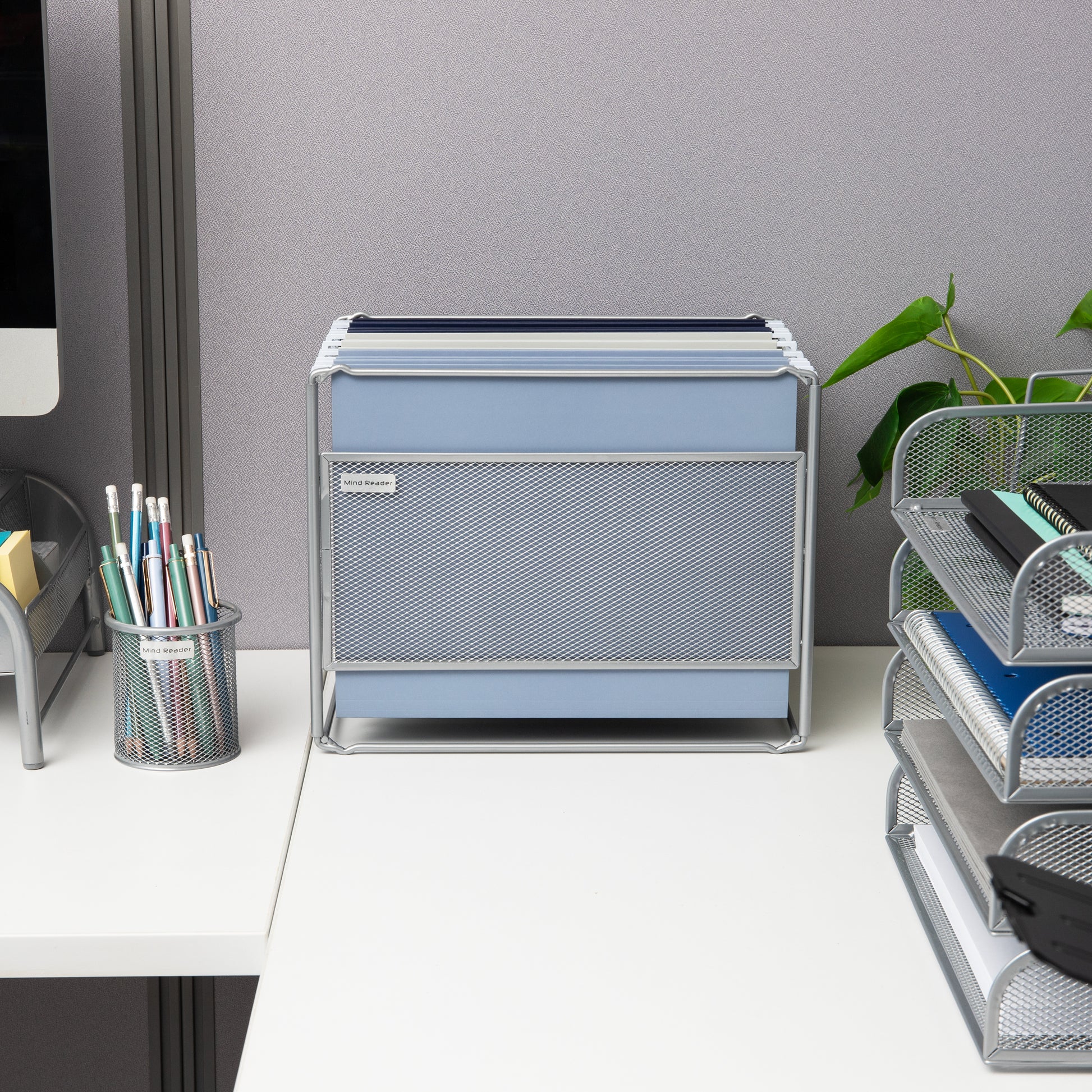 Mind Reader Hanging File Folder Organizer, Desktop Organizer, Storage, Office, Metal Mesh, 13"L x 9.75"W x 10.25"H