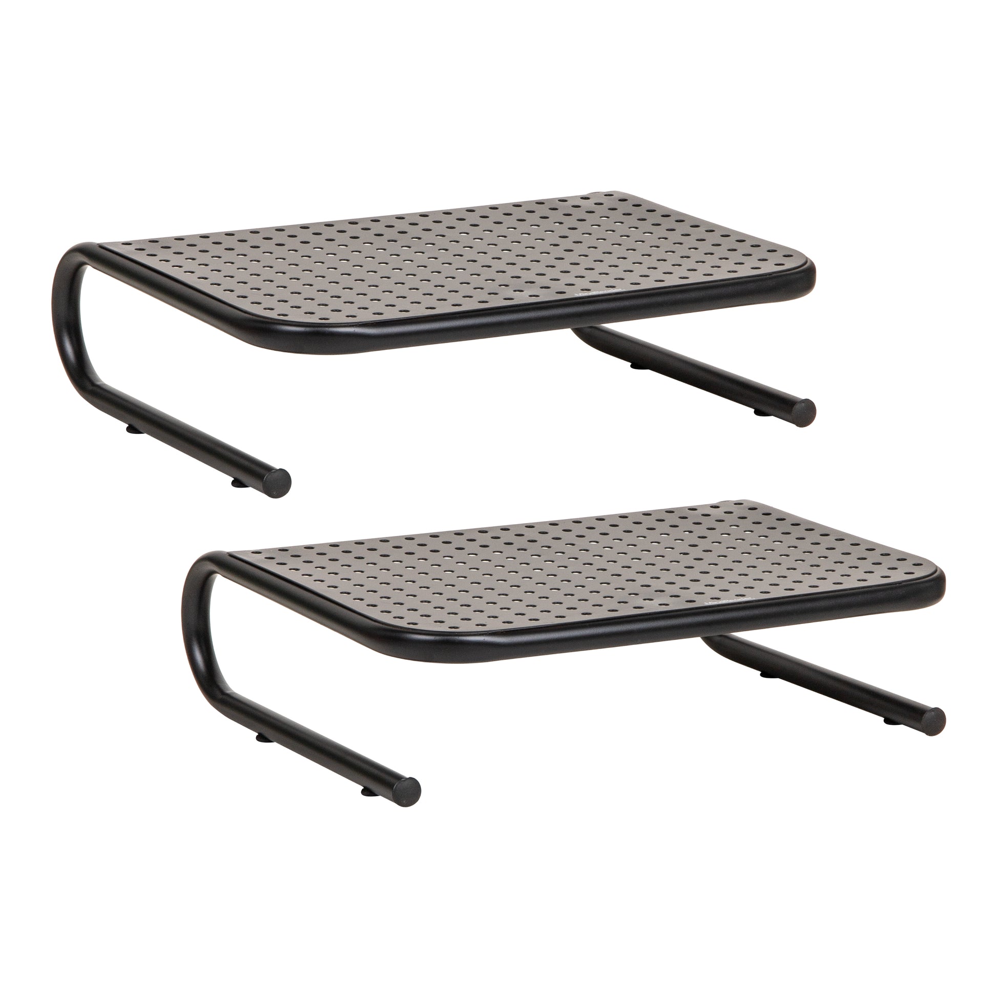 Place your computer monitor, flat screen TV, or laptop on this monitor stand that offers both height and convenience. Each stand is easily portable to use in many situations and only weighs in at 6.3 lbs. (2.9 kg). A strong metal construction allows you to utilize this stand for daily use, and each has a weight capacity of up to 44 lbs. (20 kg).