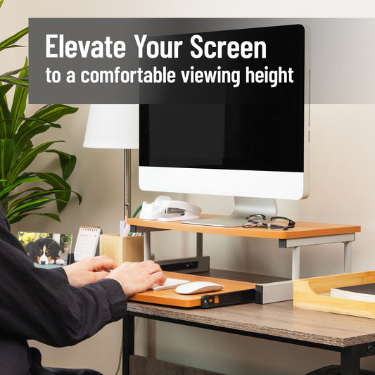 Mind Reader Dual Monitor Stand, Adjustable MDF Desktop Riser for Laptop, Monitor, TV, Expands to 51.25" Wide, Office or Home