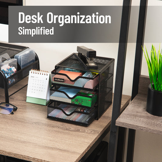 Mind Reader 4-Tier Paper Tray, Desktop Organizer, File Storage, Workspace, Office, Metal Mesh, 11.75"L x 13.75"W x 12.5"H