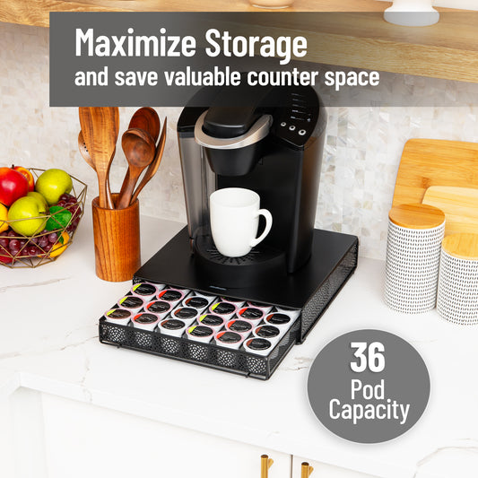 Mind Reader Single Serve Coffee Pod Drawer, 36 Pod Capacity, Countertop Organizer, Breakroom, 12.75"L x 13"W x 3"H, Black