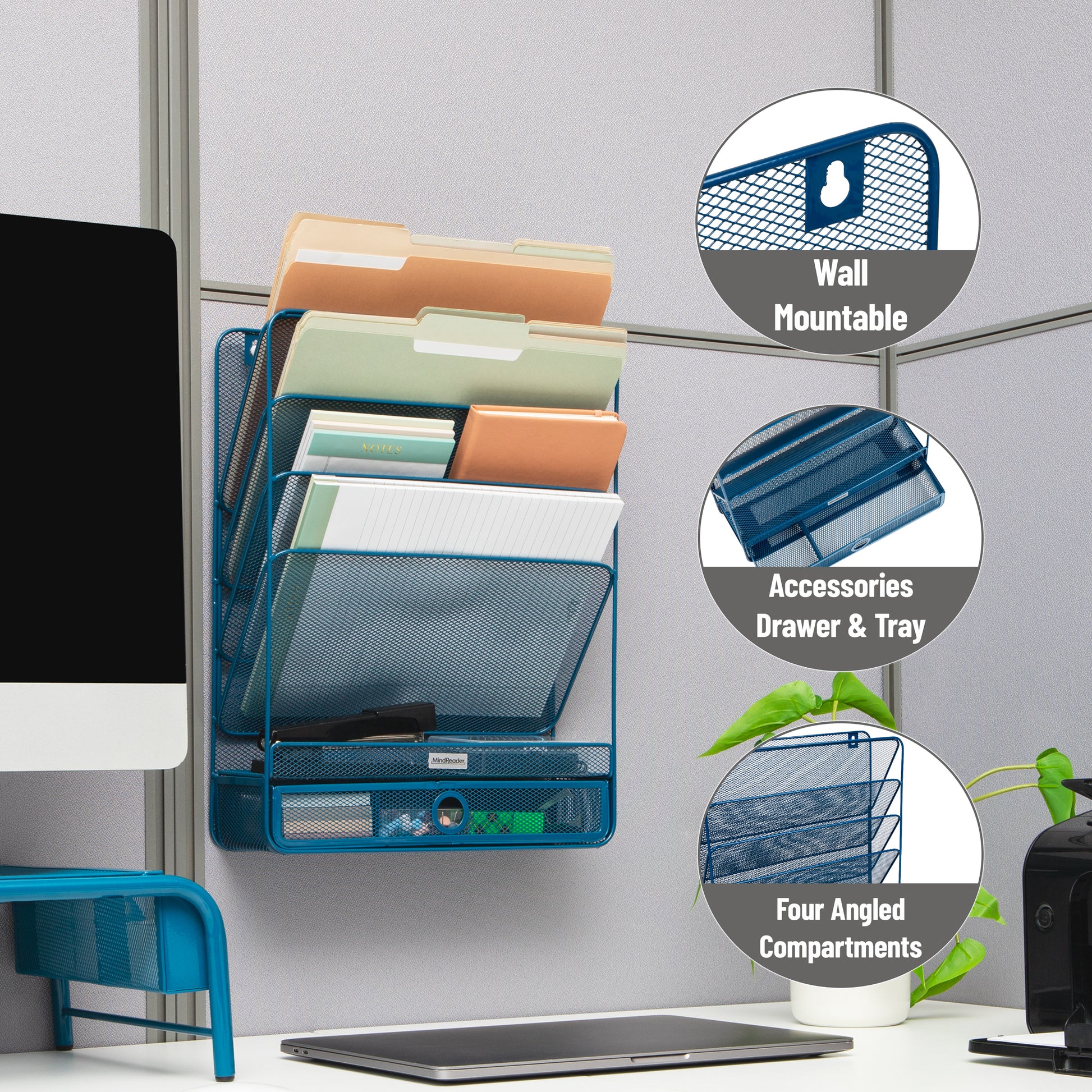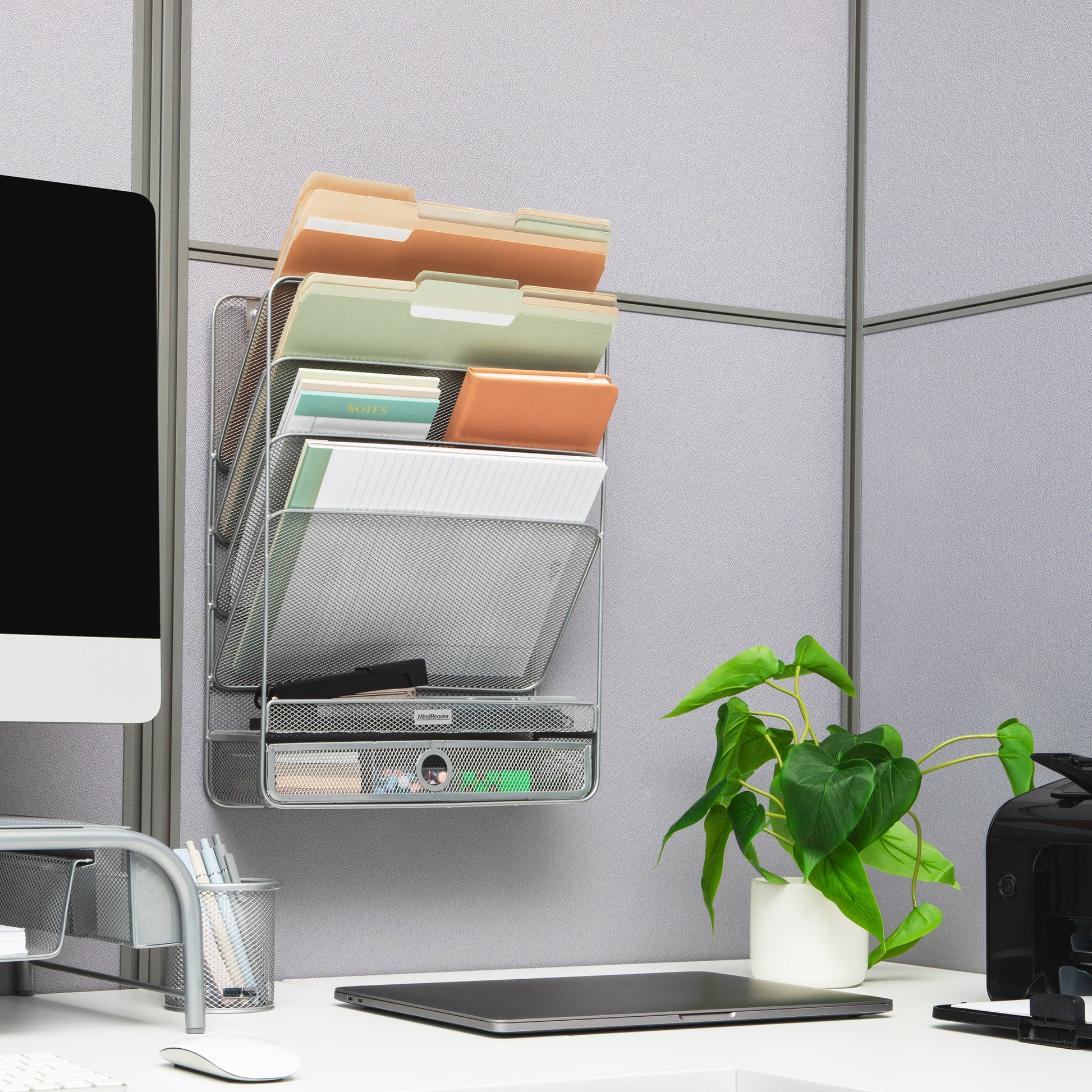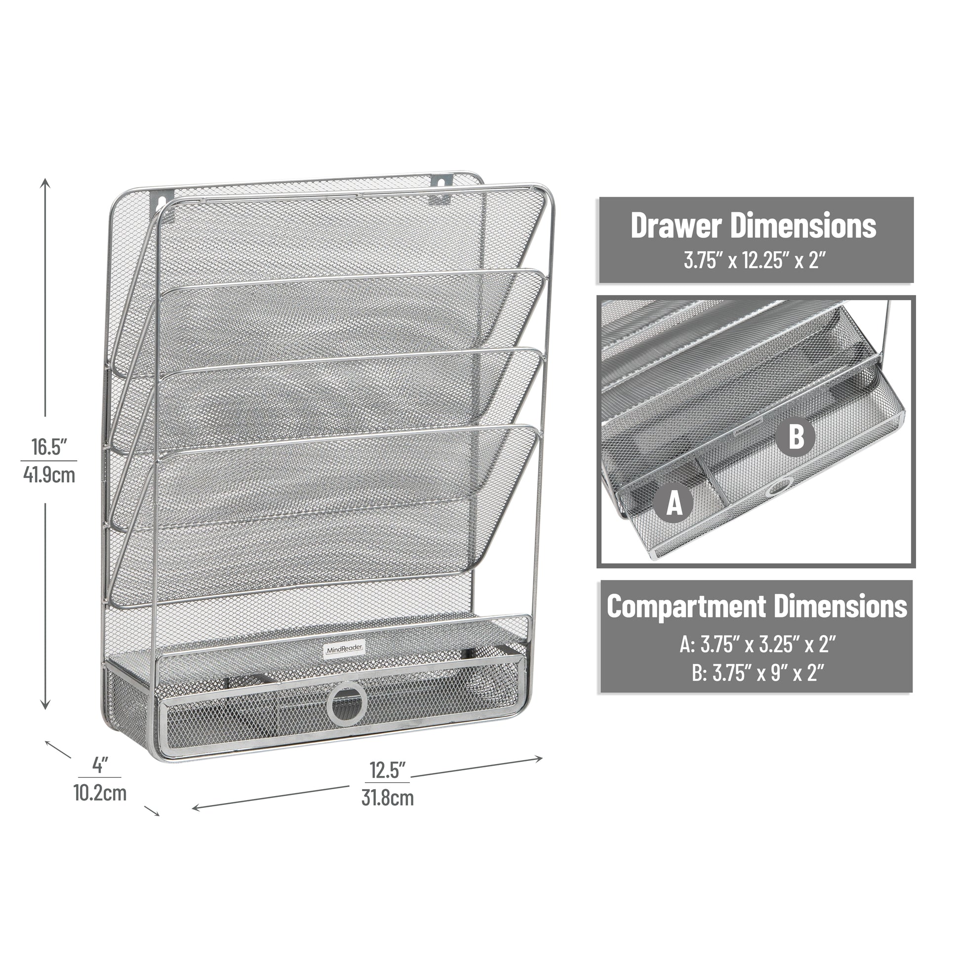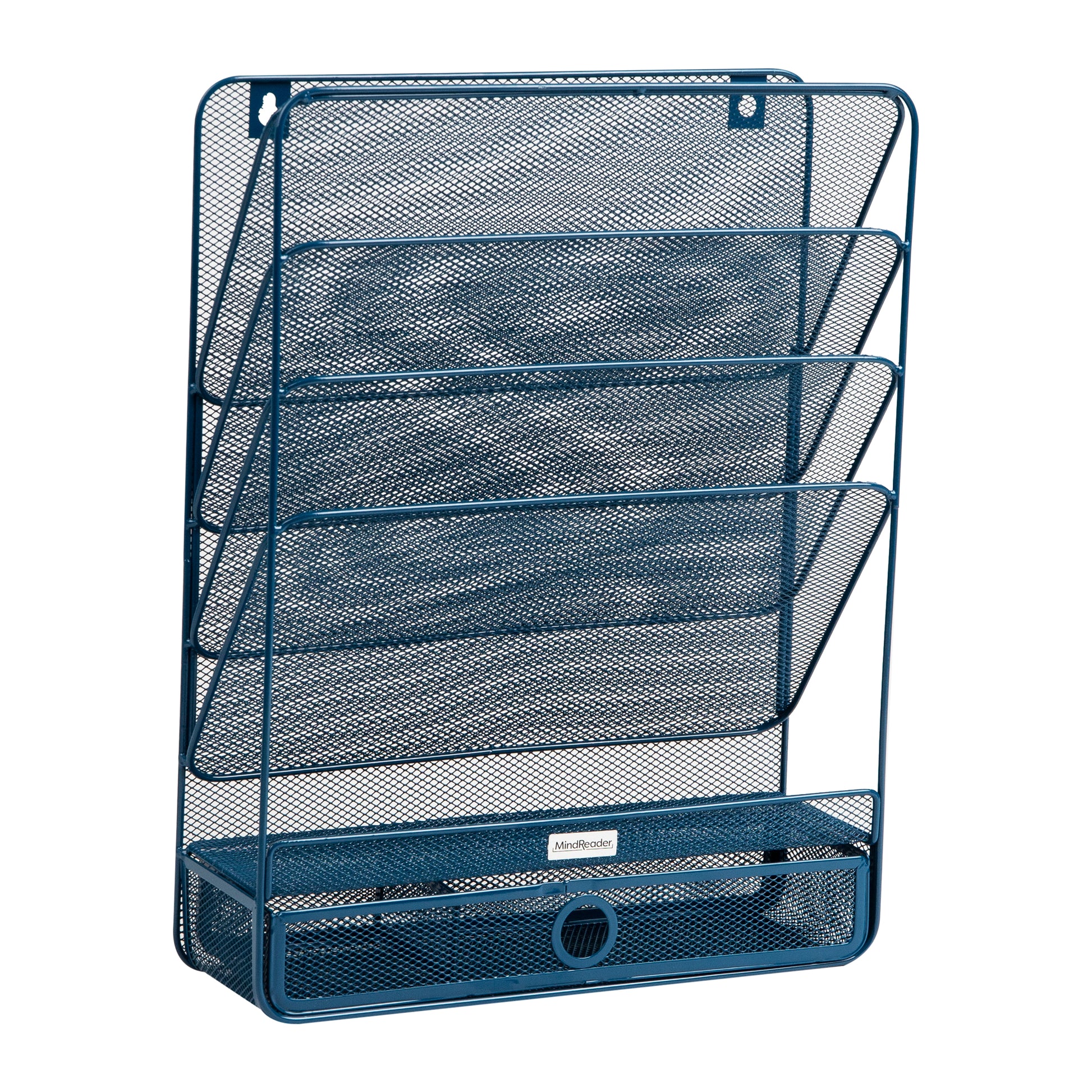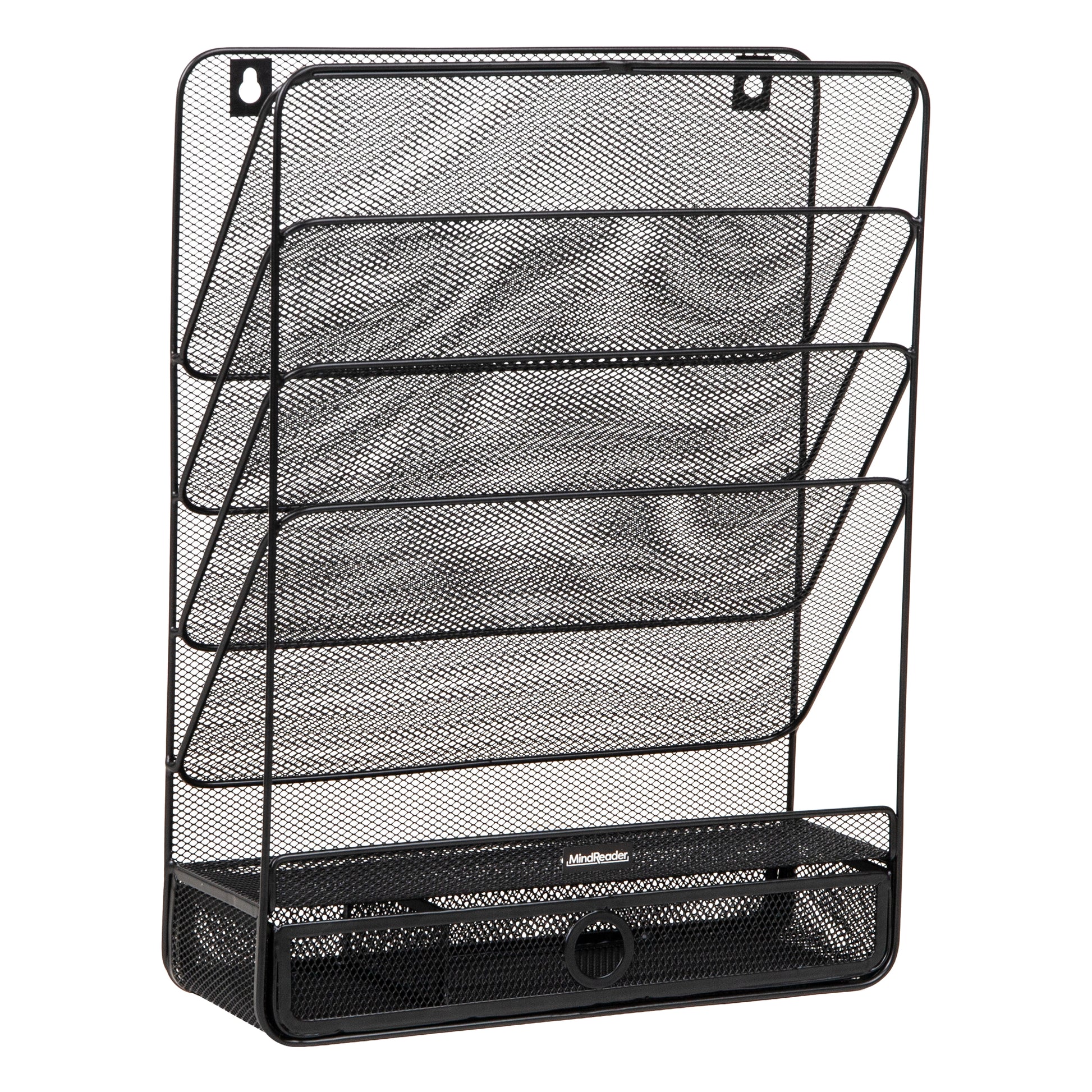 Mind Reader 4-Tier Vertical File Storage, Desktop Organizer, Wall Mount, Office, Metal Mesh, 12.5"L x 4"W x 16.5"H, Black