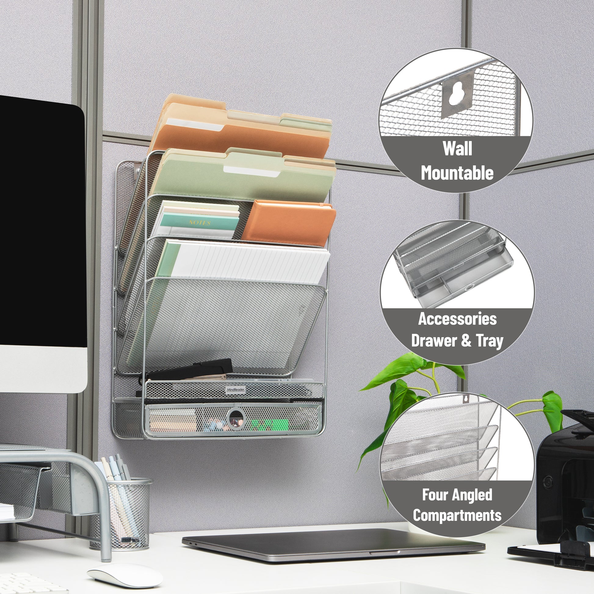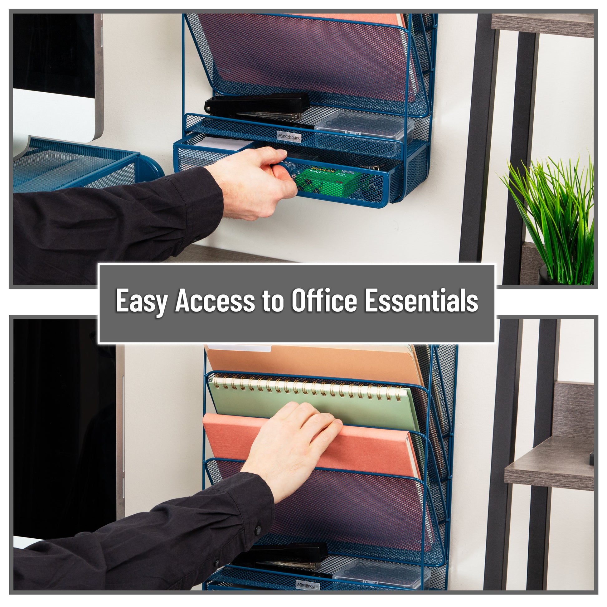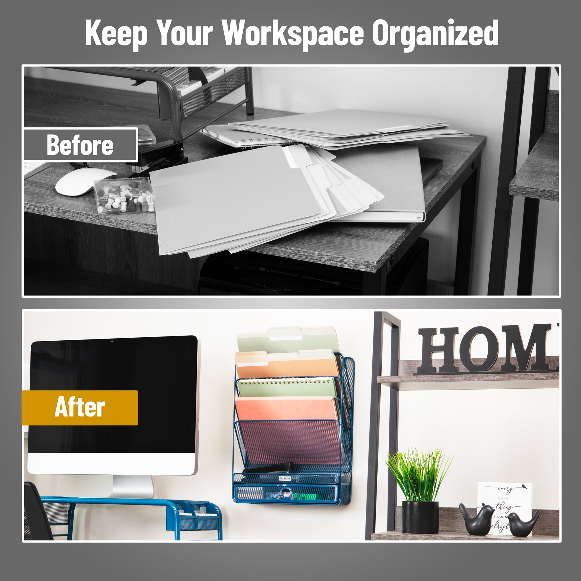 - Space-Saving Wall Mount: The vertical design of this file organizer allows it to be conveniently mounted on a wall with two screws. This not only saves valuable desk or counter space but also keeps your documents within reach