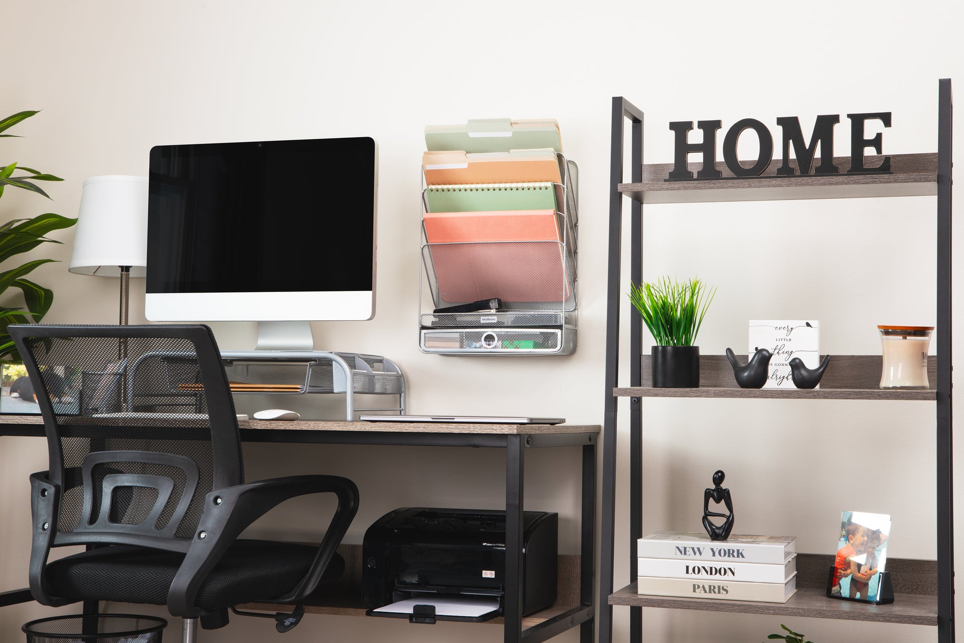 Efficient Workspace with a 4-Tier Vertical File Holder