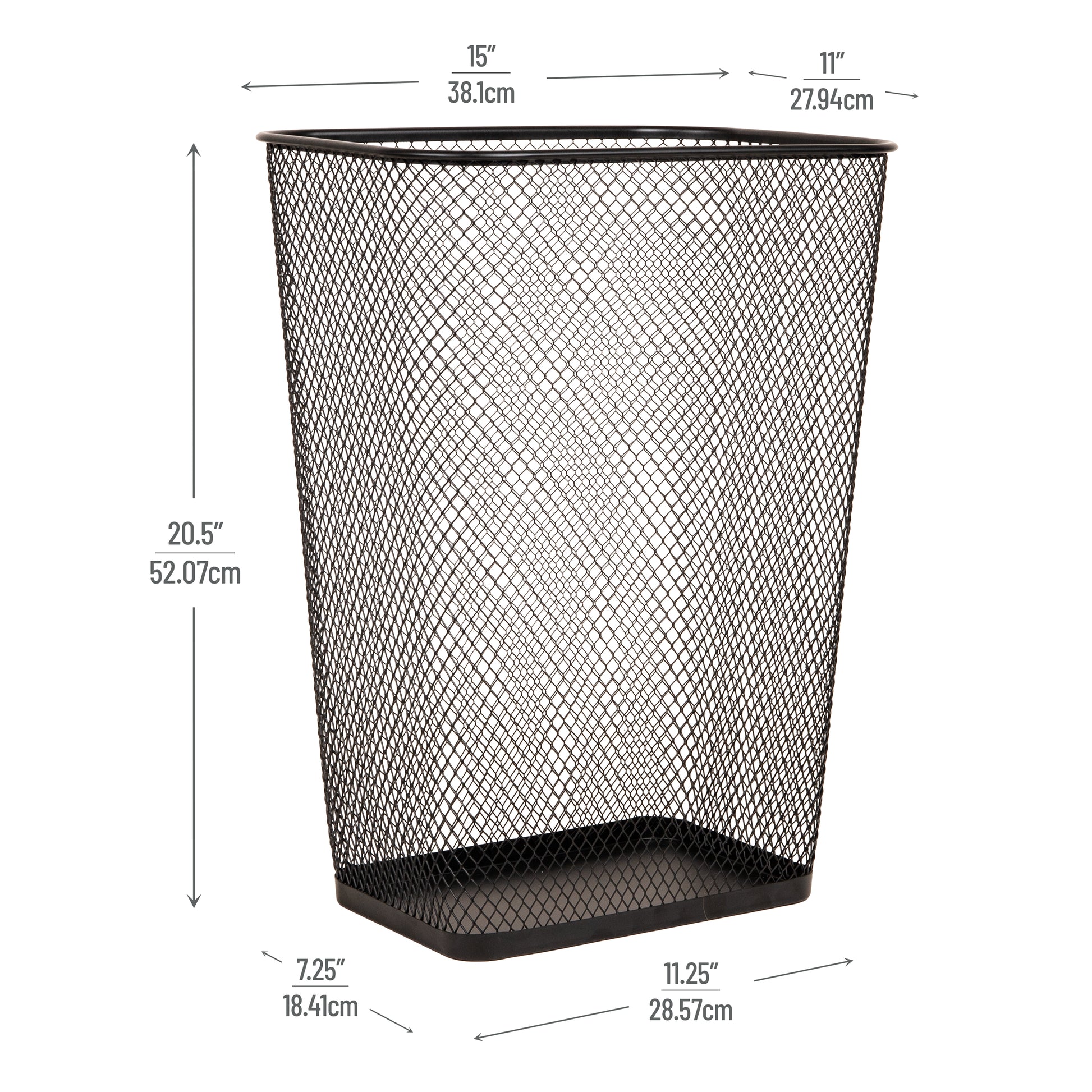 Mind Reader Metal Mesh Waste Paper Bins, Solid Bottom, Non Slip Pads, Office and Home, Set of 2, Black