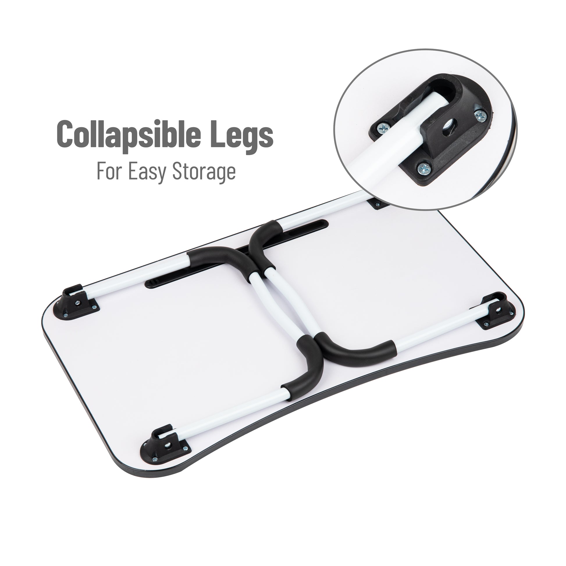 - Adjustable Height: Easily unfold the legs to elevate the desk for a comfortable working height or fold them for a flat surface