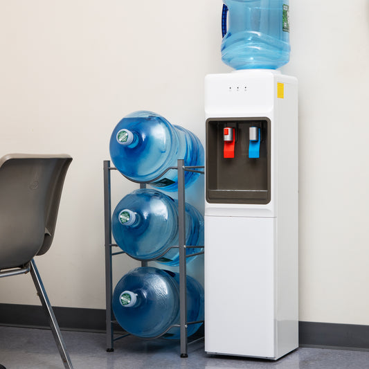 Mind Reader Water Jug Stand, Holds three or five 5 Gallon Jugs, Water Cooler, Rack, Metal, 13.5"L x 13.5"W, Silver