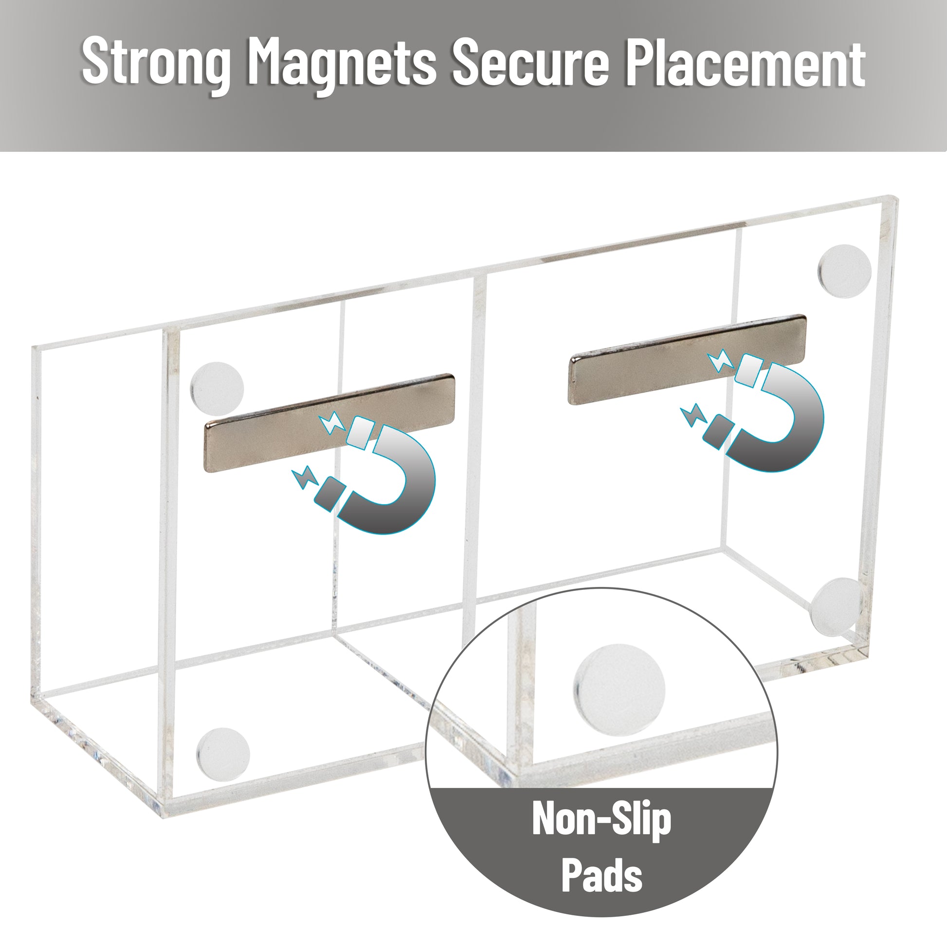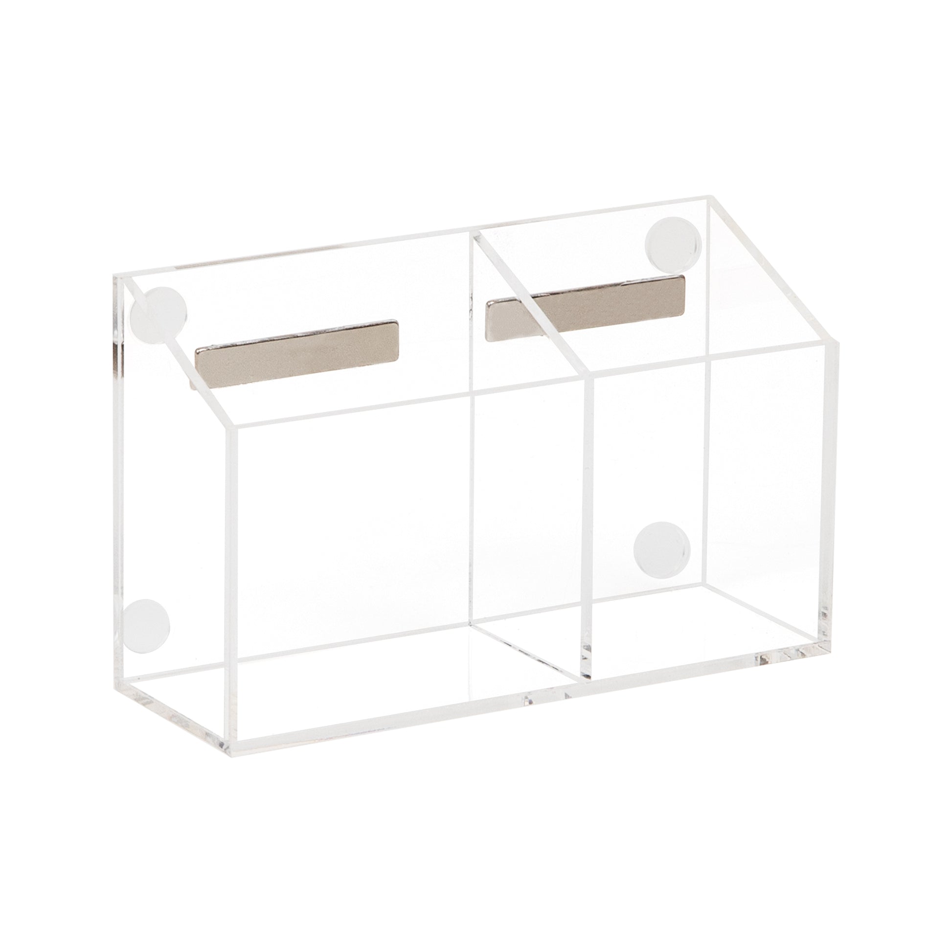 Keep your dry erase supplies in one convenient place with this clear acrylic organizer, designed with two compartments to hold markers and an eraser (not included). The compact design saves space and adds a clean, modern touch to your classroom, office, or home workspace.