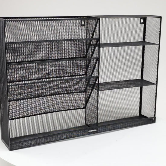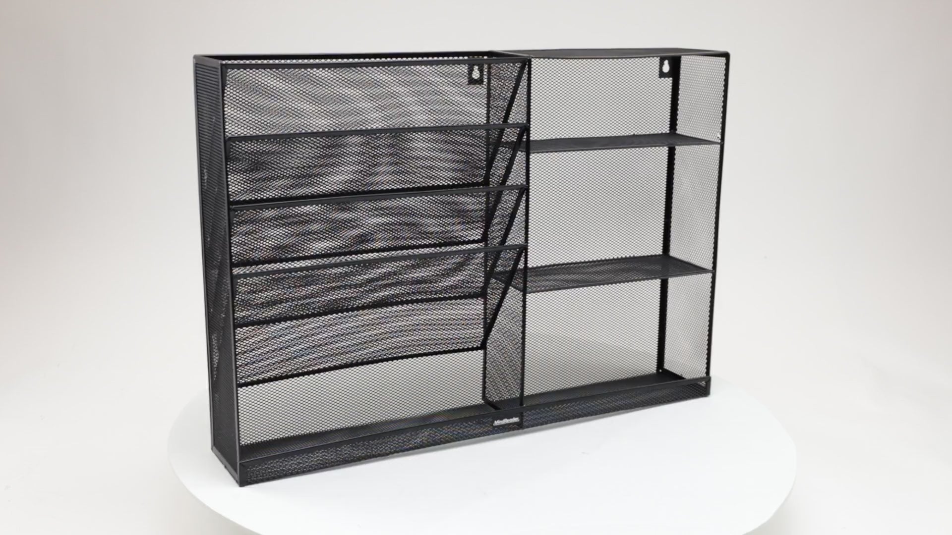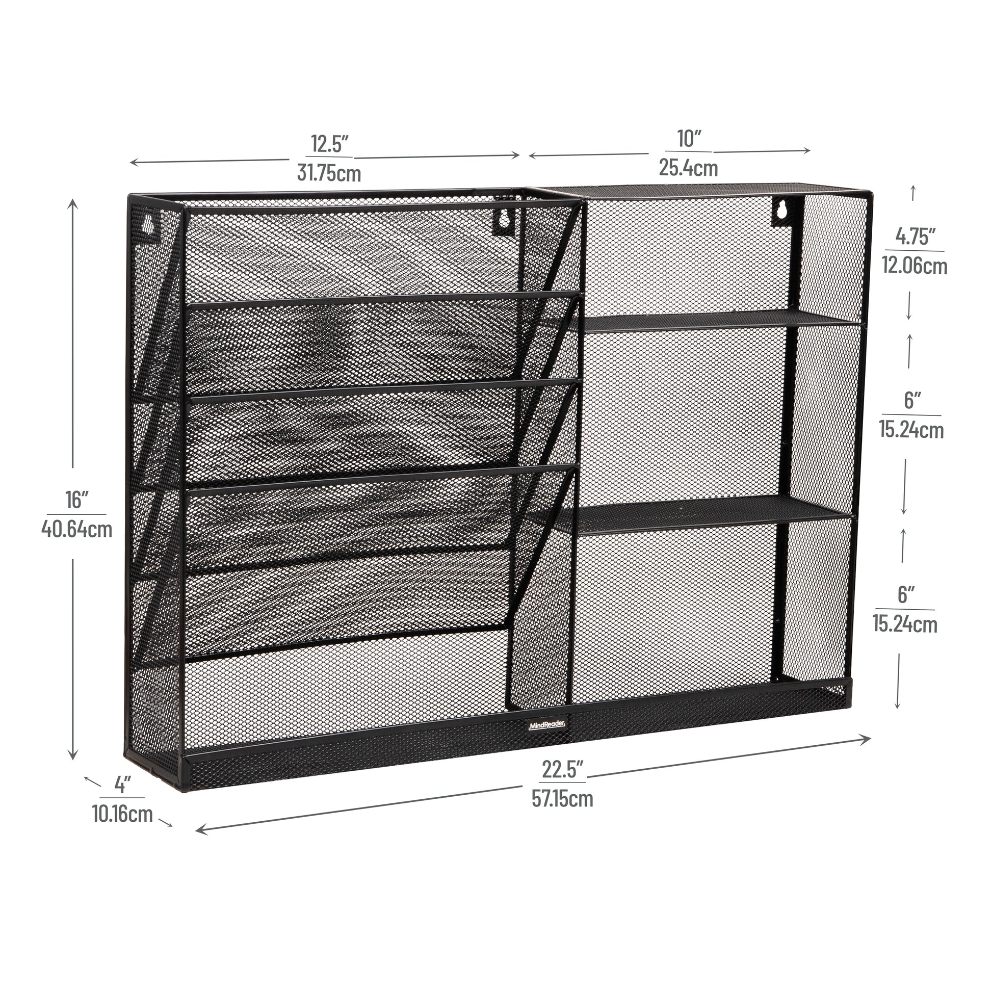 Mind Reader 4-Tier Vertical File Storage and Shelves, Desktop Organizer, Wall Mount, Office, Metal Mesh, 22.5"L x 4"W x 16"H, Black