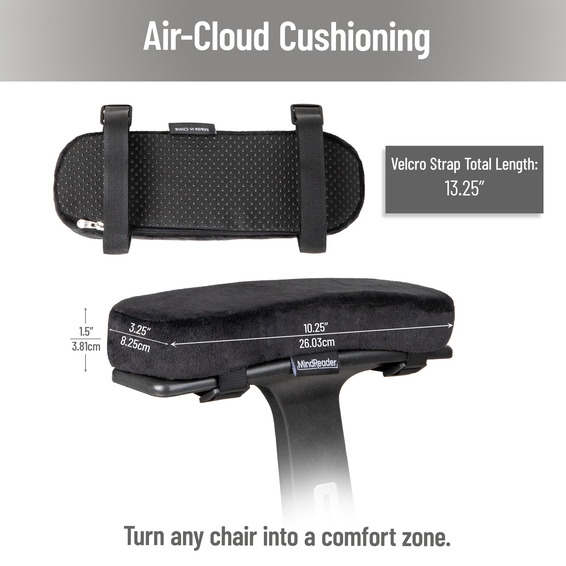 Mind Reader Air-Cloud Memory Foam Armrest Pads, Office & Gaming Chair Arm Rests, Elbow Support with Washable Cover, Black