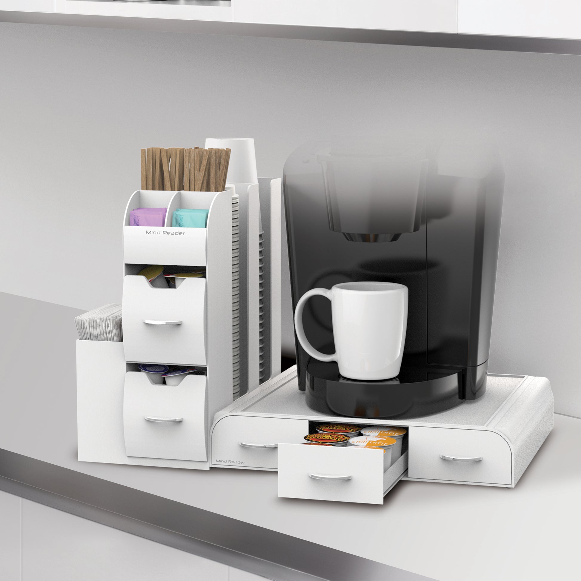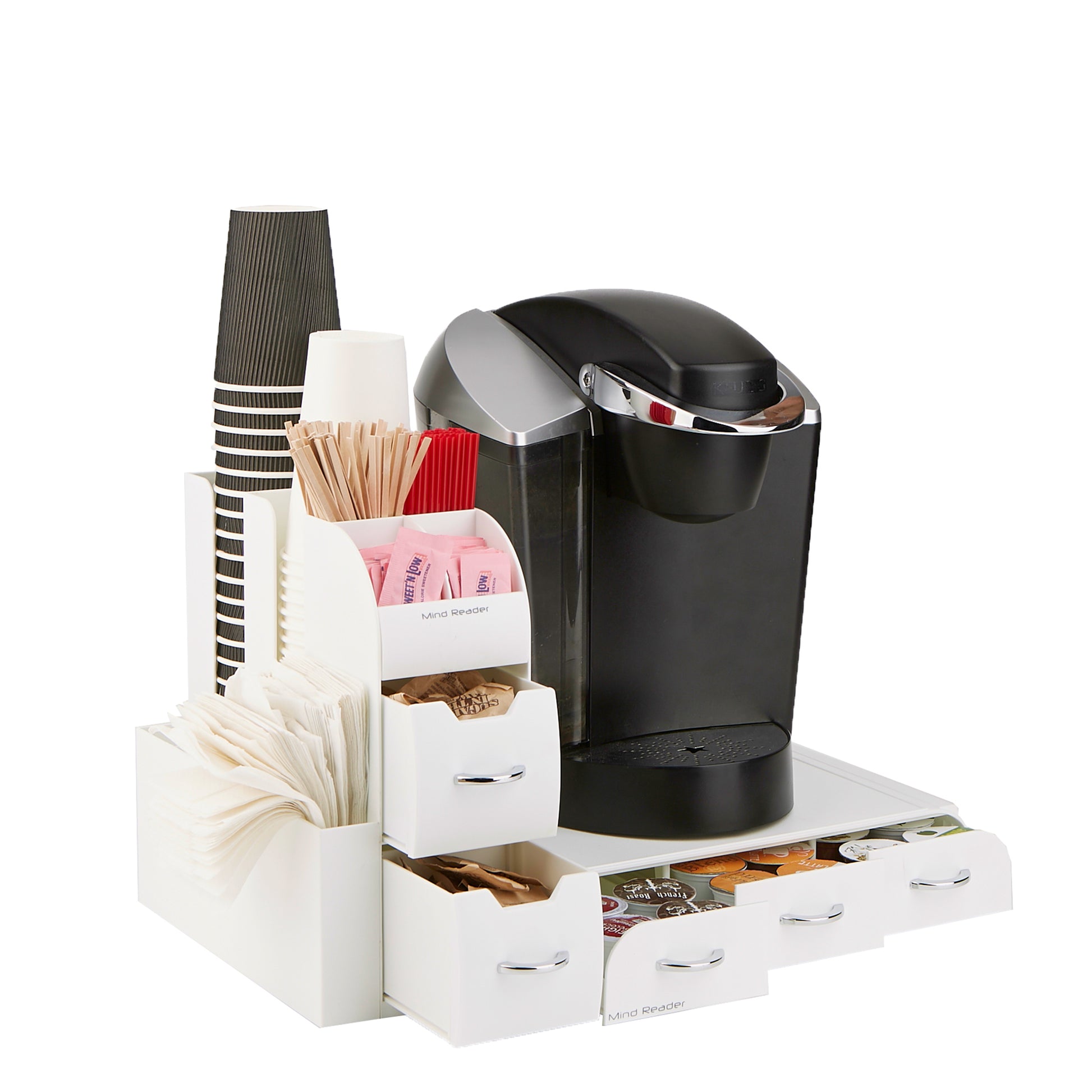 Mind Reader Single Serve Coffee Pod Drawer and Cup Condiment Set, 2 Pcs., 36 Pod Capacity, 5.35"L x 11.25"W x 11.15"H