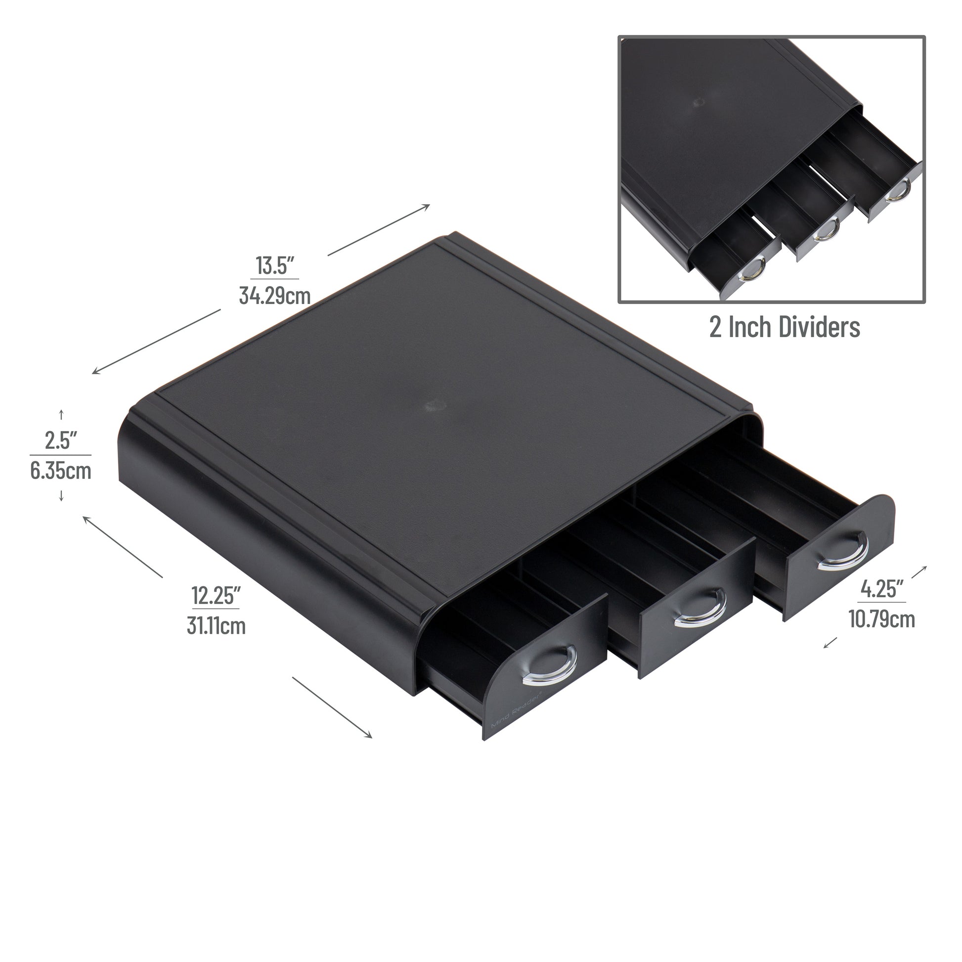 Mind Reader Single Serve Coffee Pod Organizer with 3 Drawers, 36 Pod Capacity, 13.5"L x 12.25"W x 2.5"H, Black
