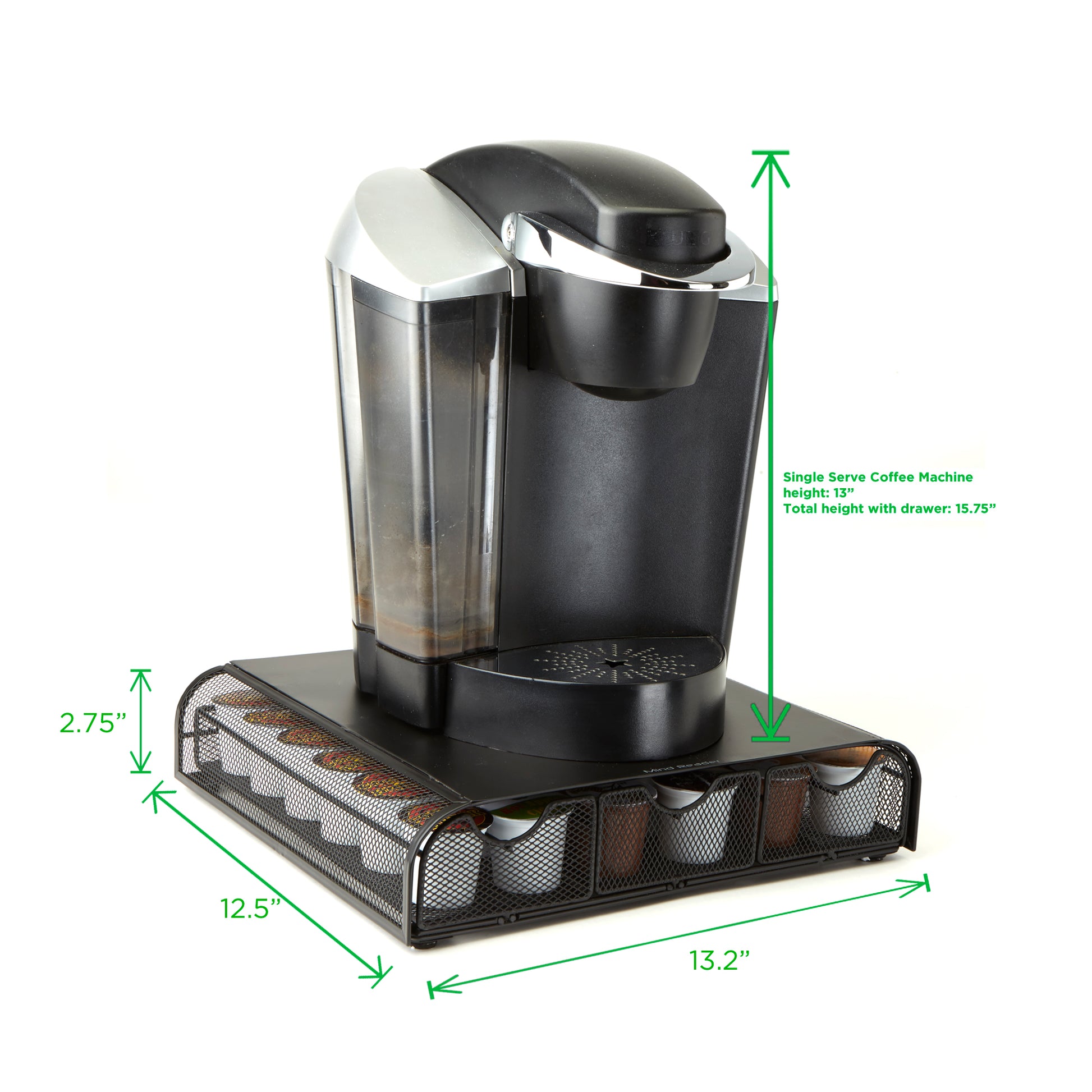- Save space: This single serve pod drawer holds 36 pods, fits right under your existing coffee maker and doesn't require extra valuable countertop space