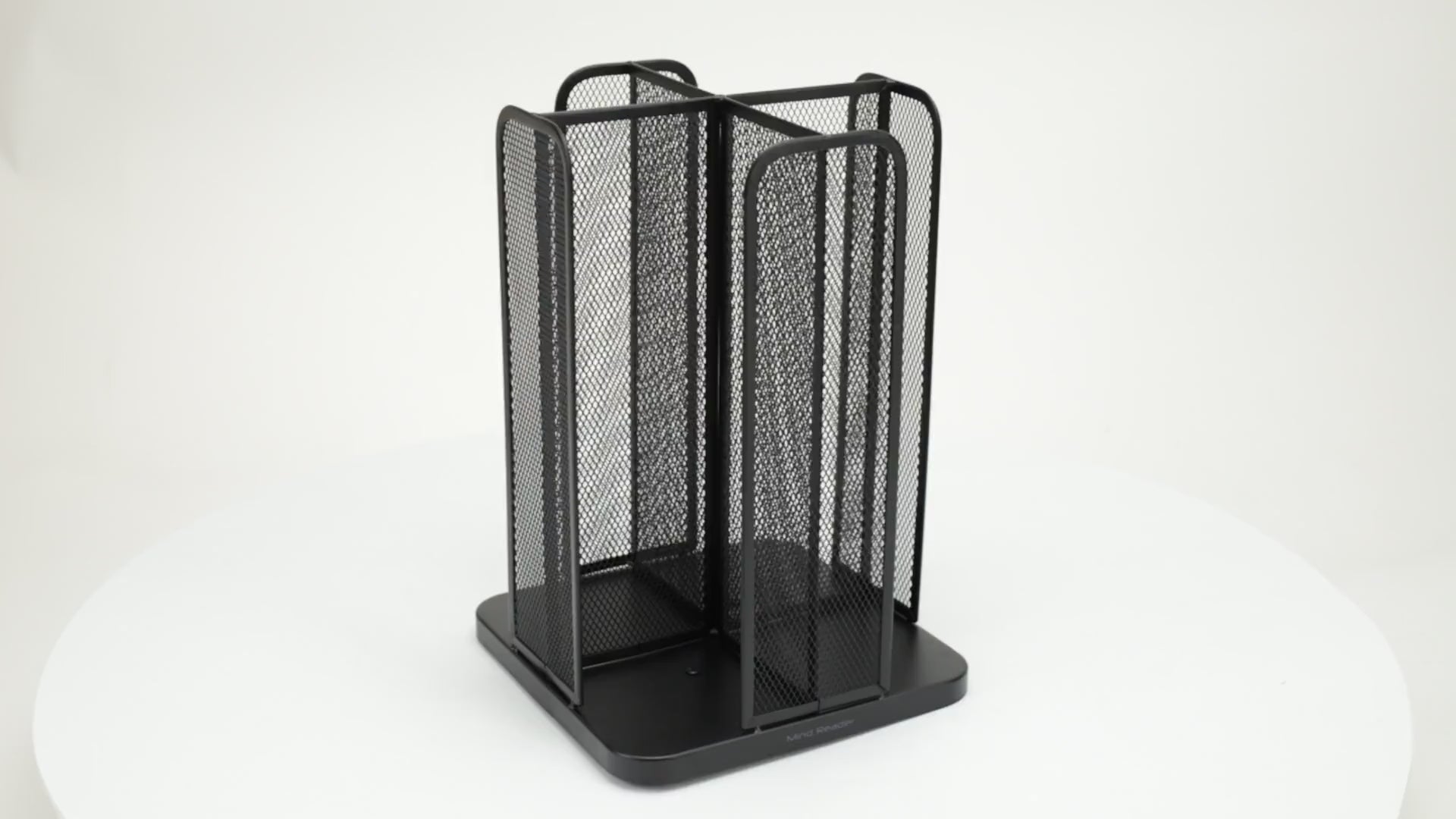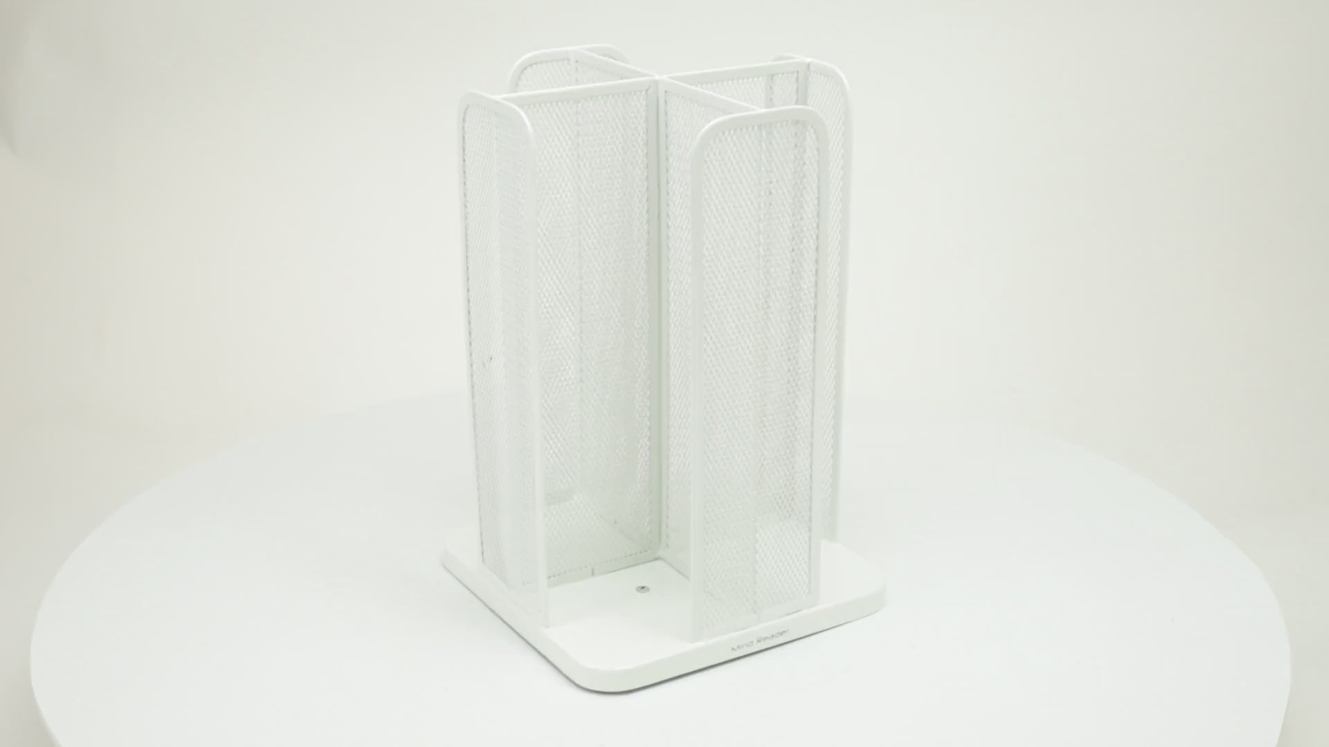Ideal for indoor or outdoor use, the plastic cup and lid holder is both neutral and modern. If an accidental spill happens or dust accumulates, clean this four-compartment rotating carousel with mild soap and a paper towel or soft cloth.