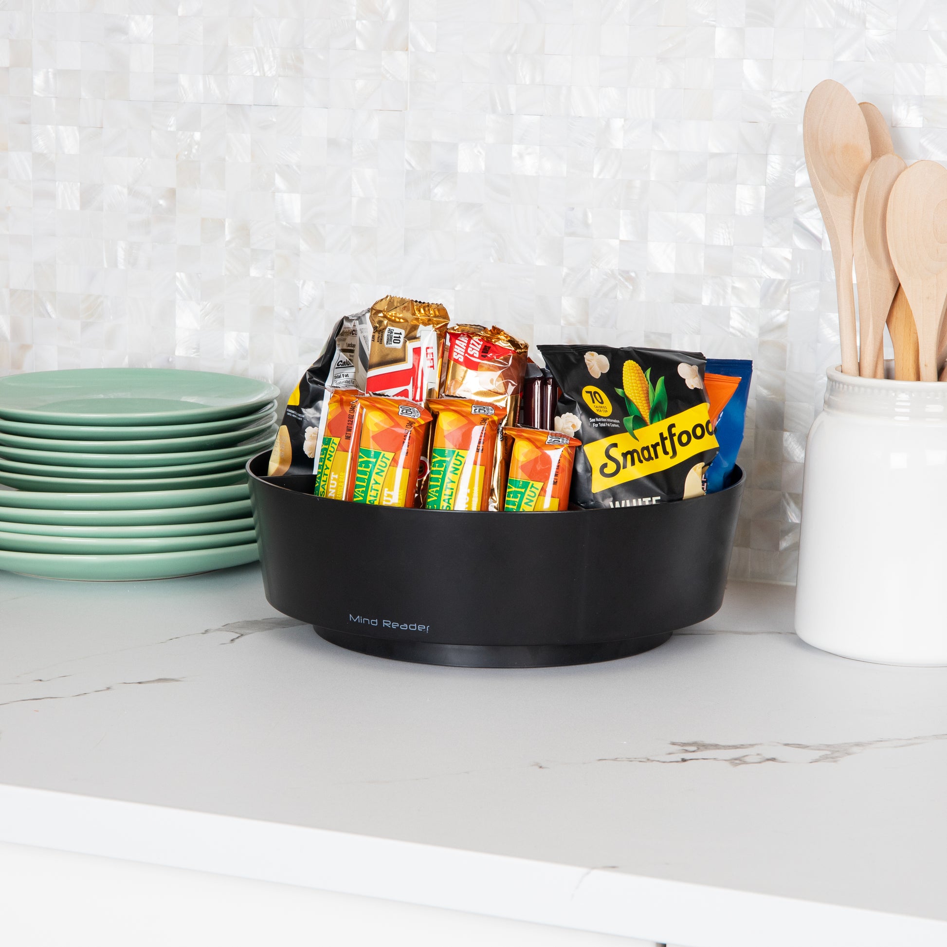 Mind Reader Snack Carousel, Countertop Organizer, Snack Tray, Condiment Holder, Breakroom, Kitchen, 12"L x 12"W x 4"H, Black