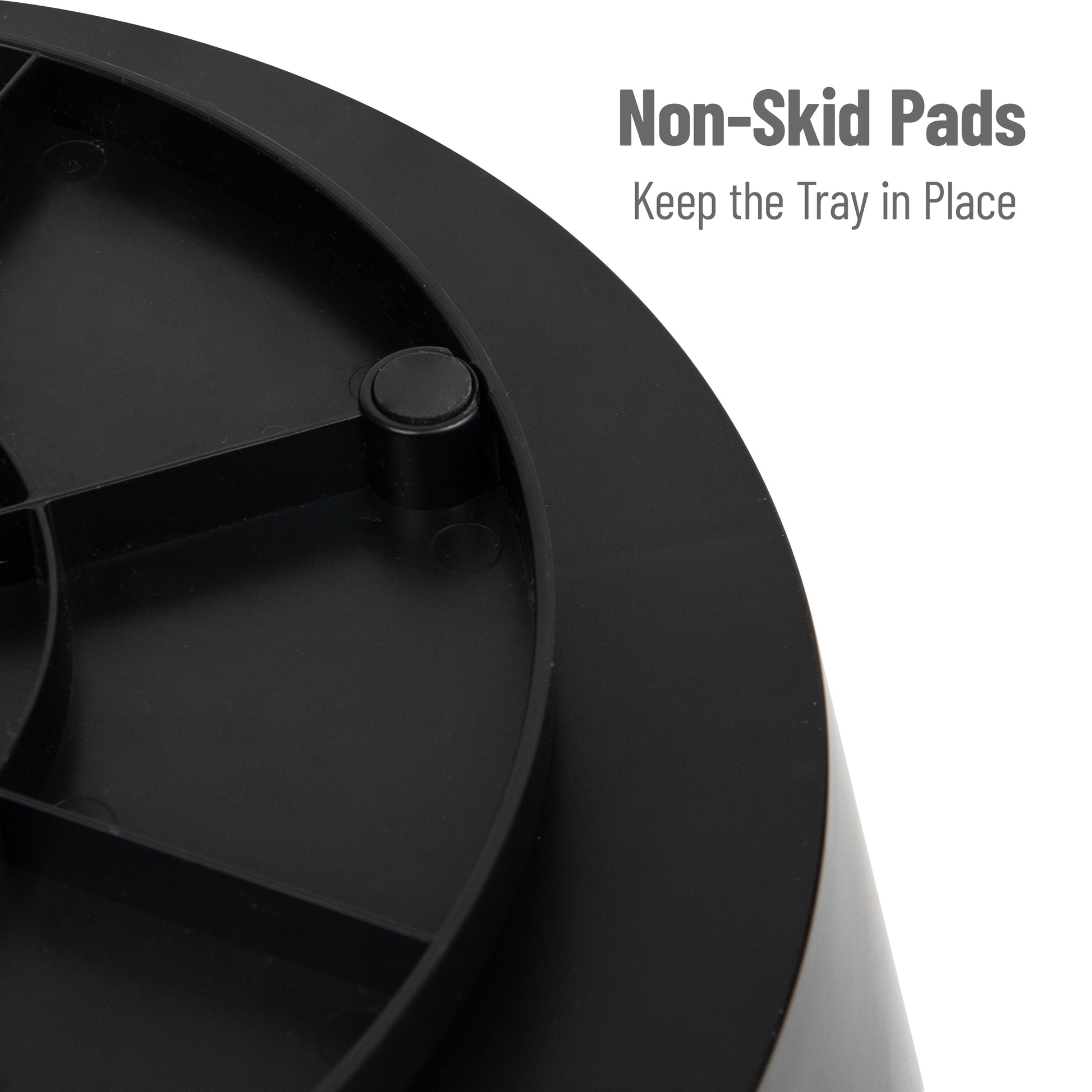 • Simple and unobtrusive design: This snack organizer has a low-profile black perimeter that will sit securely on any kitchen countertop, island, or snack cart