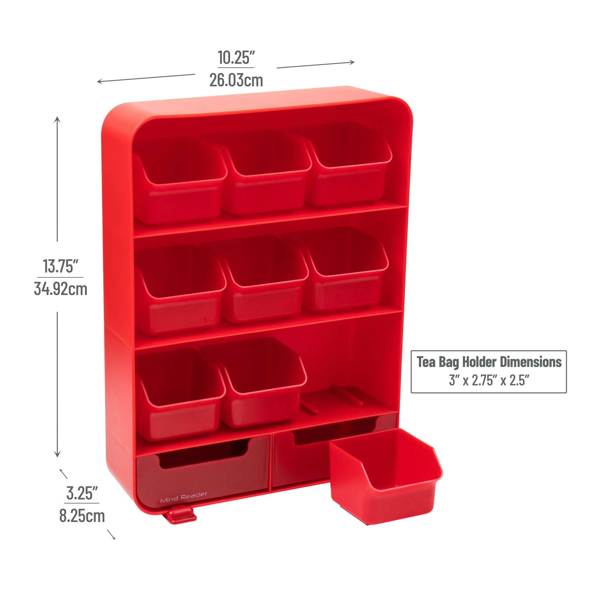 Mind Reader Tea Bag Organizer, Tea Station Organizer, Countertop Storage, Kitchen, Plastic, 10.25"L x 3.25"W x 13.75"H