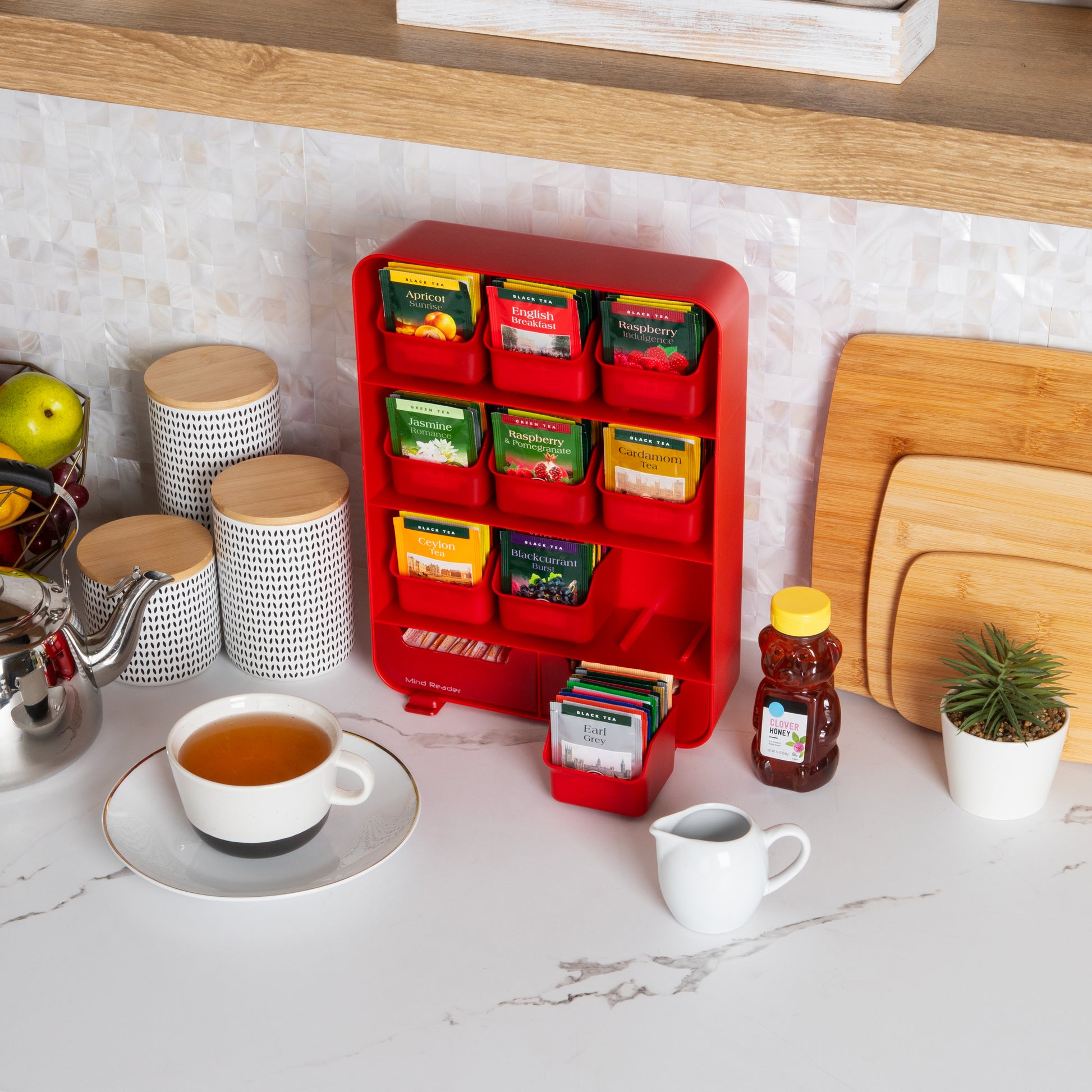 - Organize tea bags by type: With nine different drawers, you can easily separate your favorite tea bags by flavor, brand, or caffeine content. There are 9 tea bag drawers and two extra bottom drawers that are perfect for sweeteners, stirrers and creamers