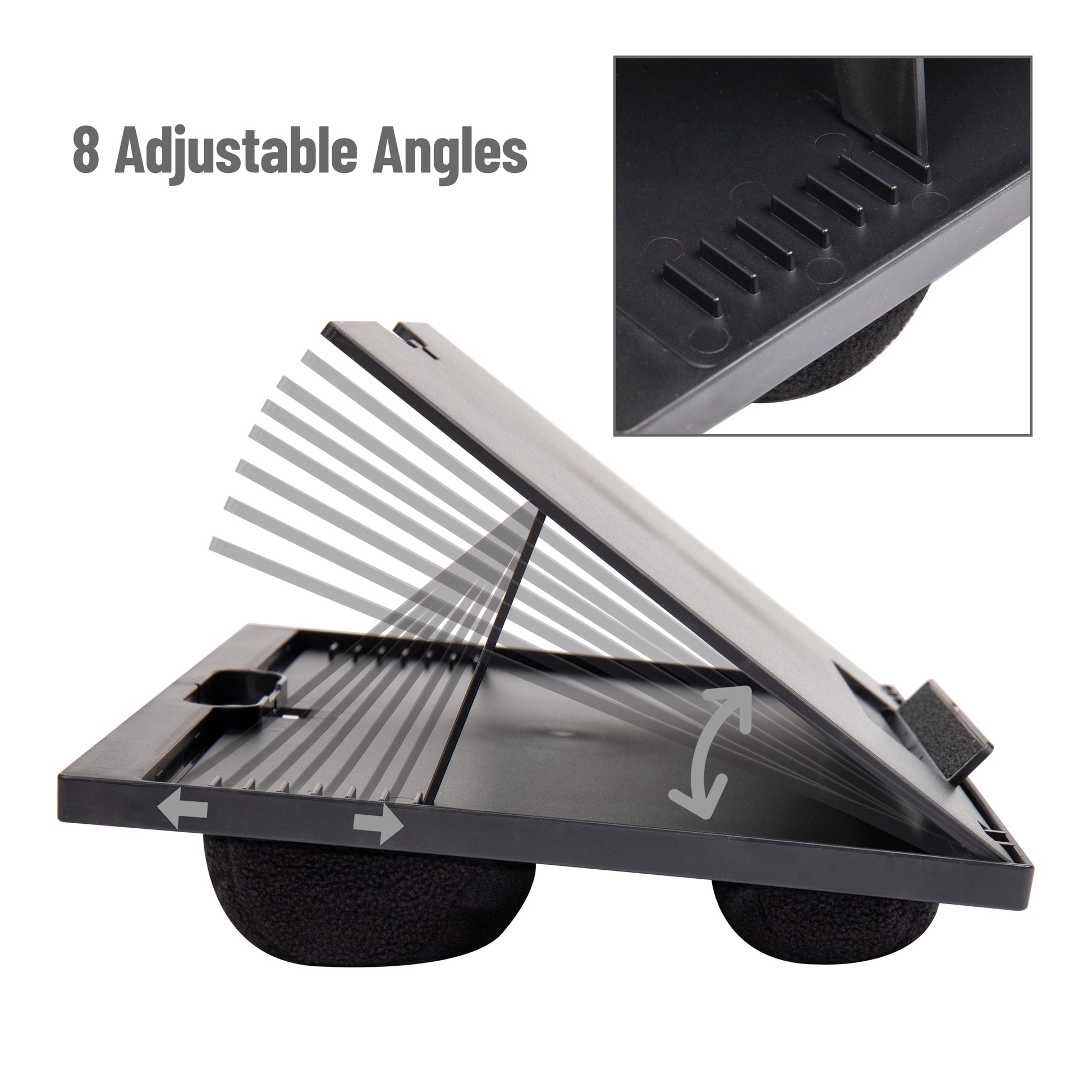 With eight adjustable settings, our portable laptop desk enables optimal viewing from any angle, reducing tension on the neck and shoulders. Customizing the height not only promotes proper posture but also helps alleviate muscle strain on your arms and wrists, while improving circulation.