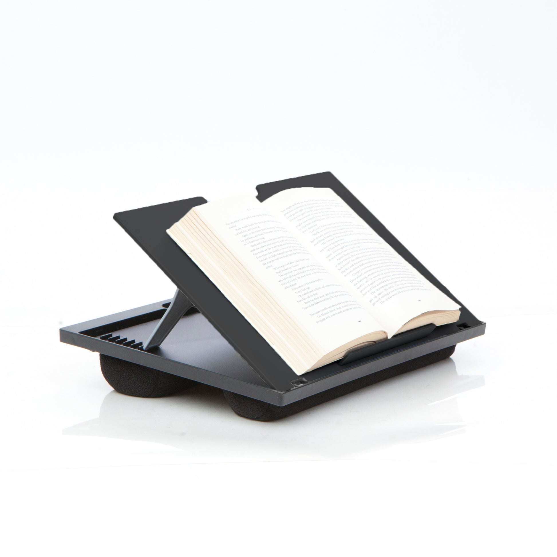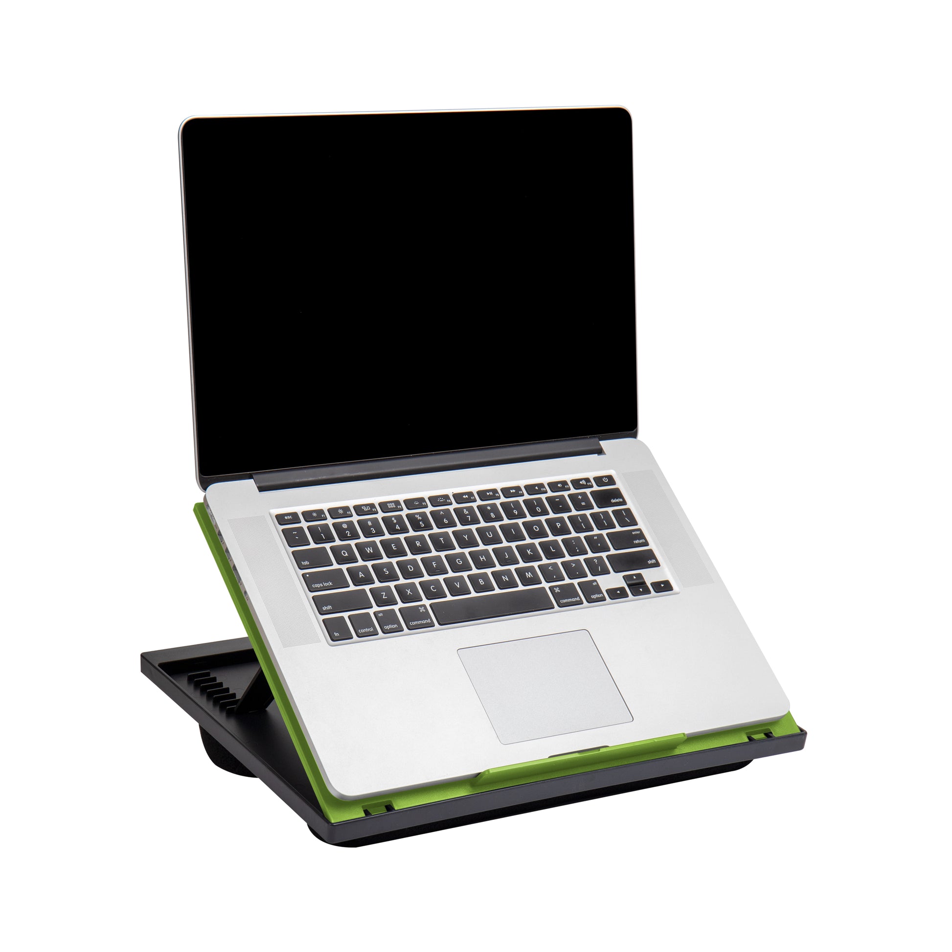 A built-in plastic lip at the front of the laptop desk securely holds your electronic devices in place. Versatile and adaptable, this laptop desk doubles as a supportive table for travel, watching TV, or reading. Designed to accommodate laptops and tablets with up to 15.6-inch screens, its lightweight design and sturdy built-in handle make it the ideal travel companion. Gift this laptop desk to students or anyone who enjoys streaming shows on their laptops.
