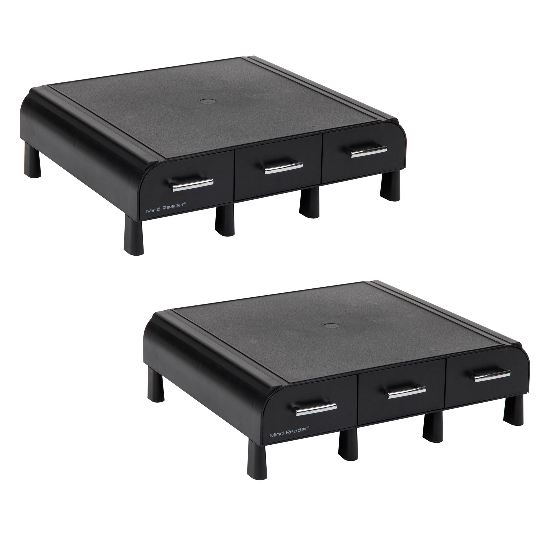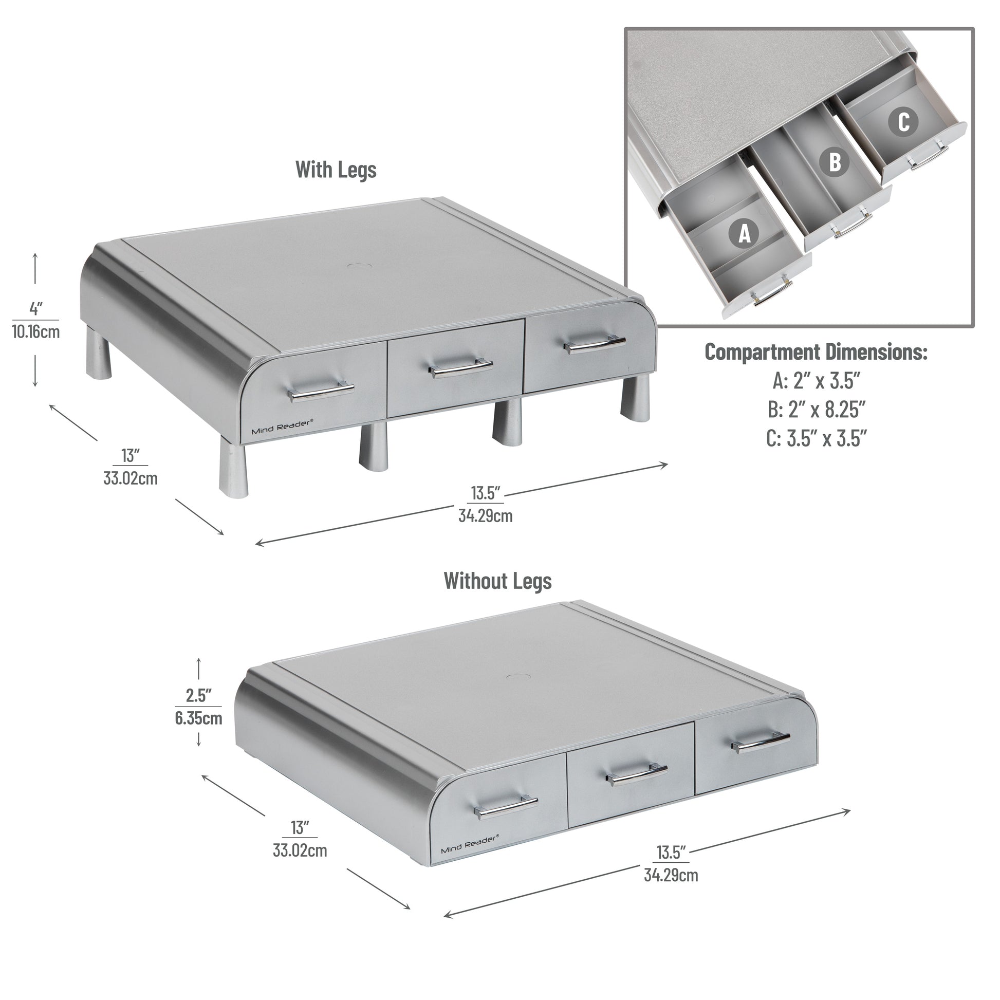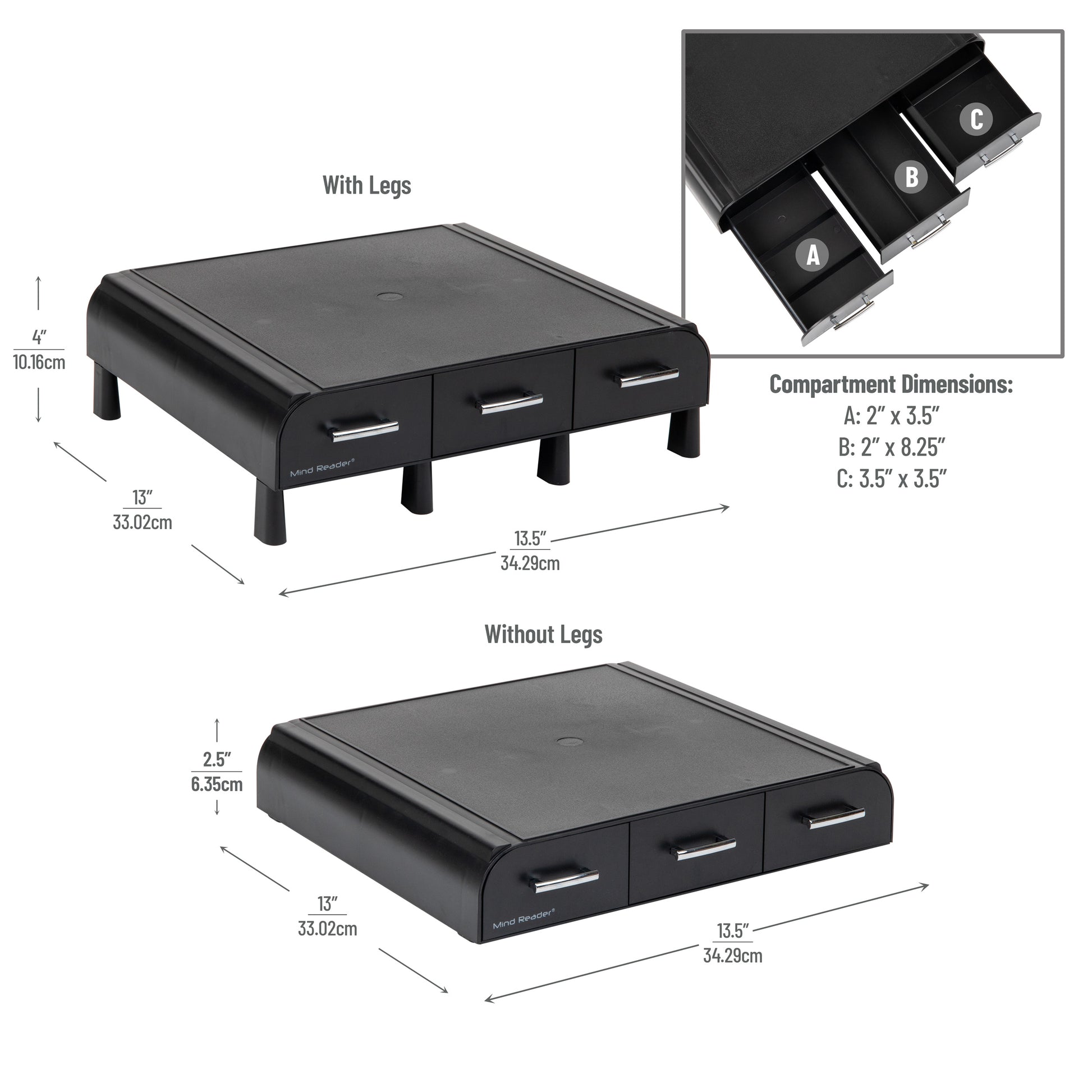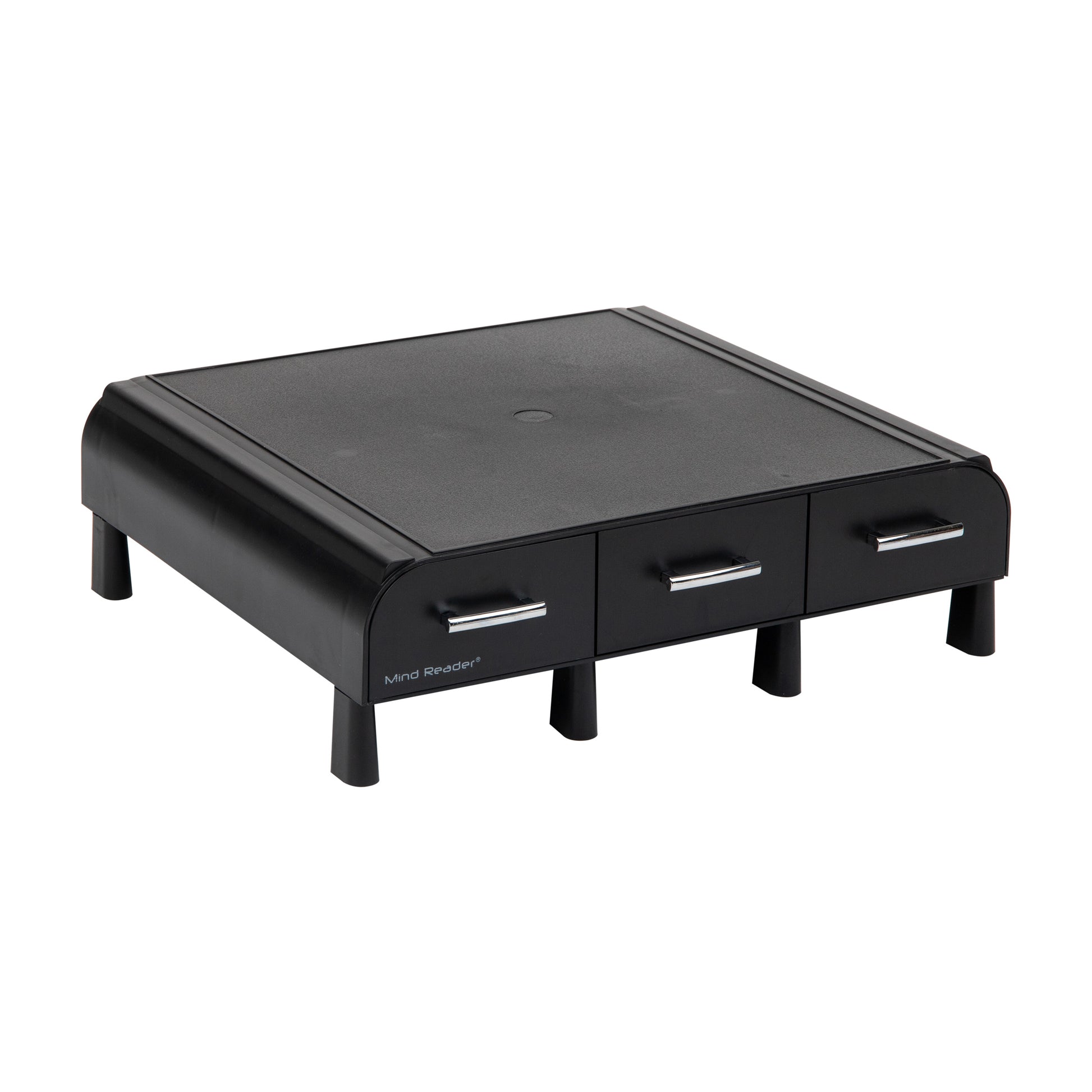 Mind Reader Monitor Stand, 3 Storage Drawers, Desktop Organizer, Riser, Office, 13.5"L x 13"W x 4"H