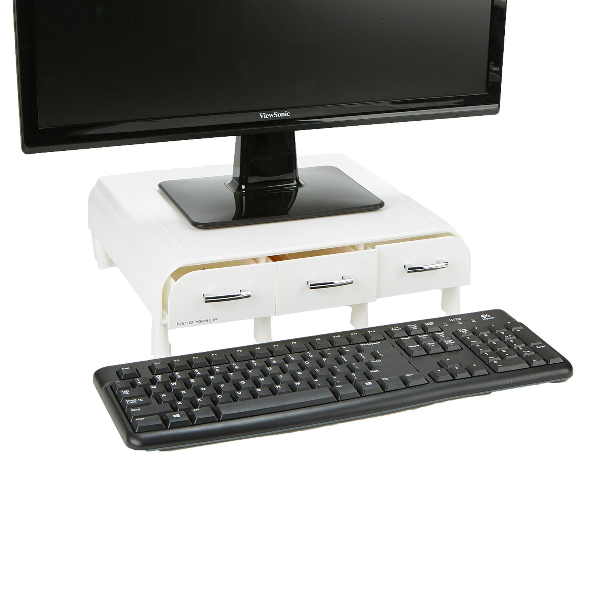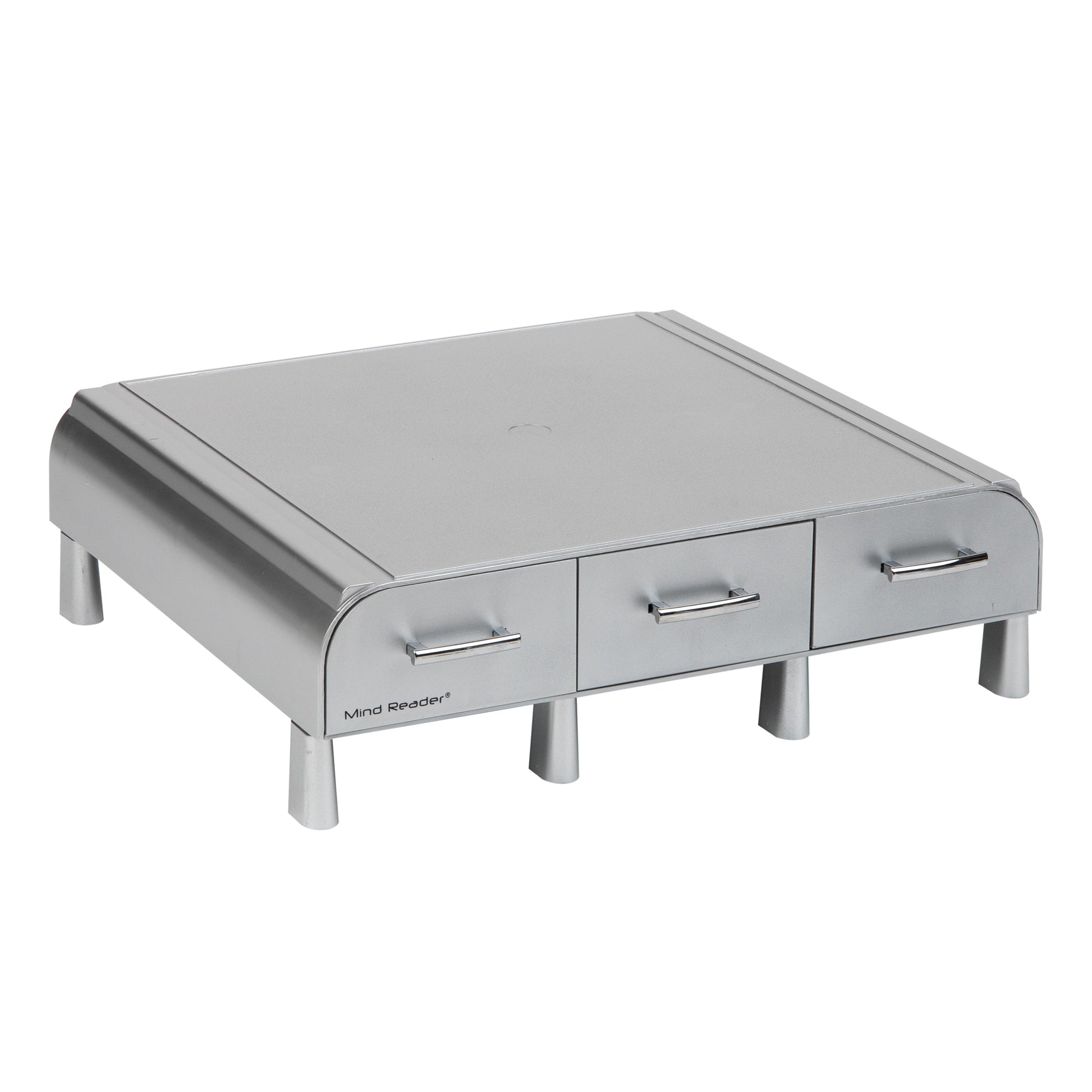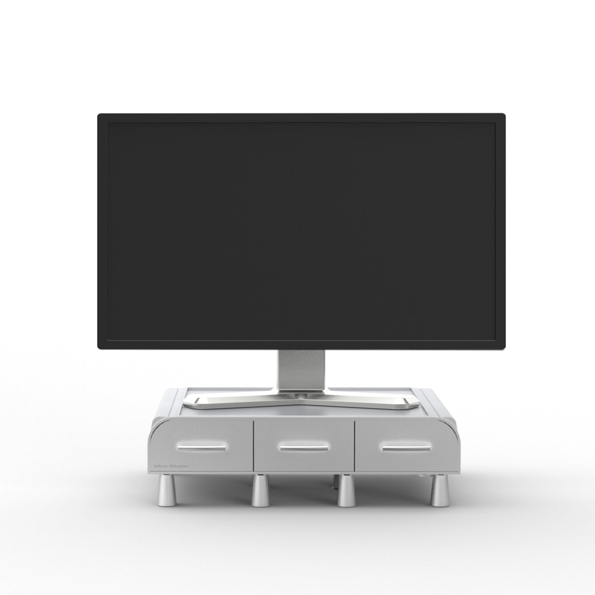 Mind Reader Monitor Stand, 3 Storage Drawers, Desktop Organizer, Riser, Office, 13.5"L x 13"W x 4"H