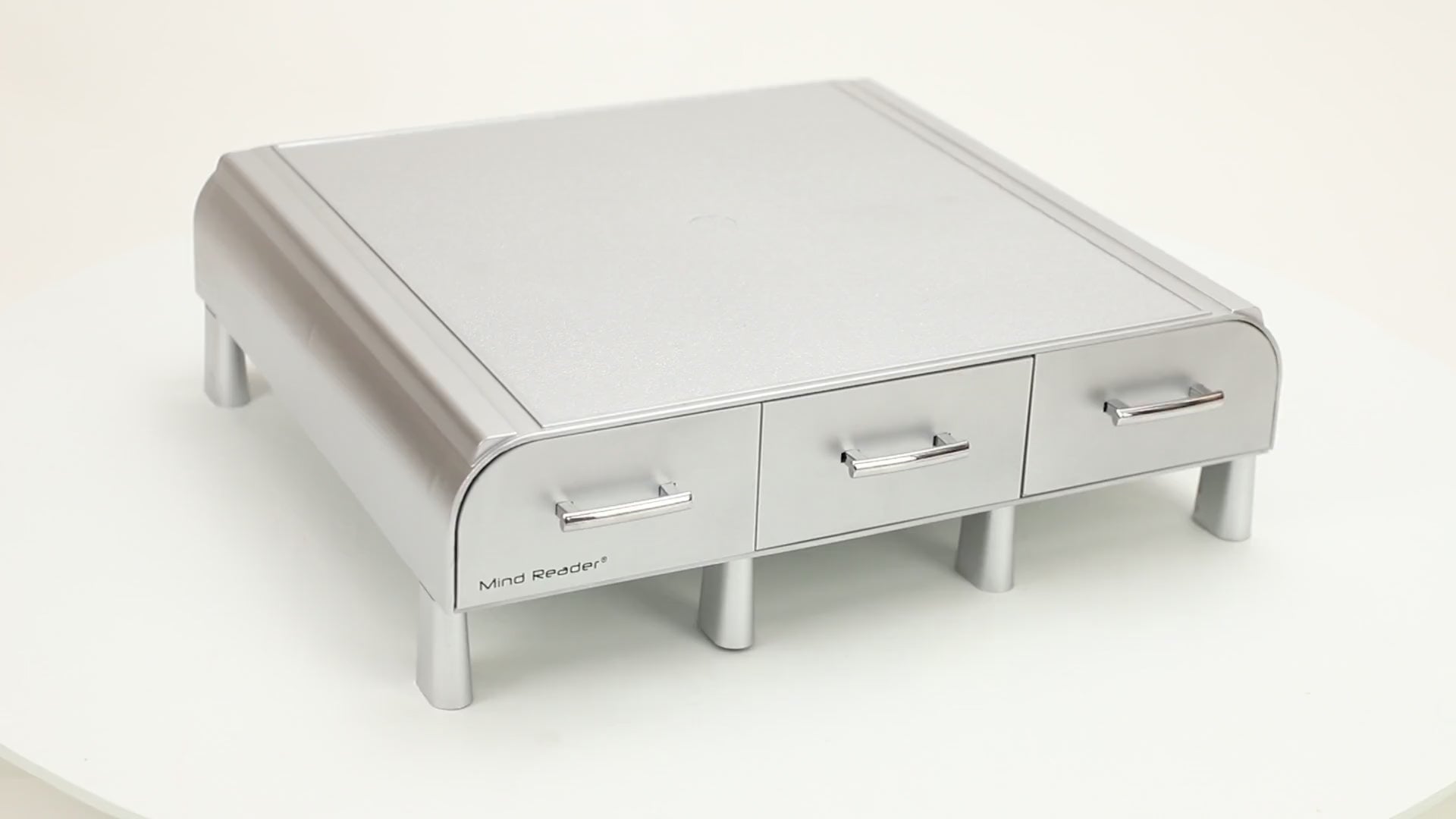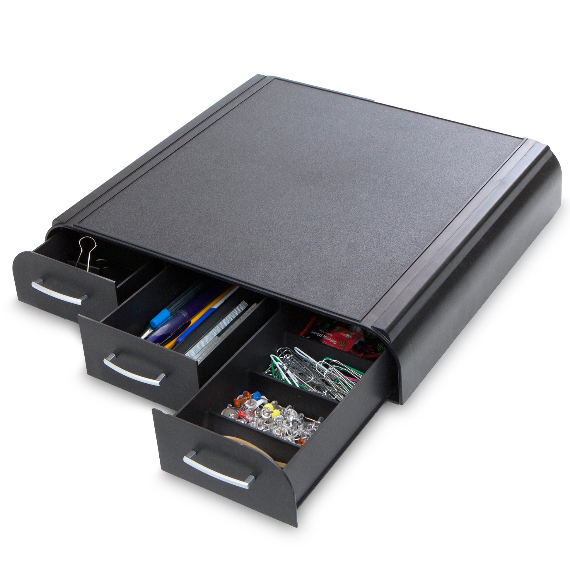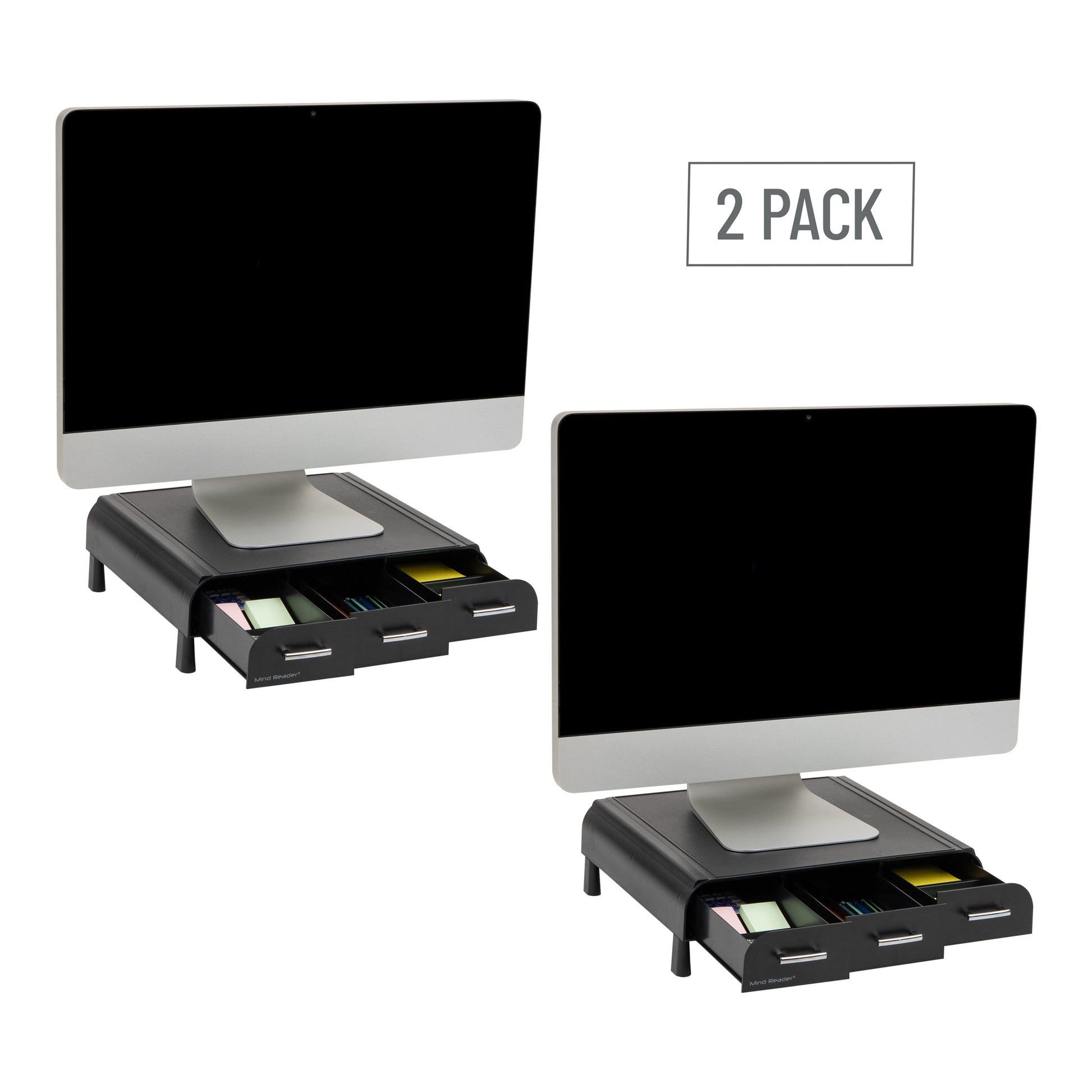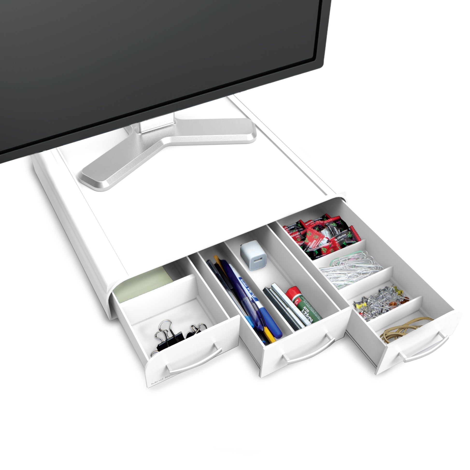 Mind Reader Monitor Stand, 3 Storage Drawers, Desktop Organizer, Riser, Office, 13.5"L x 13"W x 4"H