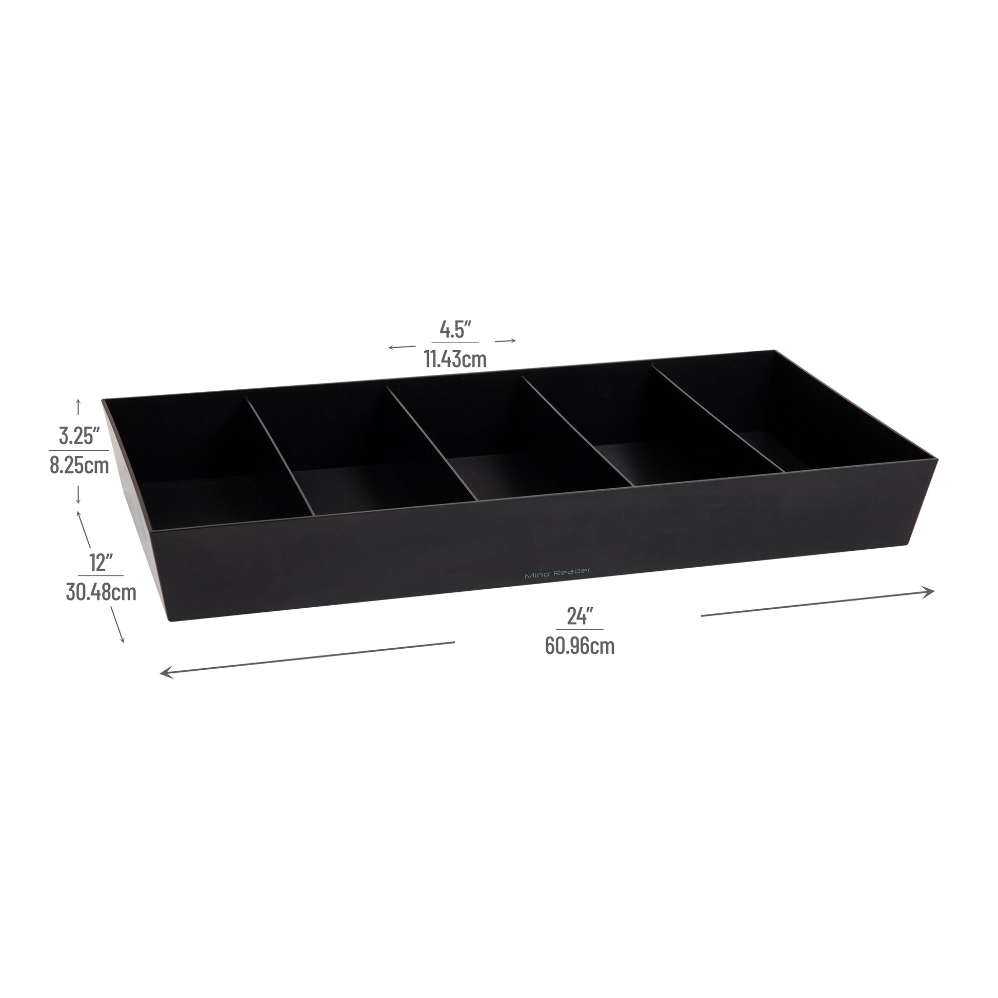 Mind Reader Snack Tray, Countertop Organizer, Snack Tray, Condiment Holder, Breakroom, Kitchen, 24"L x 12"W x 3.25"H, Black