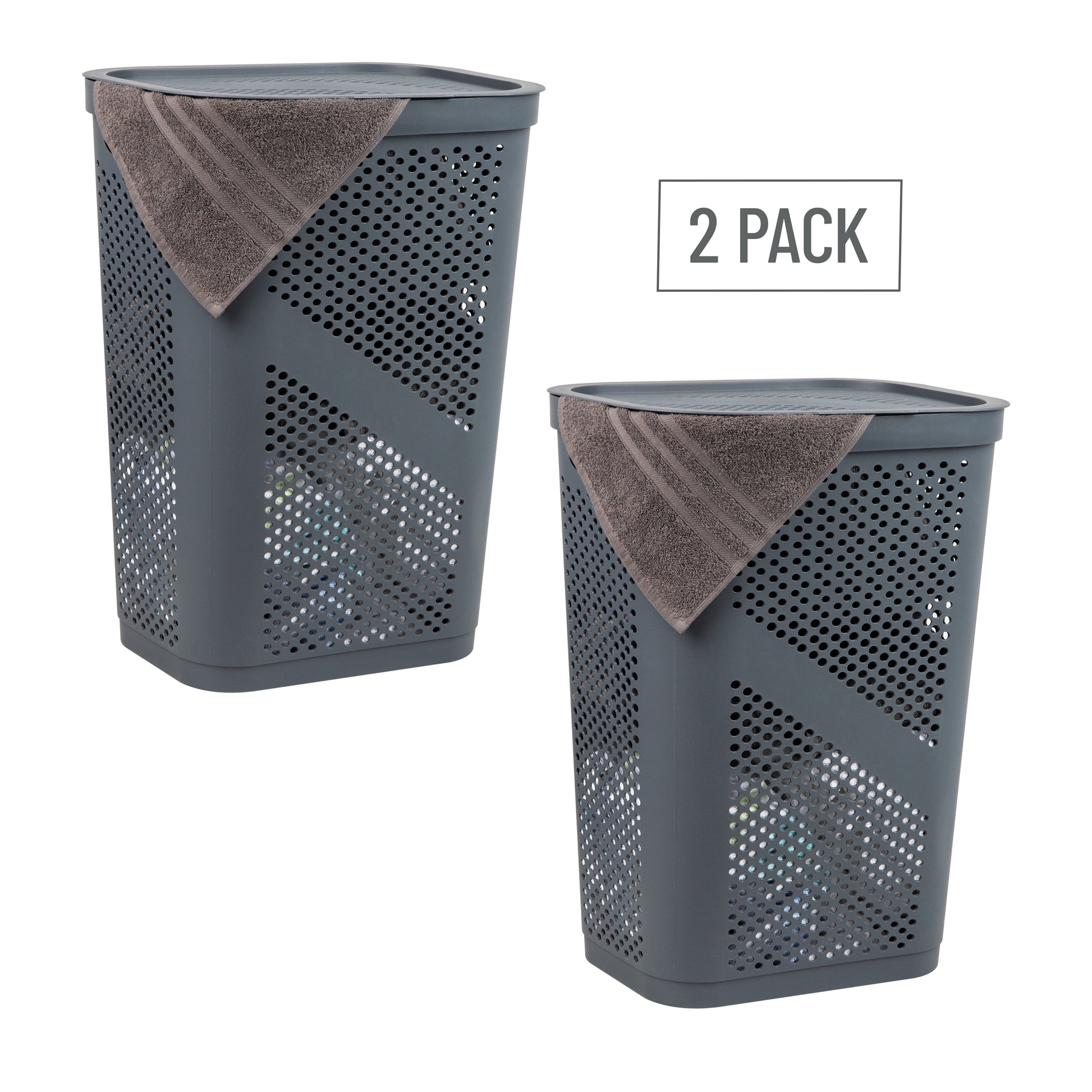 Turn minimum space into maximum storage with two clothes hampers that blend neatly into any home aesthetic with a sophisticated interlocking wicker design that compliments your decor. It works well next to the washer and dryer, in a small bathroom, or tucked into a closet.
