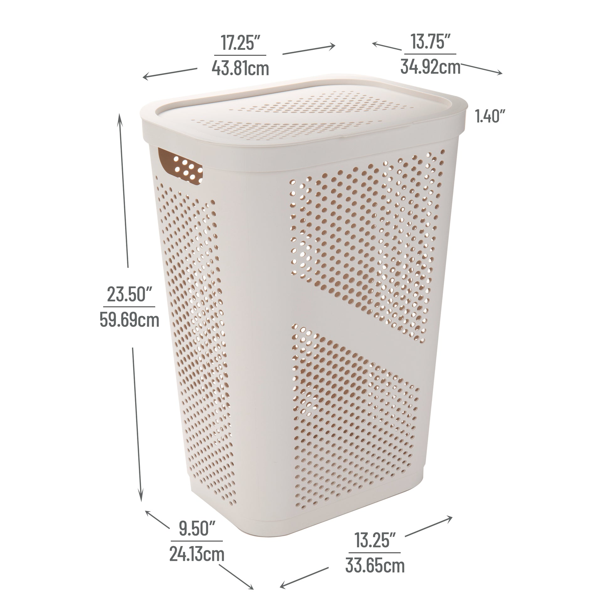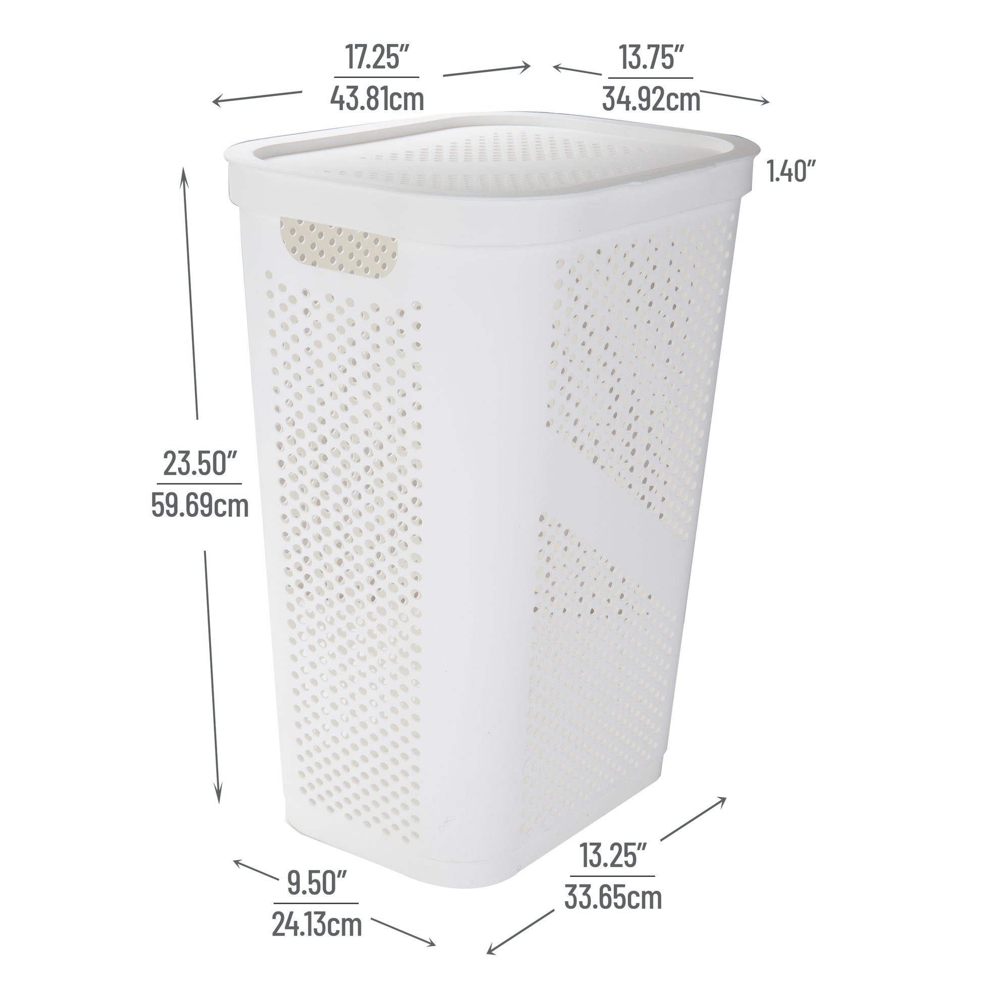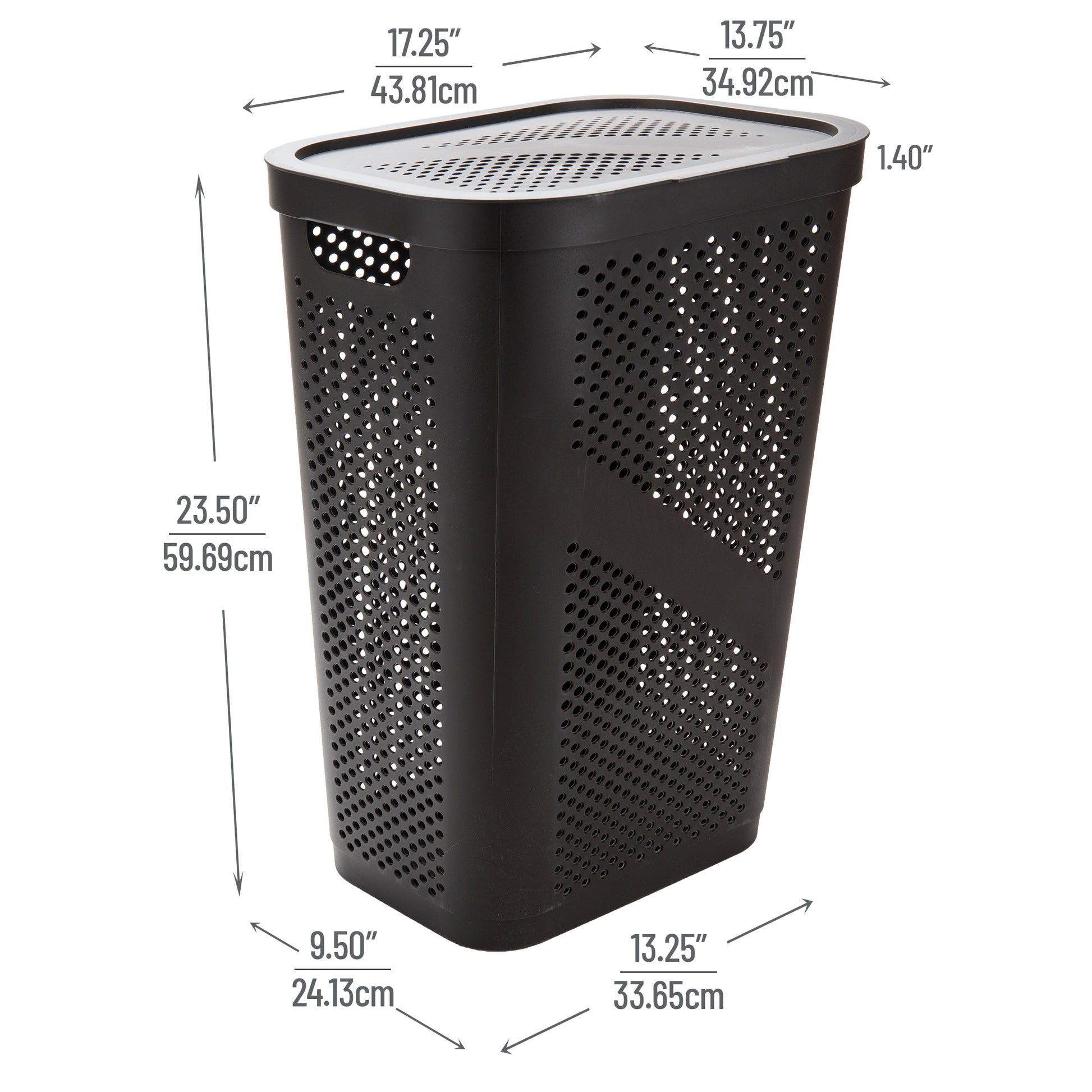 - Large and roomy: Ample-sized laundry hamper with cut-out handles measures 13.75 long x 17.25 wide x 23.50 inches tall (34.92 x 43.81 x 59.69 centimeters) and weighs 3lbs (1.36 kg)