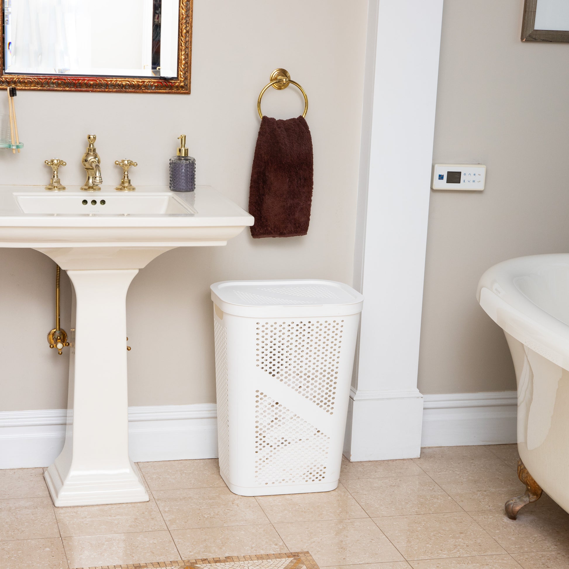 The hinged lid is attached, so you won't easily lose it. It keeps laundry under wraps and tidy, so your bathroom or bedroom stays neat and clean.