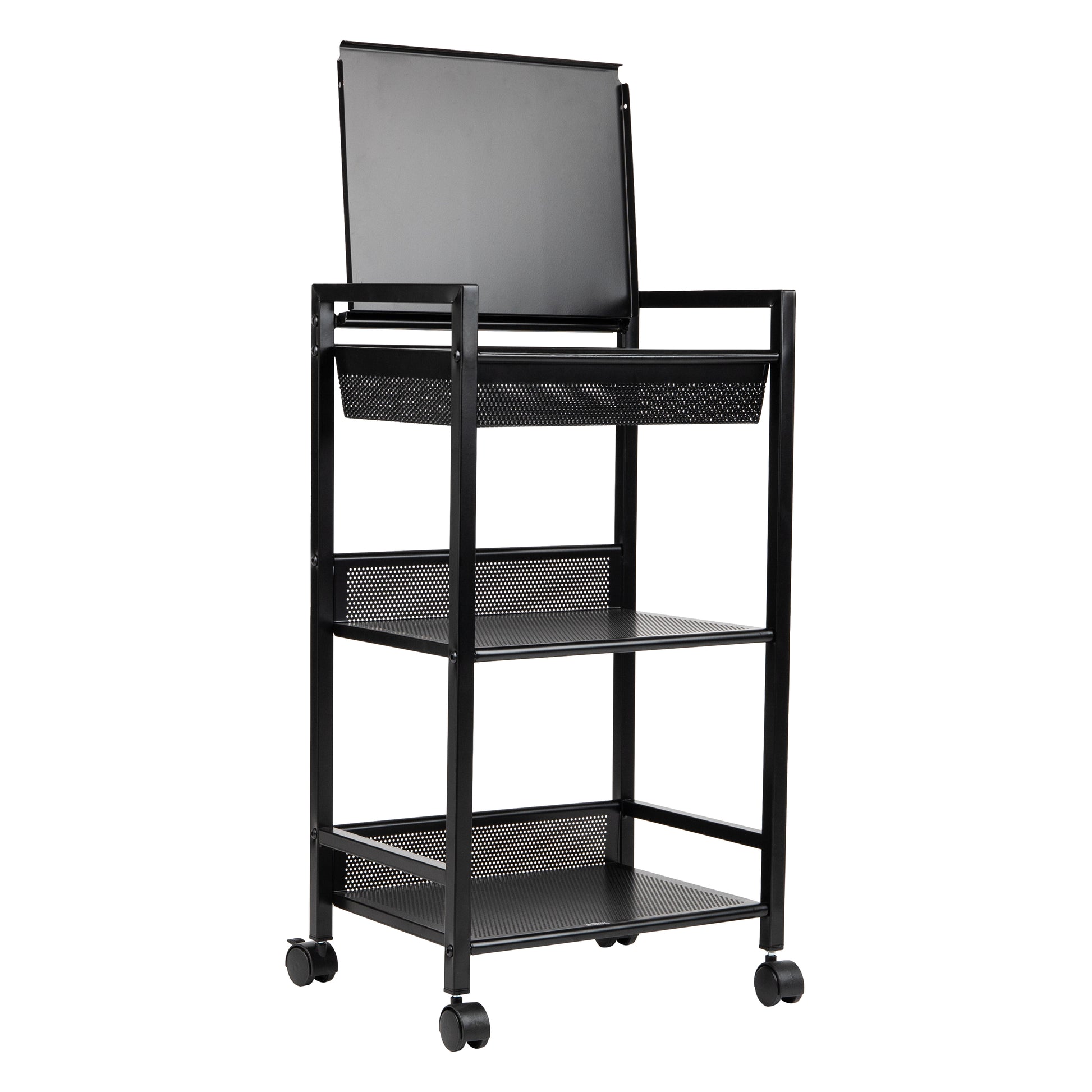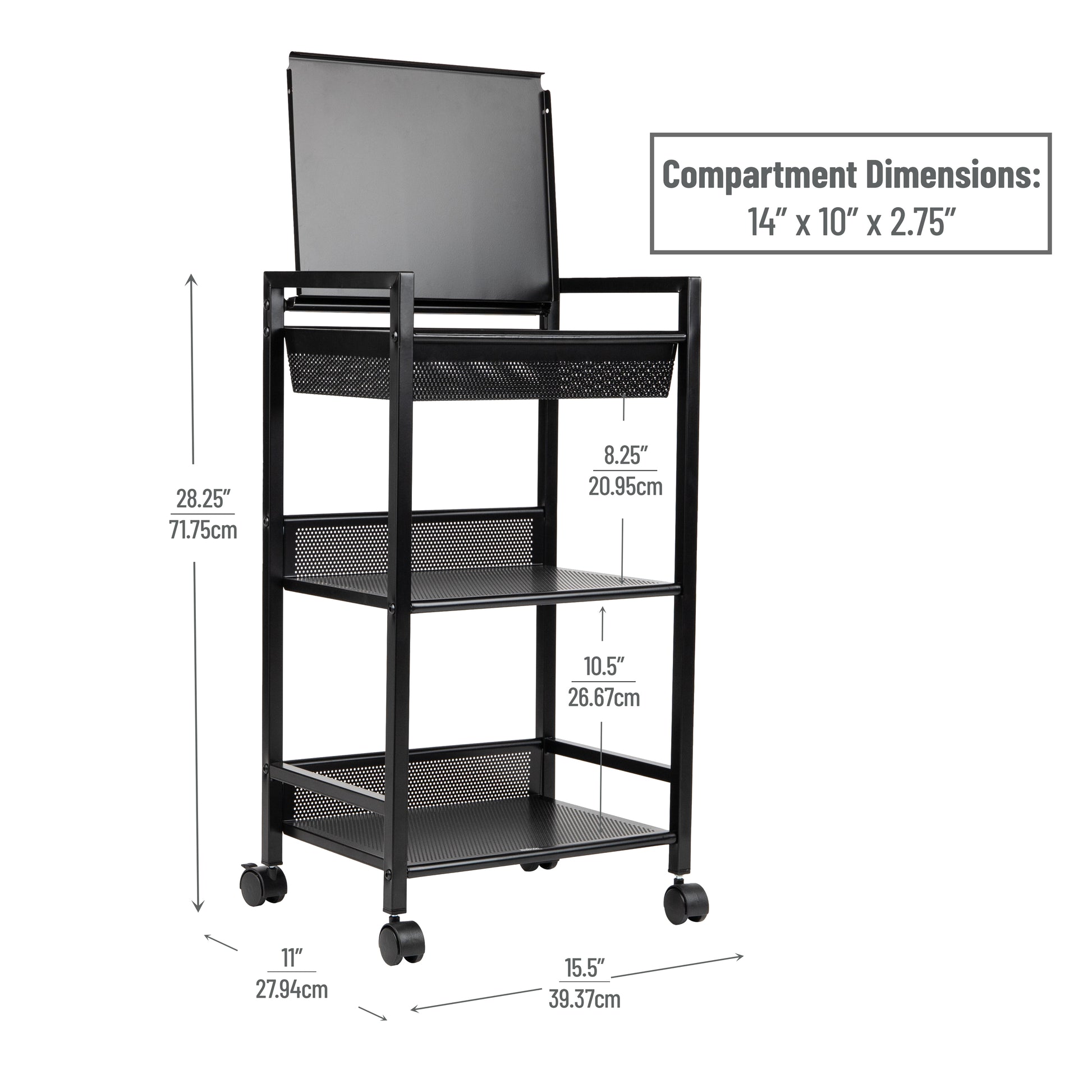 Mind Reader Cart with Covered Compartment, Office Organizer, Storage, 3-Tier, Office, Metal, 15.5"L x 11"W x 28.25"H, Black