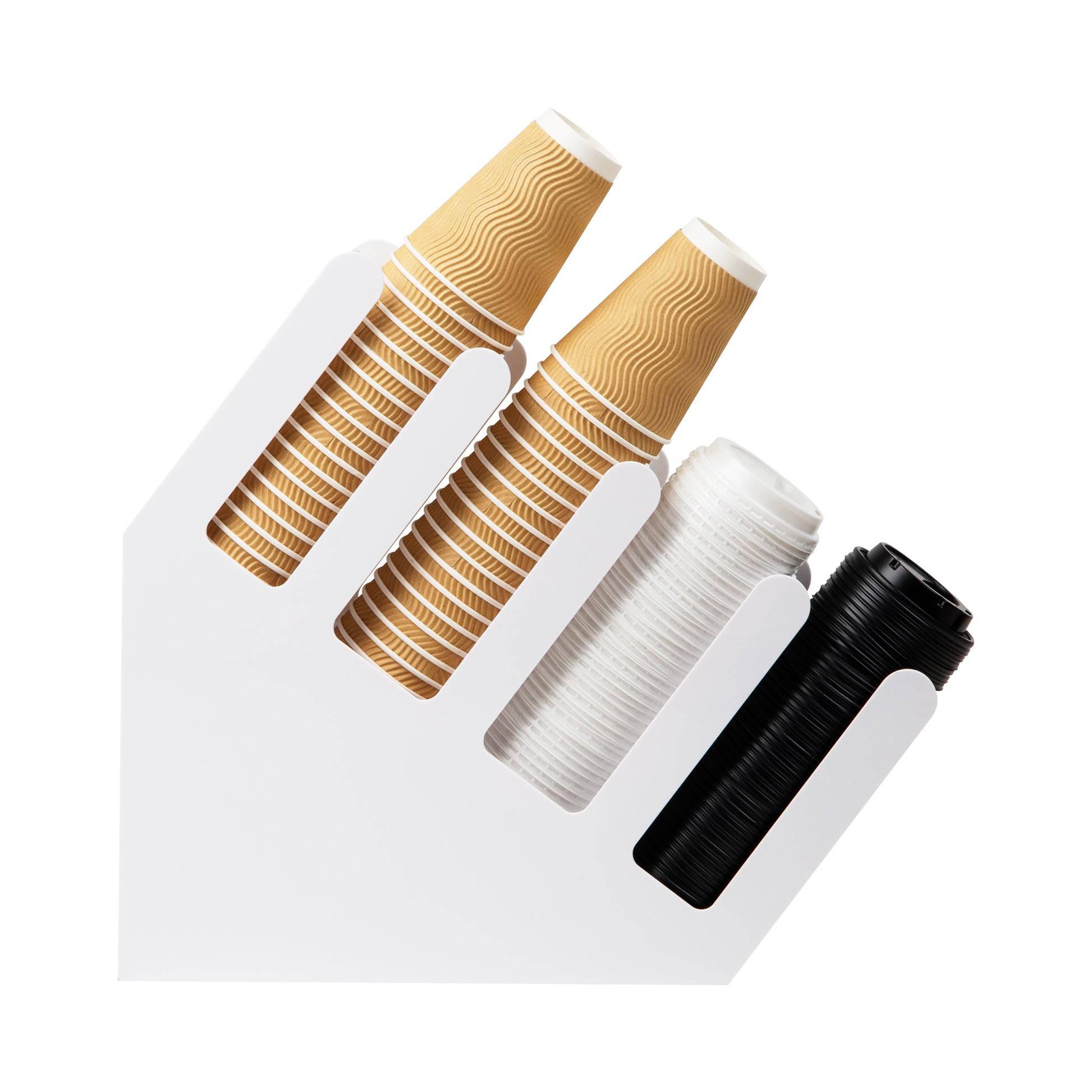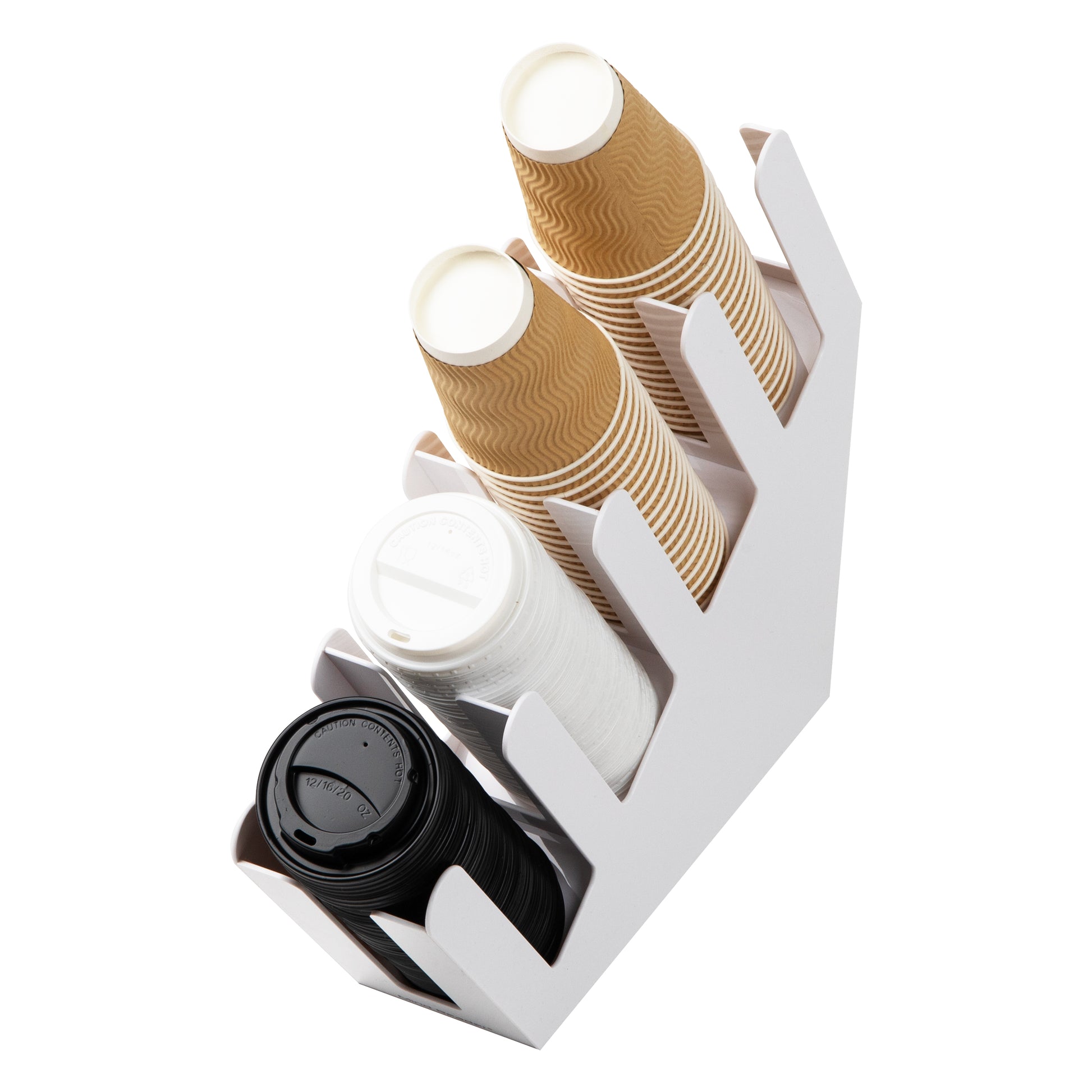 - Effortless stacking: The angled design of the coffee cup and lid dispenser allows for easy stacking of cups and lids, enabling quick and convenient access to your next cup of coffee