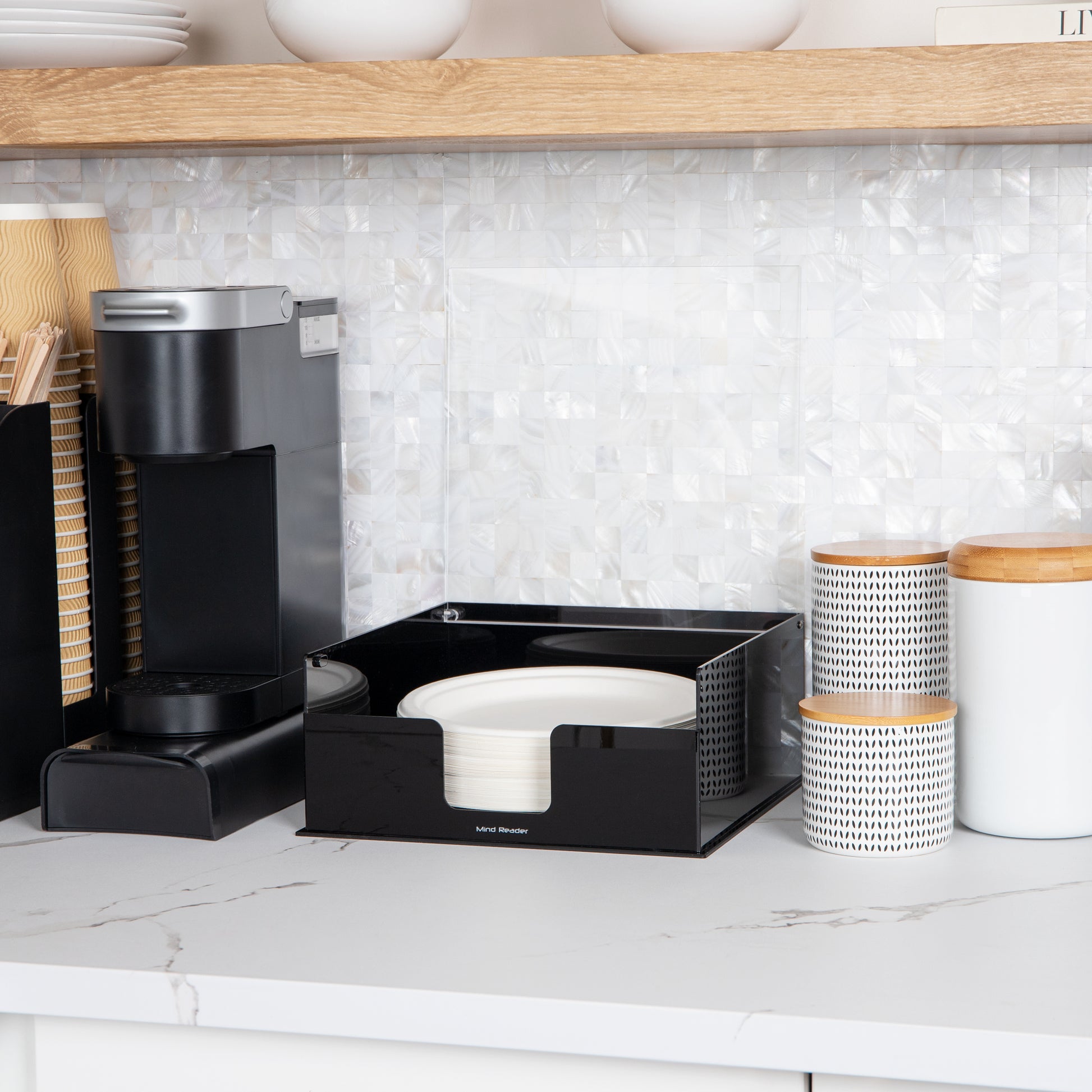 Mind Reader Paper Plate Holder, Covered Dispenser, Dinner Party Essentials, Plate Caddy, Acrylic, 11"L x 11"W x 5"H, Black