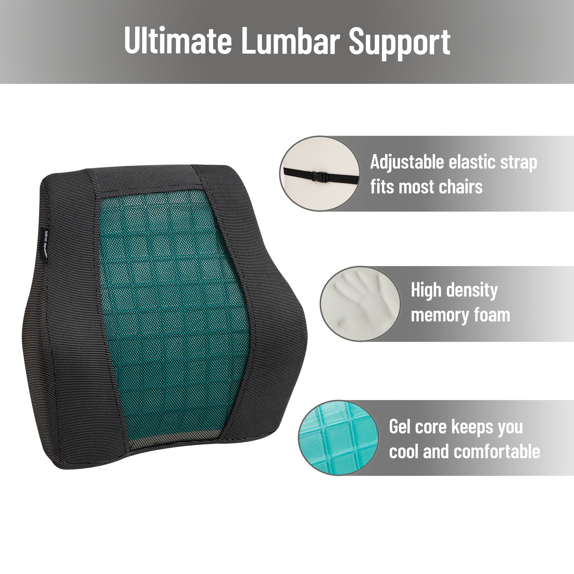 Mind Reader Lumbar Support Cushion for Office Chair and Car Seat, Memory Foam and Cooling Gel Core, Back Pain Relief, Improves Posture, 15.5"L x 3.75"W x 14"H, Black