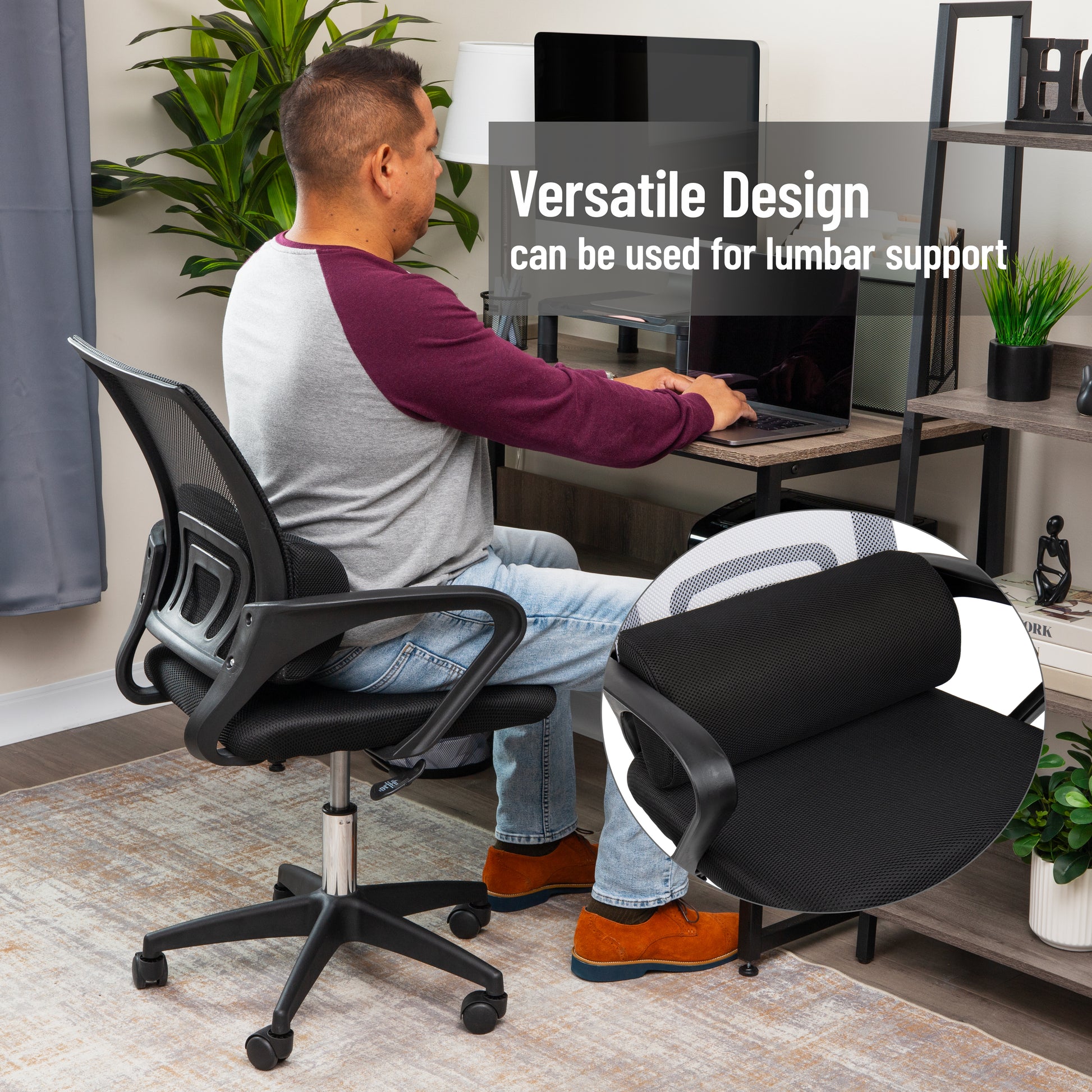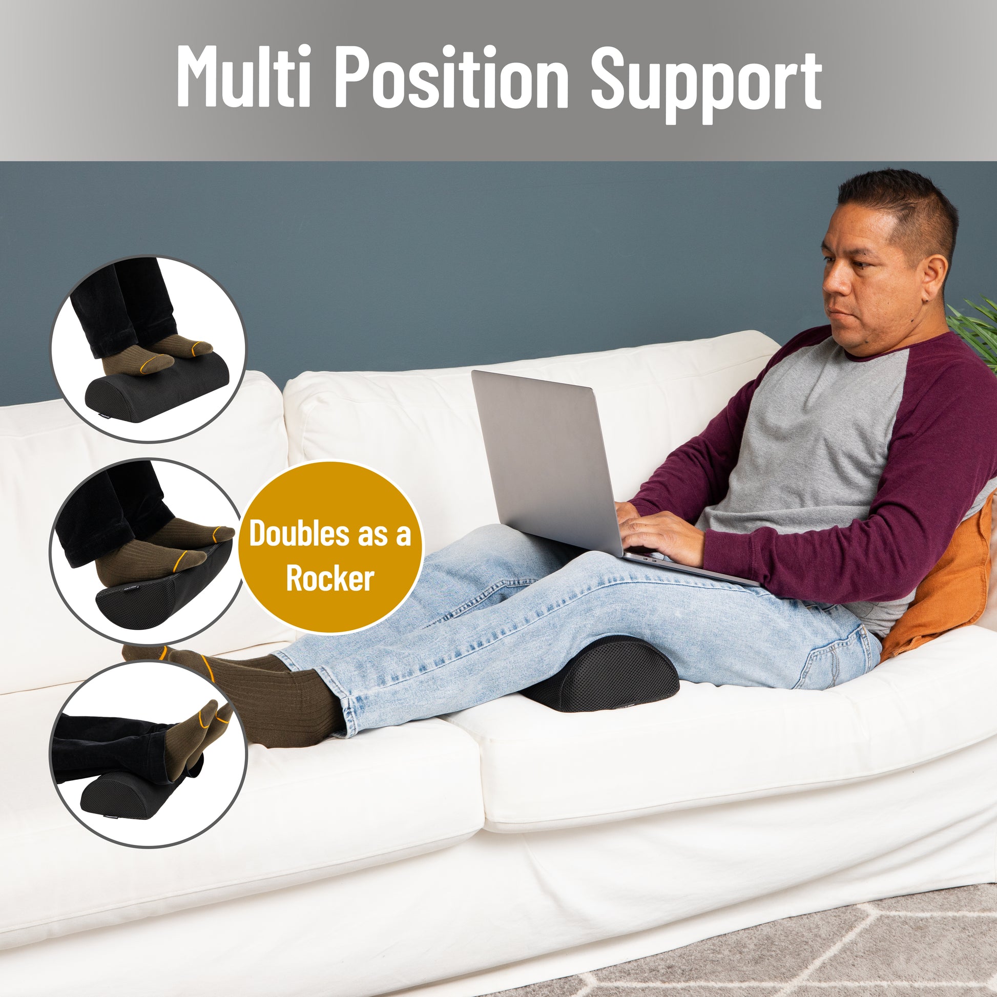 The small but mighty cushion can easily go wherever you go to alleviate back strain and leg discomfort when you're working, studying, or watching TV. The grip pattern on the bottom of the foot rest prevents slipping and sliding while sitting at your desk.