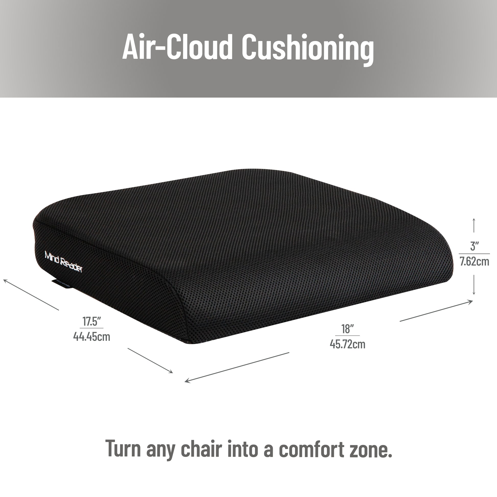Mind Reader Memory Foam Seat Cushion, Ergonomic Pressure Relief for Office, Car, and More, Relieves Hip, Tailbone, Coccyx & Sciatica Pain, 18"L x 17.5"W x 3"H, Black