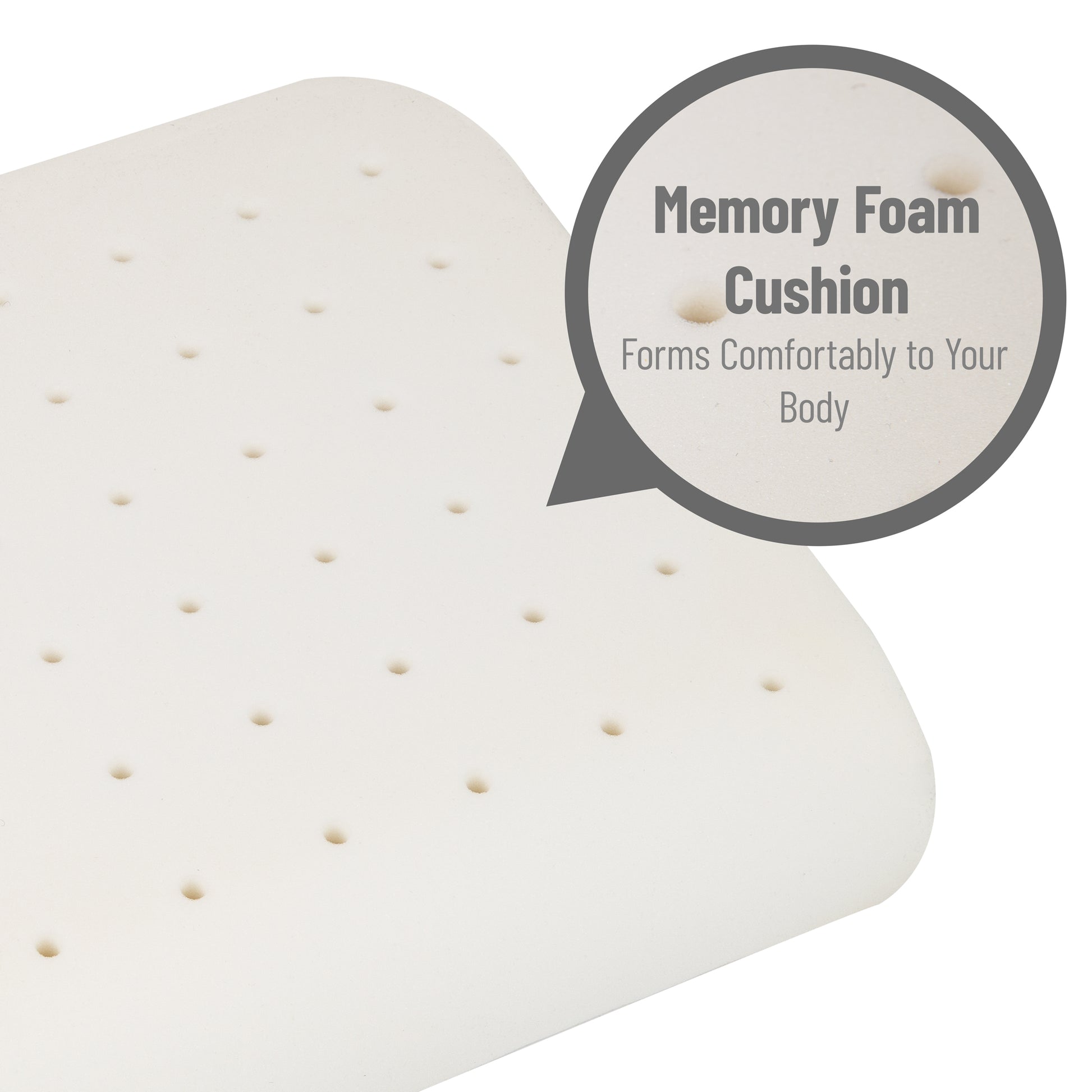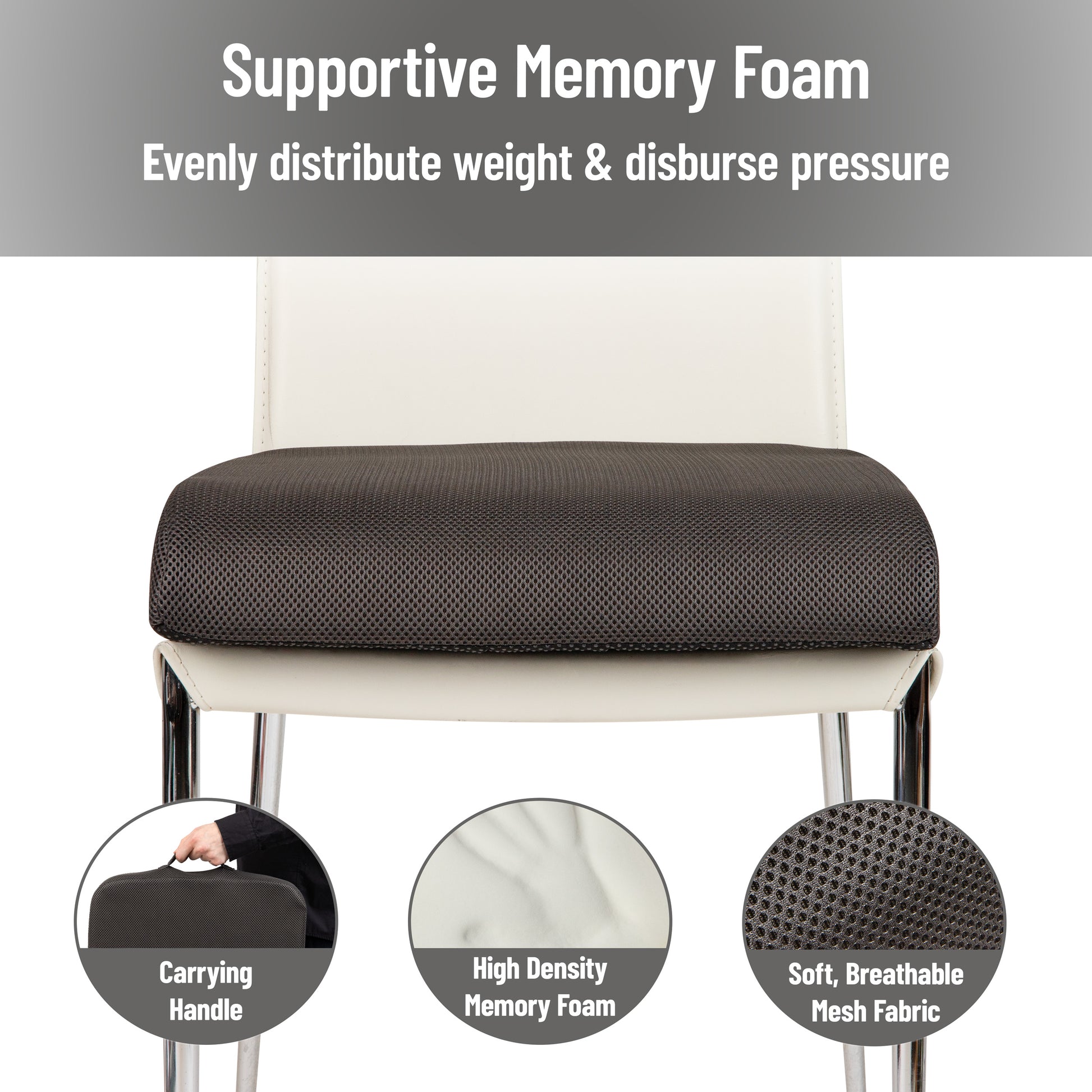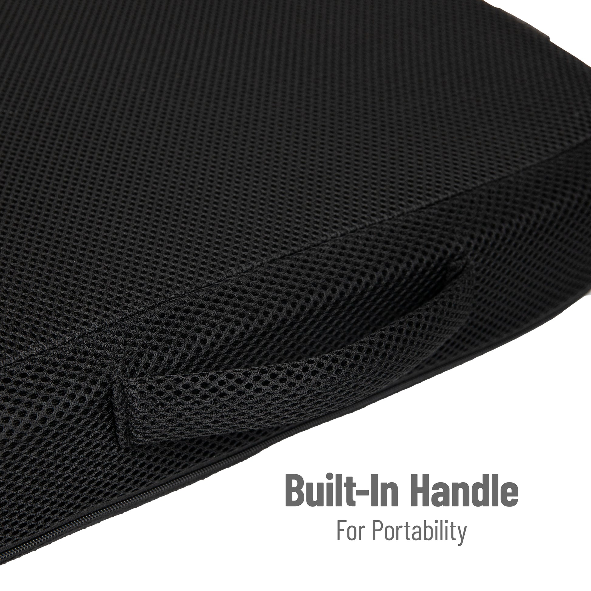 Designed with high-quality memory foam, it adapts to your body for customized support and returns to its original shape after use for long-lasting durability. Features include a removable, machine-washable cover for hassle-free cleaning, a built-in carrying handle for portability, and non-slip rubber grips to keep it securely in place. The breathable mesh fabric cover ensures optimal ventilation, keeping you cool and comfortable.