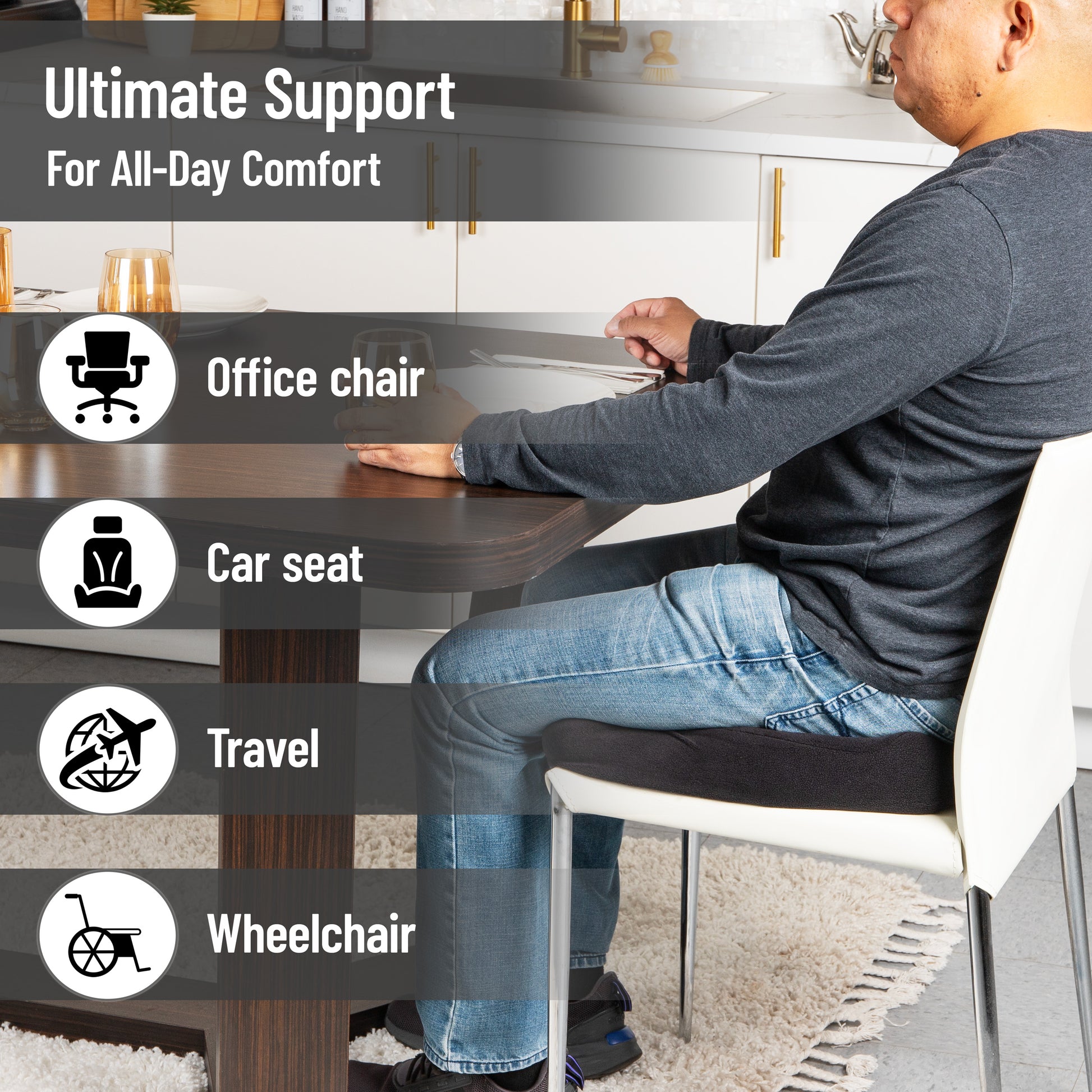 - Air-Cloud Cushioning: Scientifically engineered to cradle your thighs and hips, this contoured cushion ensures all-day comfort, whether you're at your desk, driving, or using a wheelchair. Ideal for extended sitting sessions, it helps reduce discomfort and fatigue