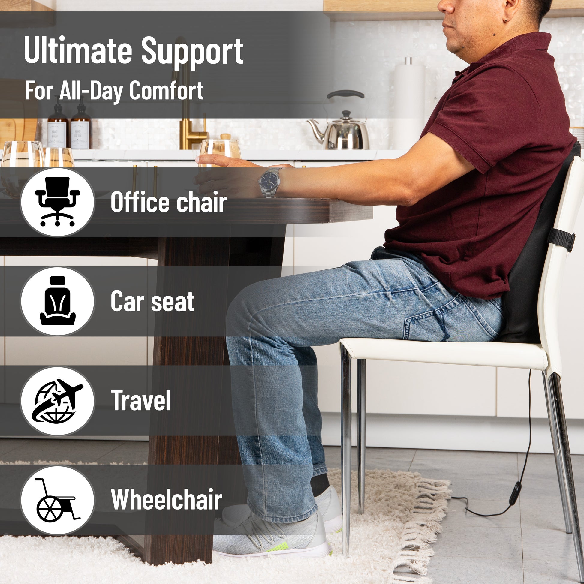 Whether you're working from home, relaxing after a long day, or commuting, this lumbar cushion provides customizable comfort and heat therapy wherever you need it.