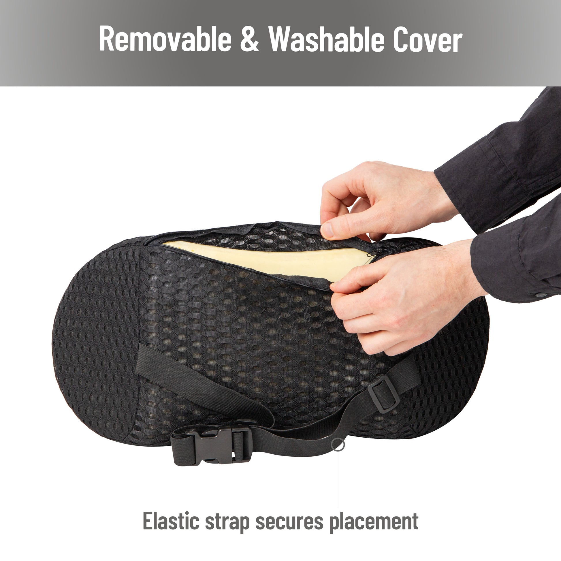 The breathable mesh cover promotes airflow to keep you cool and comfortable during extended use, while the hidden zipper allows for easy removal and machine washing. Whether you're at your desk, in your car, or resting in bed, this compact, lightweight cushion provides portable, lasting support wherever you go.