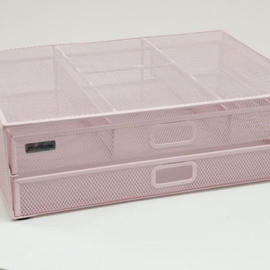 Mind Reader Mesh Monitor Stand with Storage Drawer, Ventilated Laptop Riser and Desktop Organizer, Office, Metal Mesh, Pink