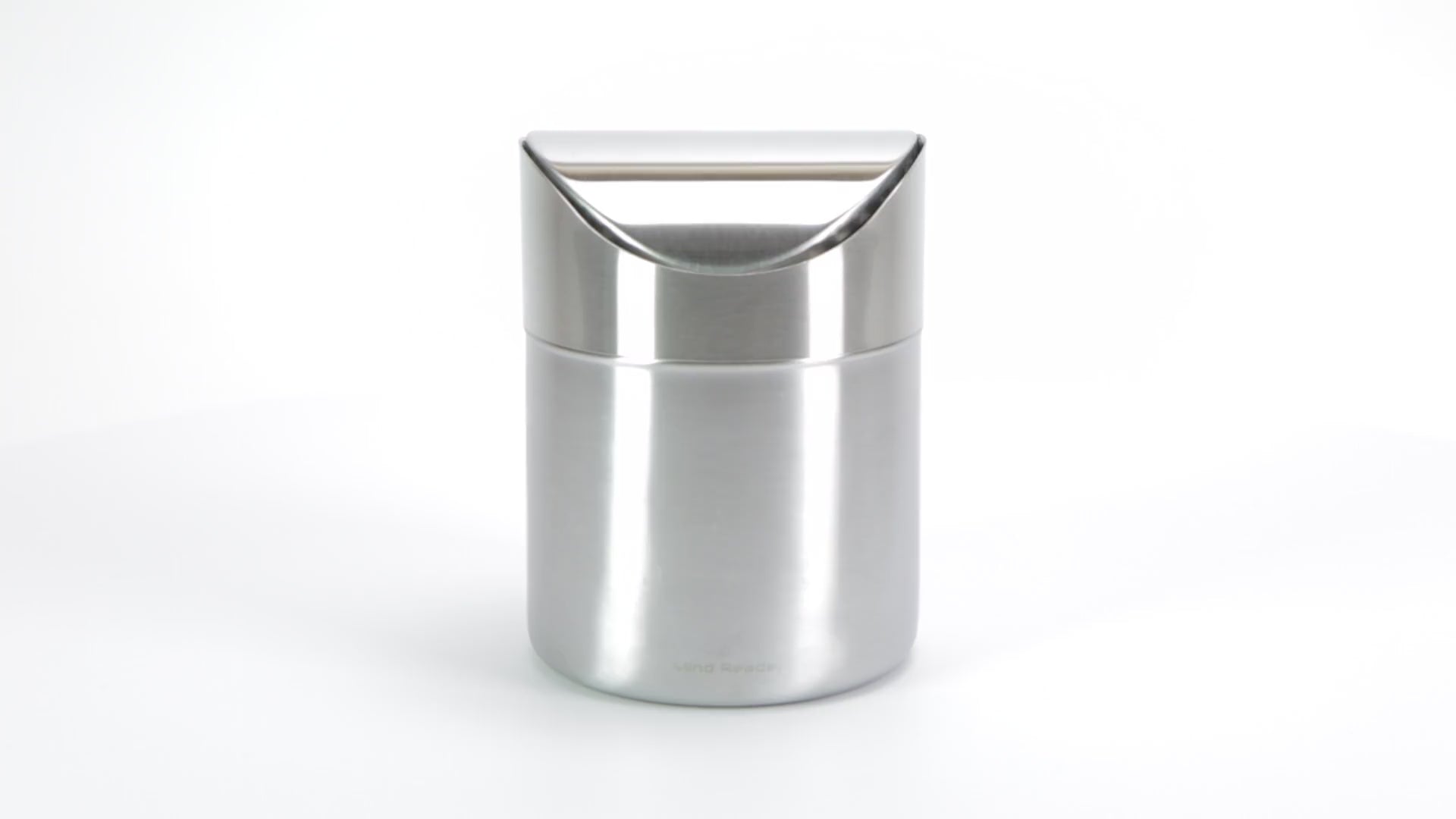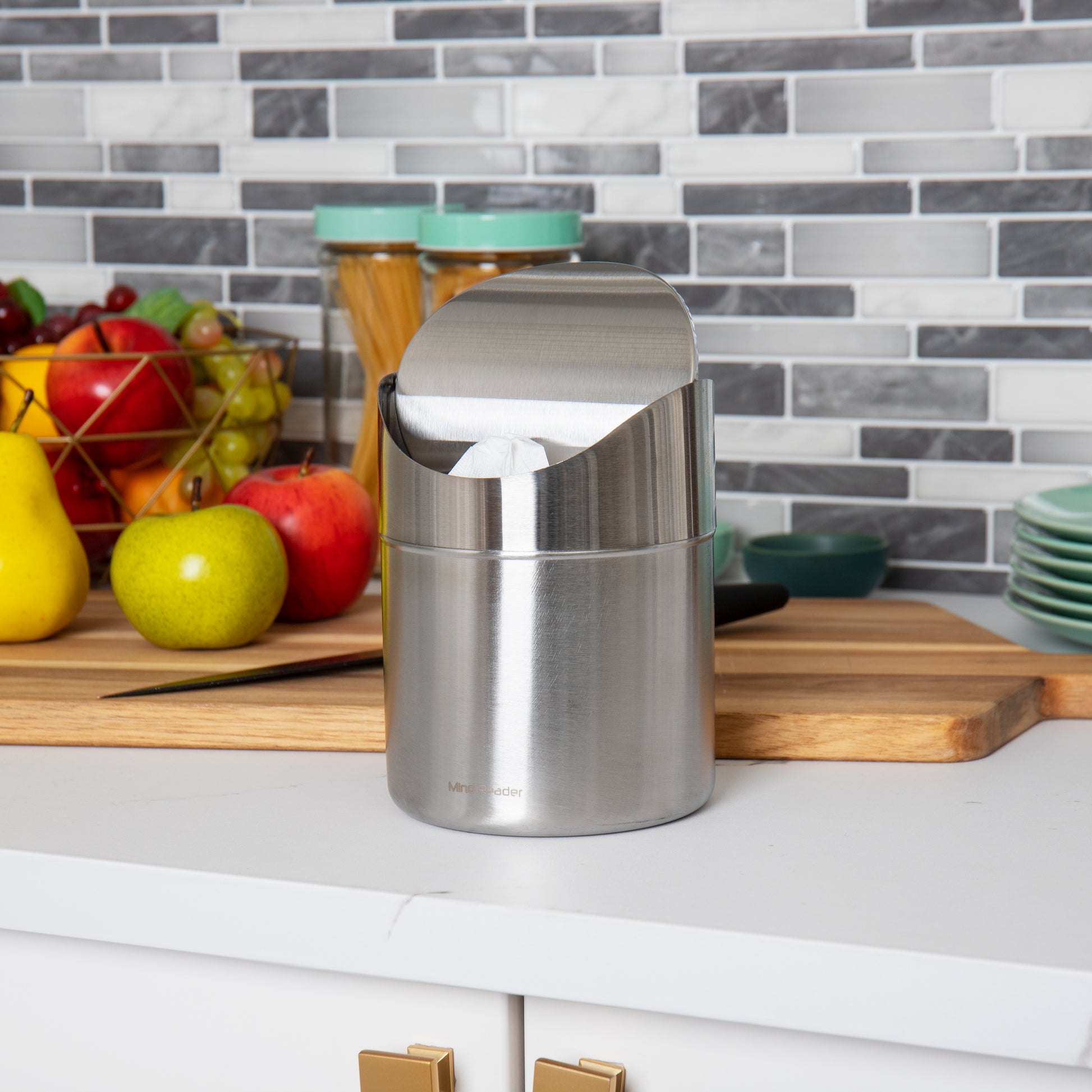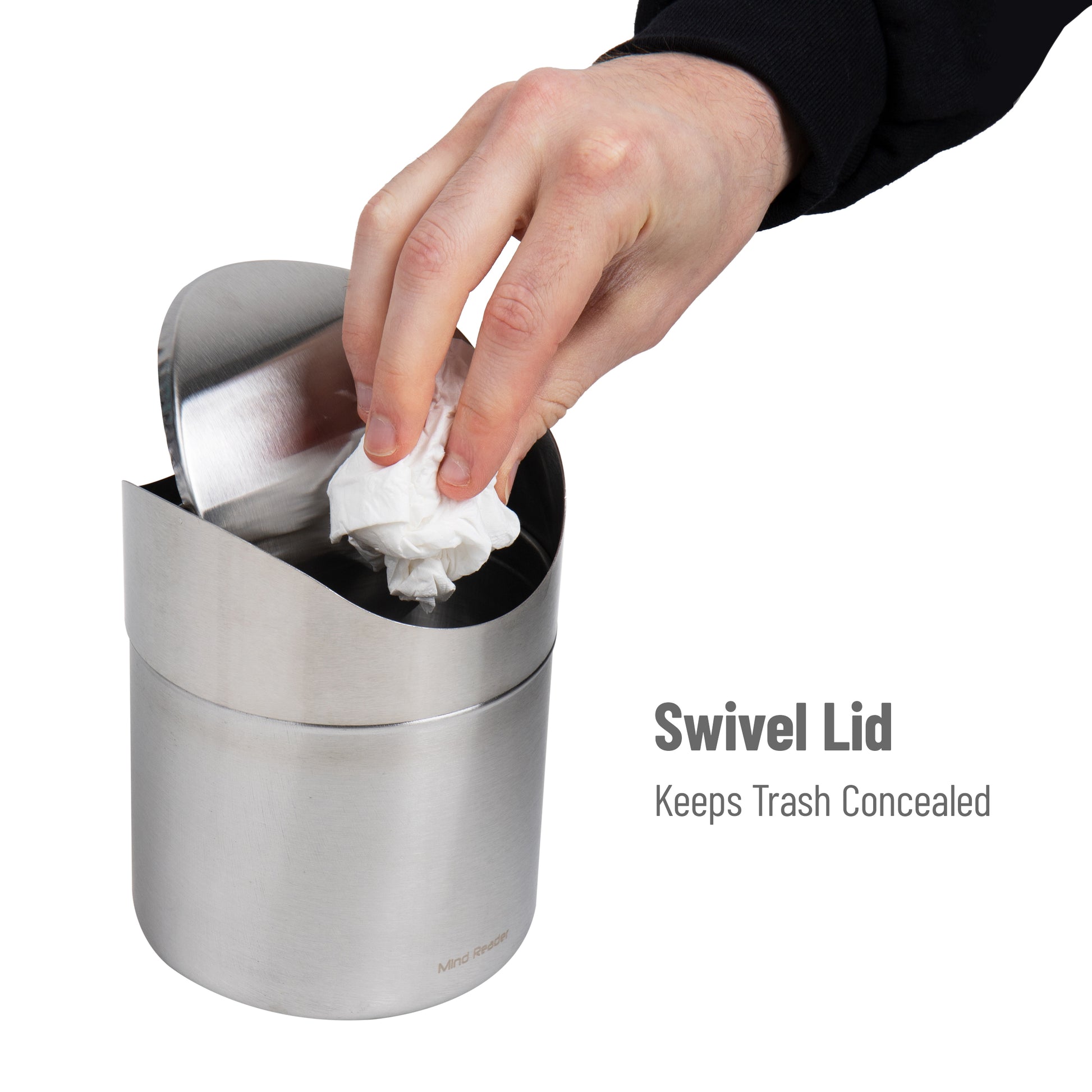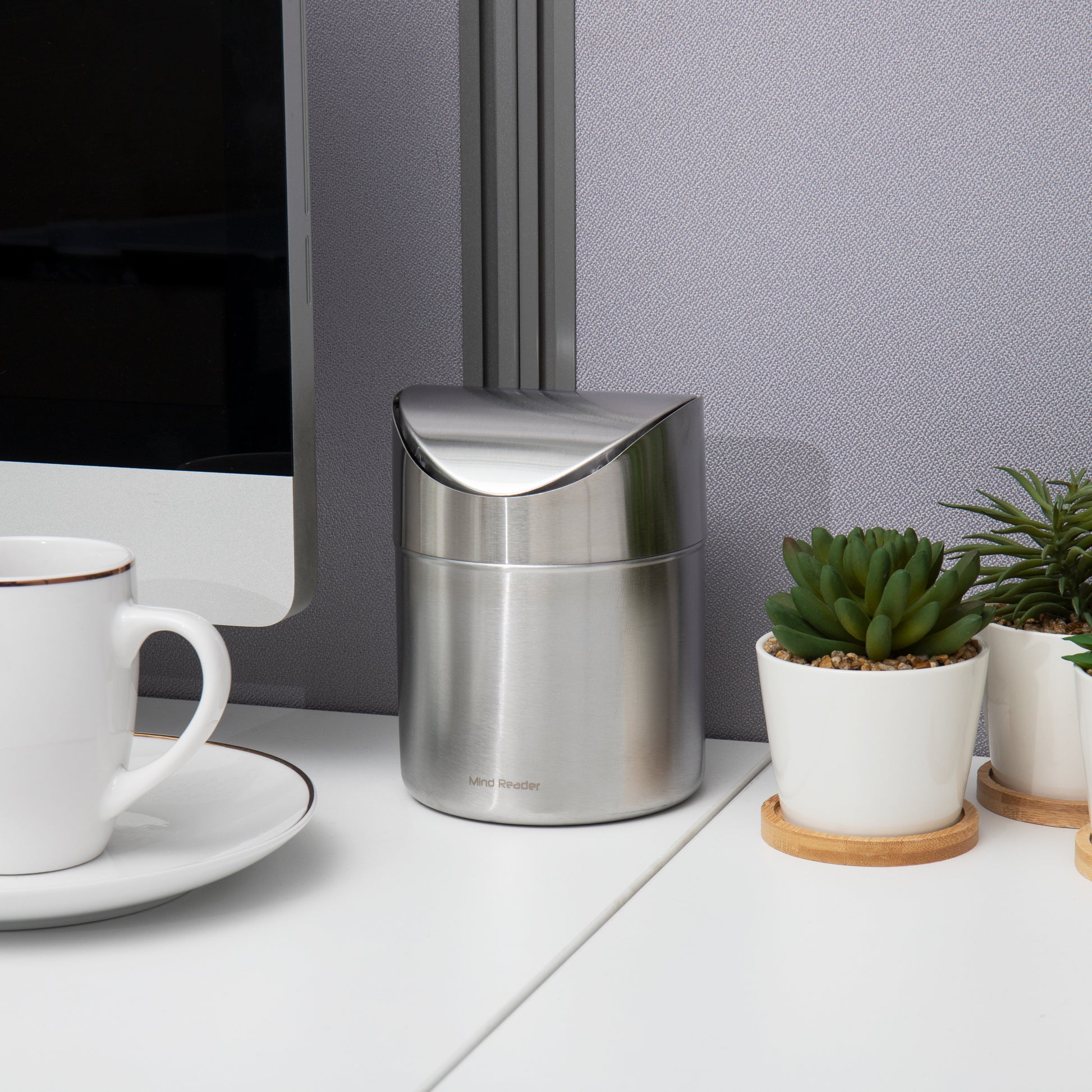 This fingerprint-resistant satin-finish compact countertop trash can is a great addition to any home or office.