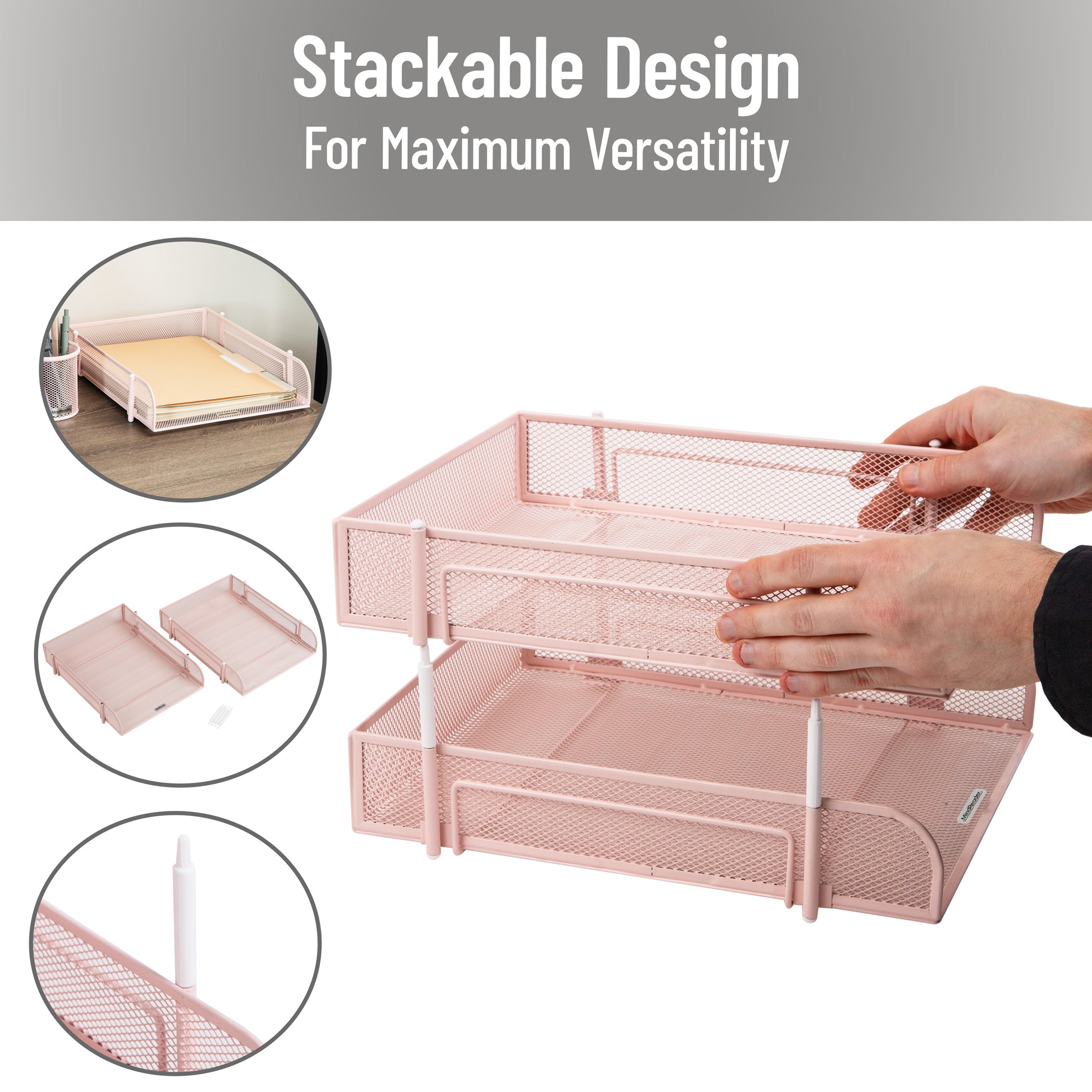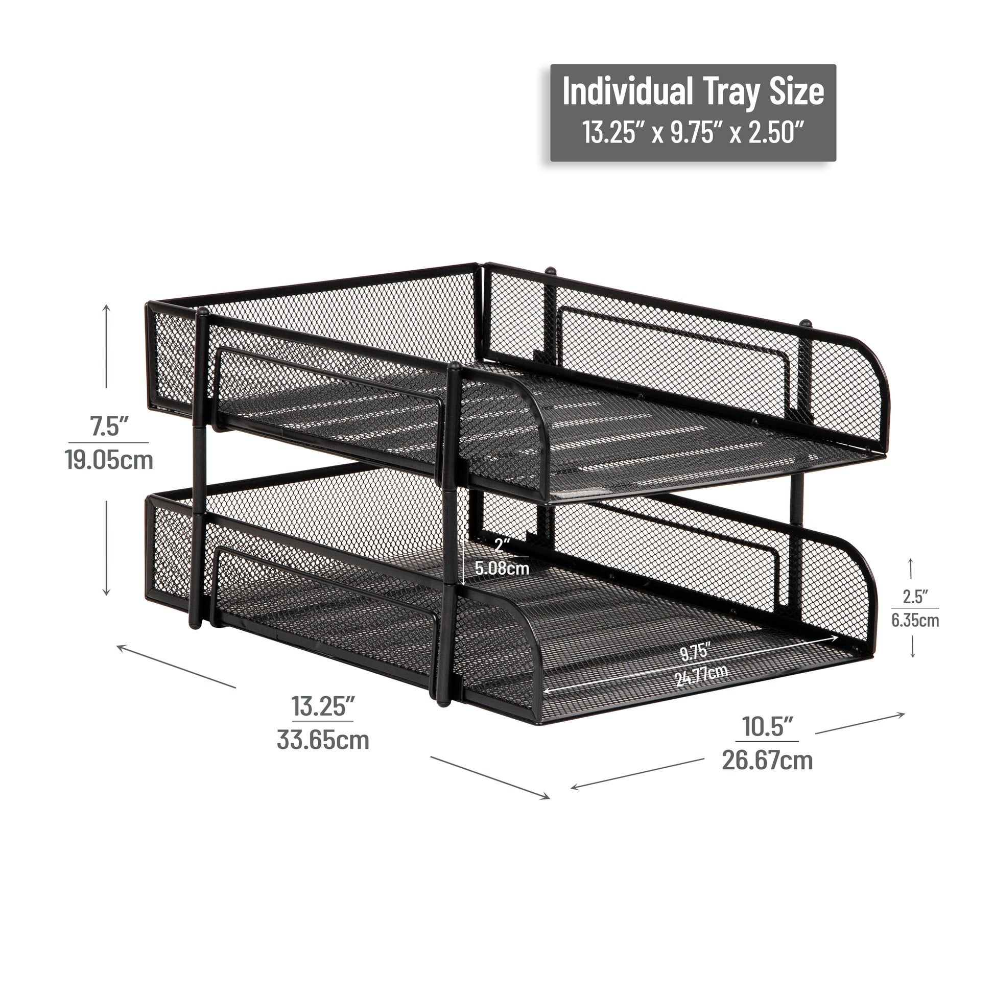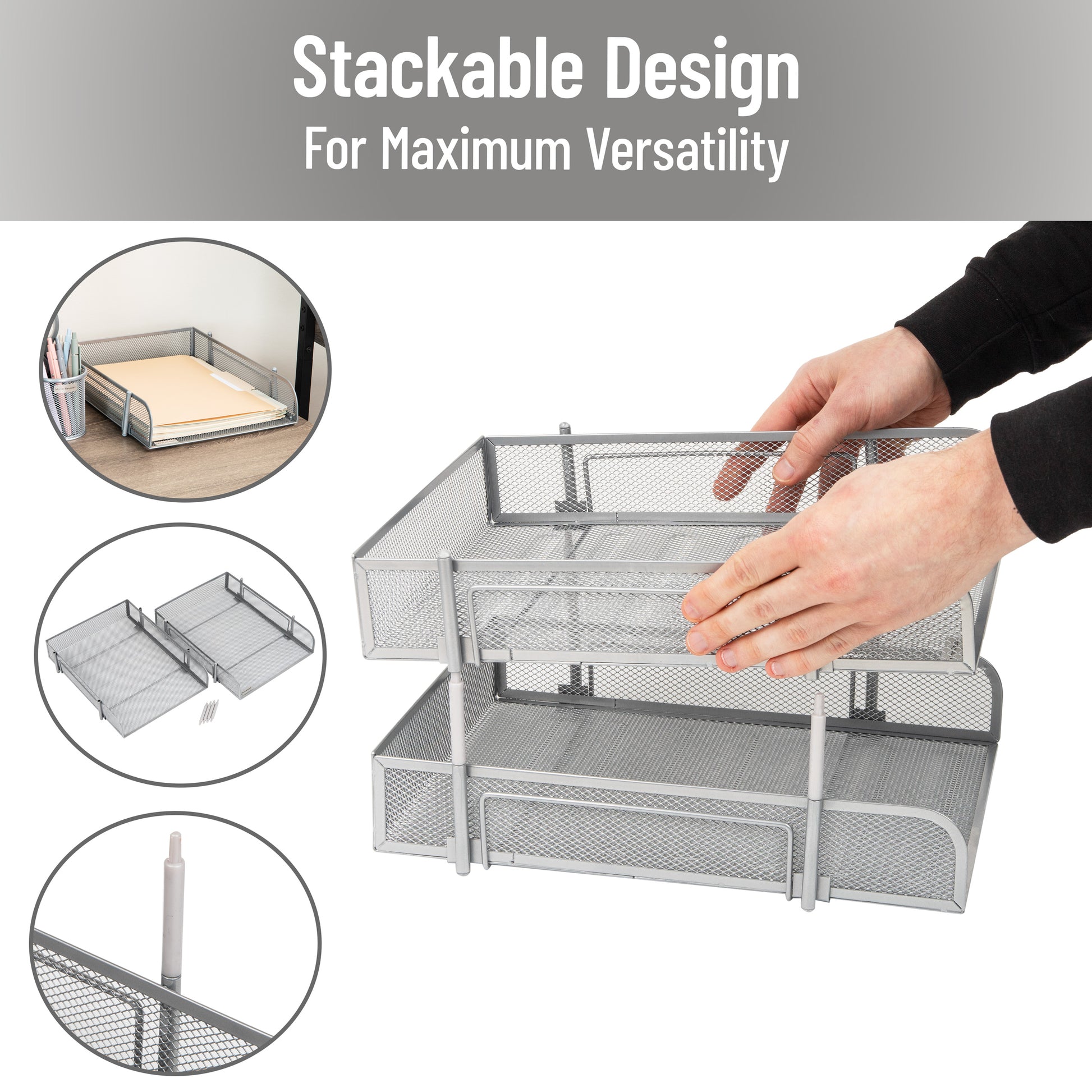 Keep your work-at-home or office space clear of clutter and stacks of papers with this 2-tier stackable metal mesh organizer. Perfect for the desktop, you can store needed items such as files and documents, retrieving important things immediately. Its sleek design and black color compliments any existing office and desk decor. The 2-tier design allows you to separate and organize documents, so they're not just in one pile on your desk.